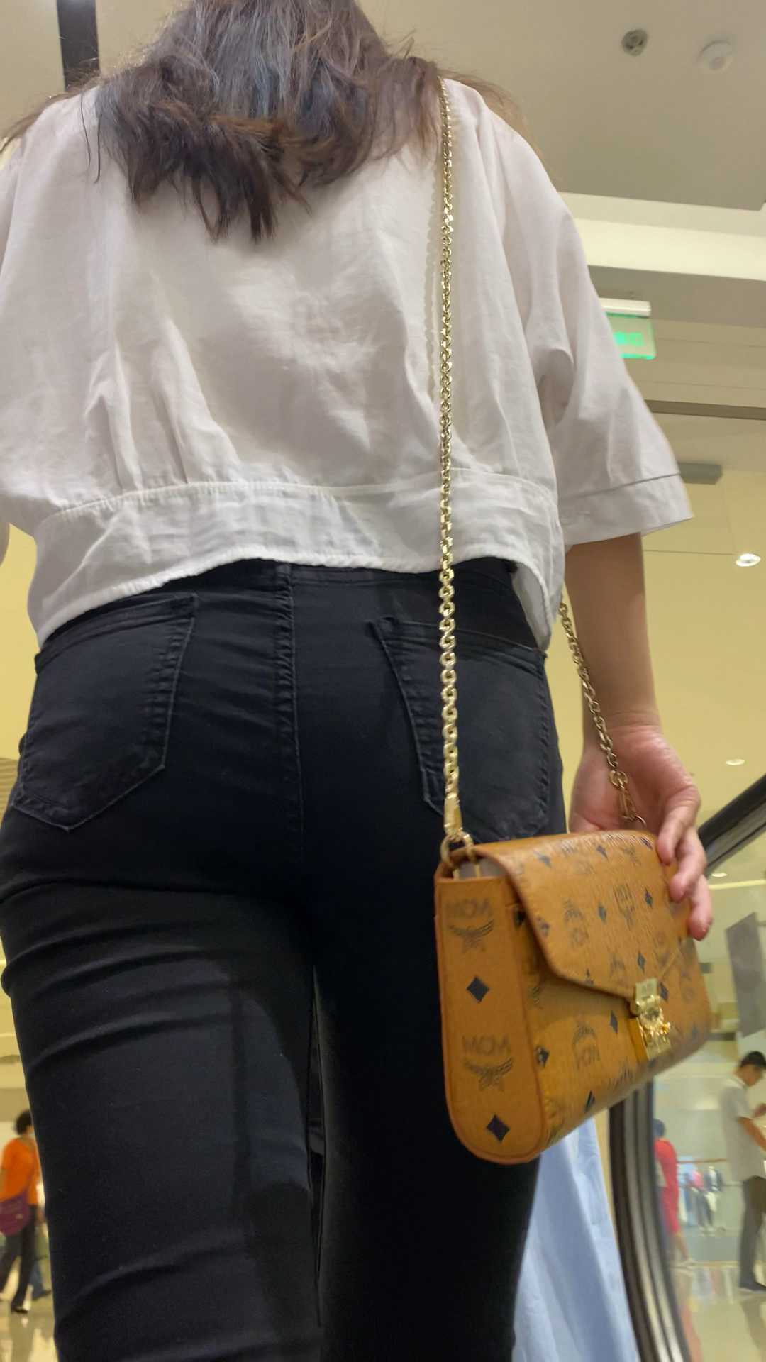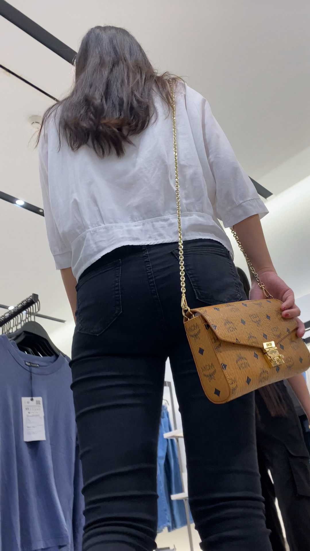 B1320紧身黑裤紧臀长发小姐姐
