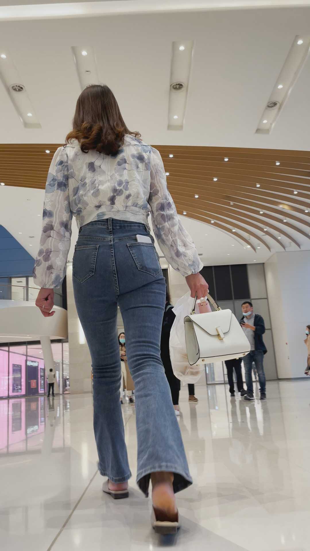 B1355超紧身牛仔紧臀长发小妹