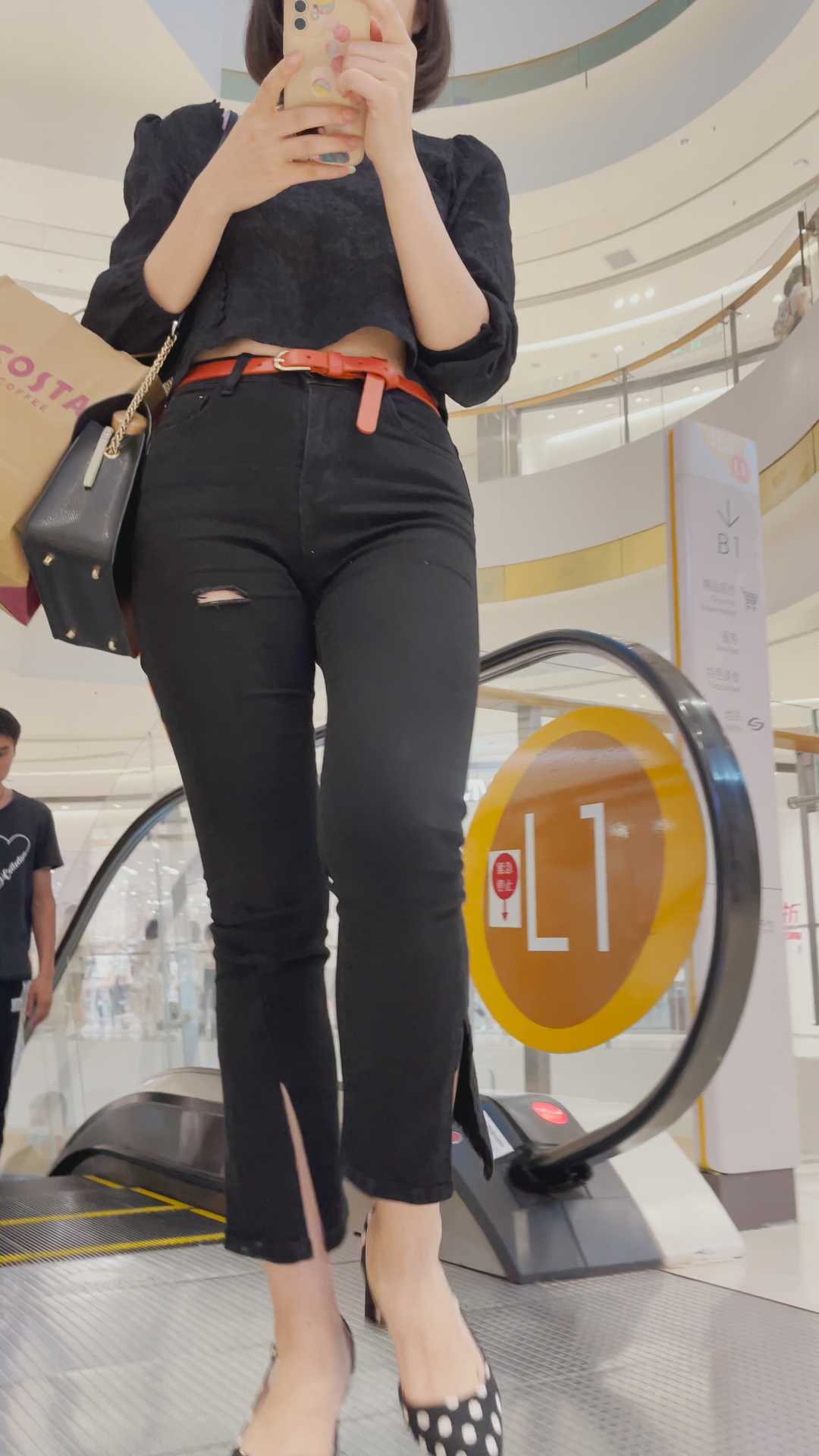 B1362超紧黑裤熟女金三角诱惑