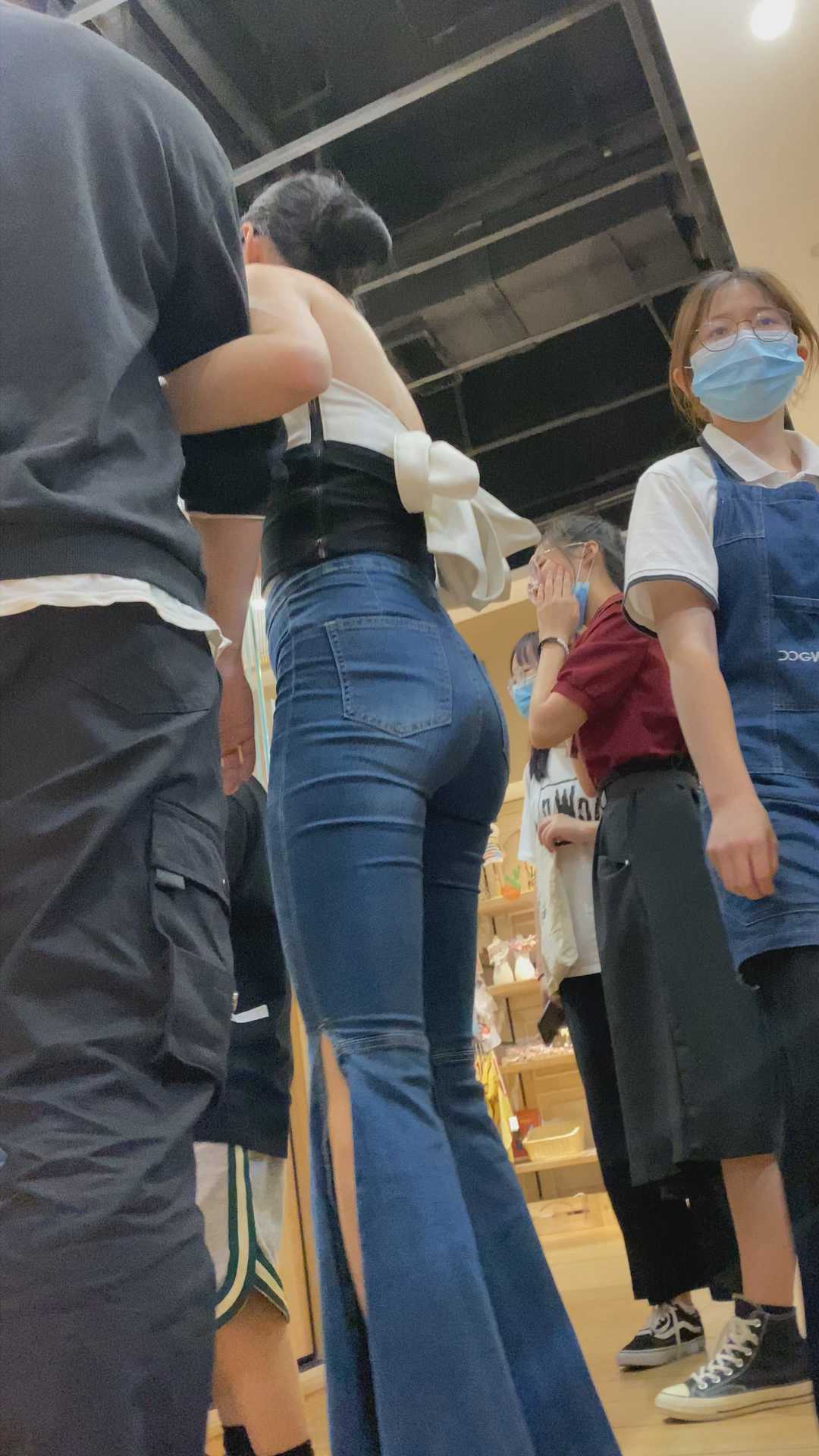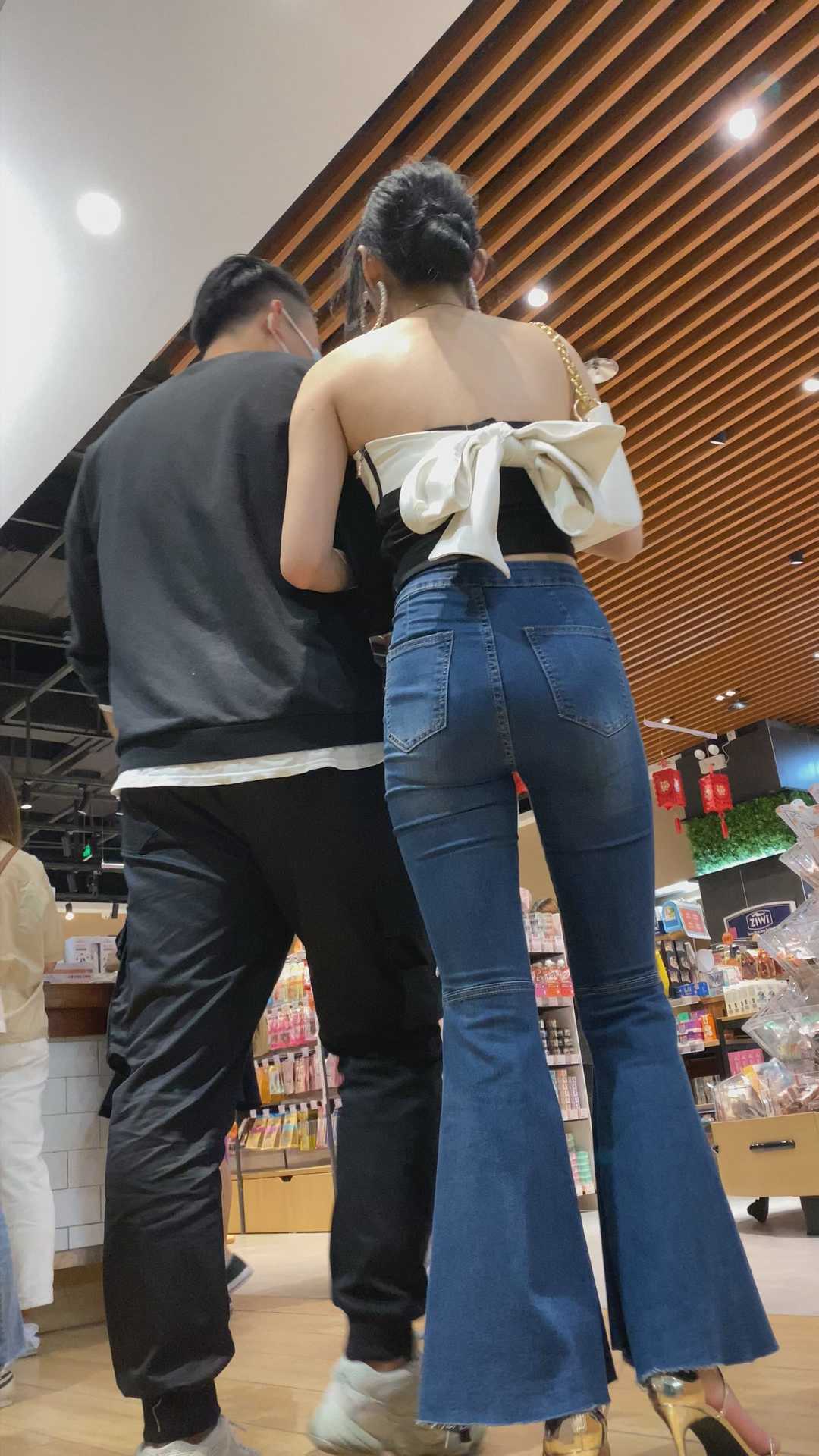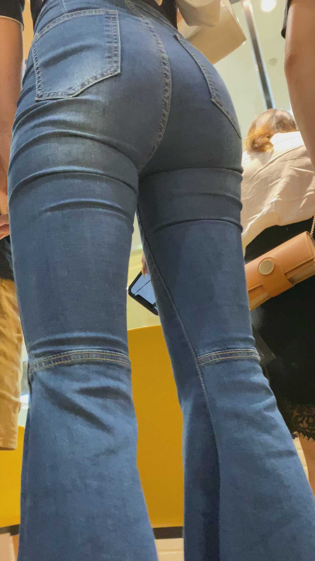 B1430高挑牛仔喇叭裤OL美女