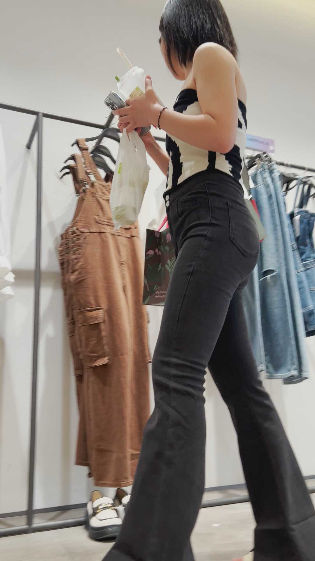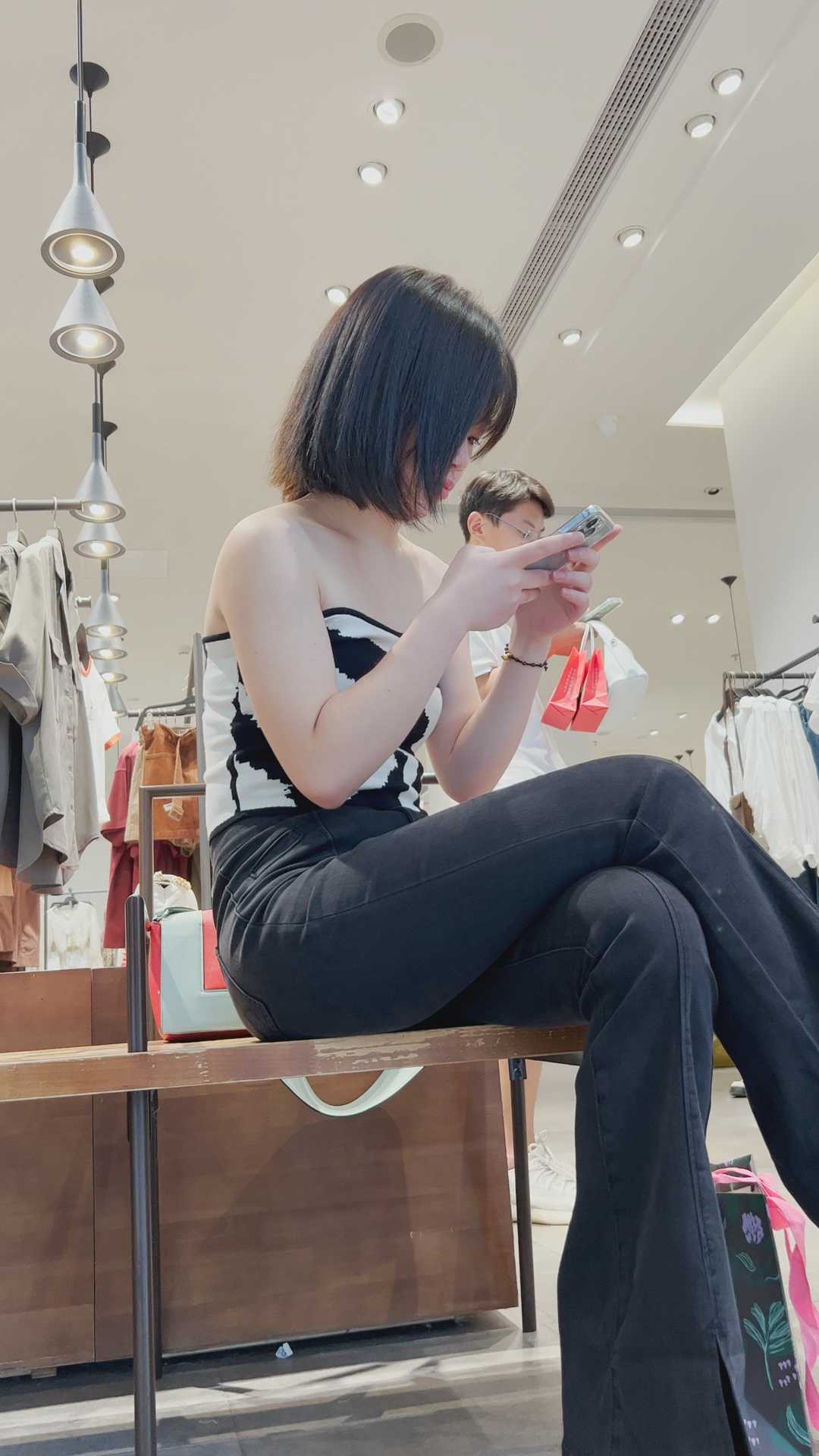 B1494黑裤美背长发小妹