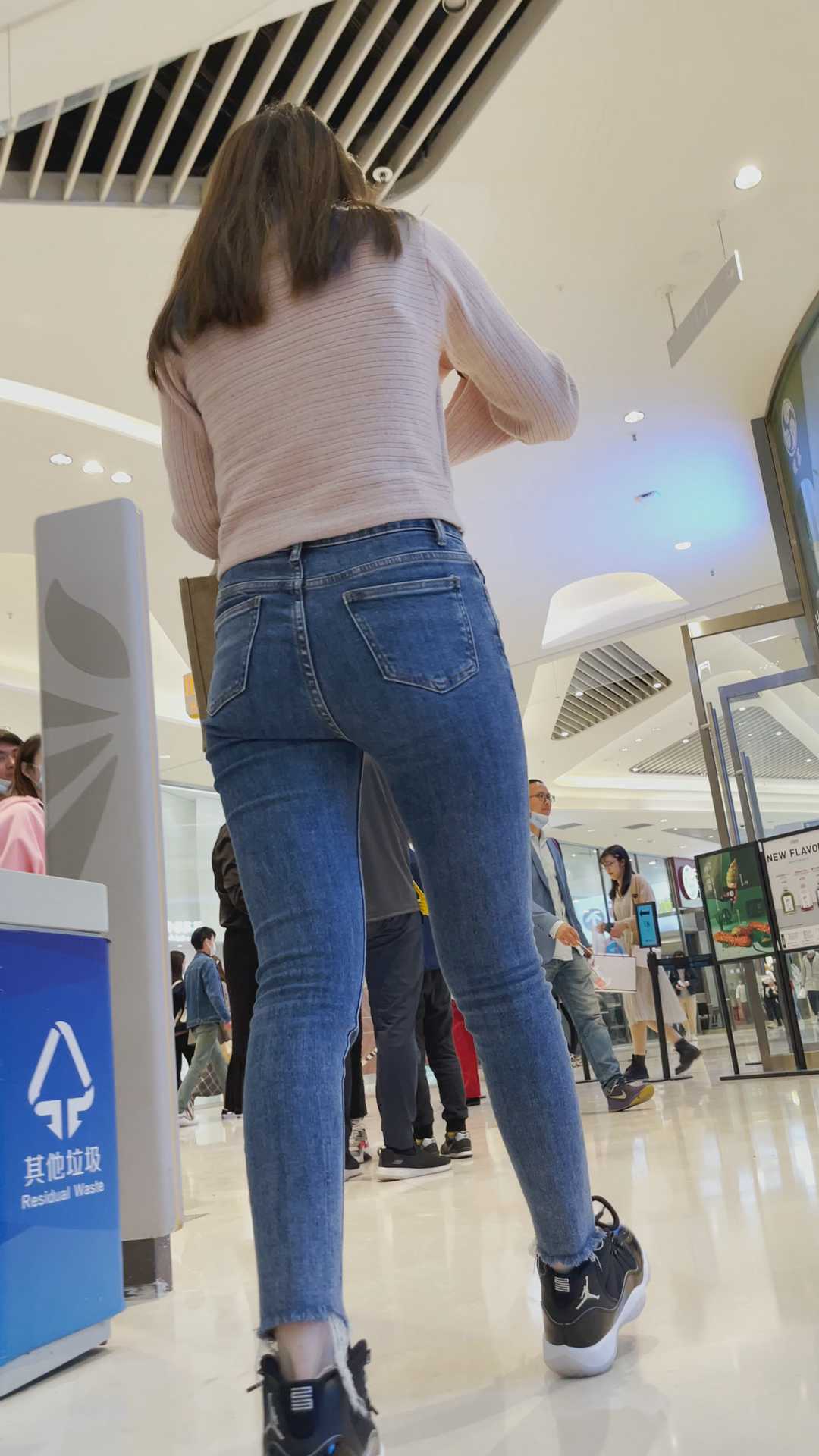 B2牛仔裤女和男友分开逛商场,要的就是这样的效果
