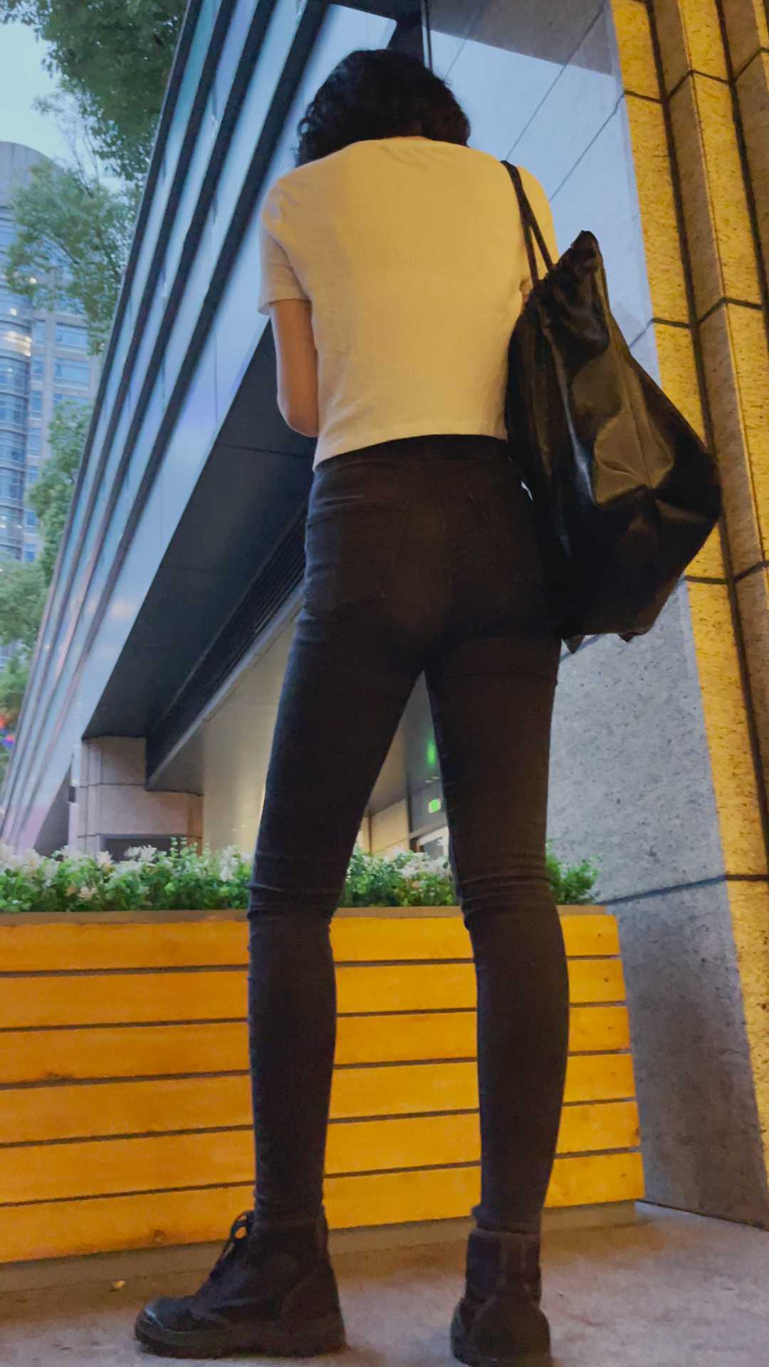 B29饱满紧身黑裤翘臀美女