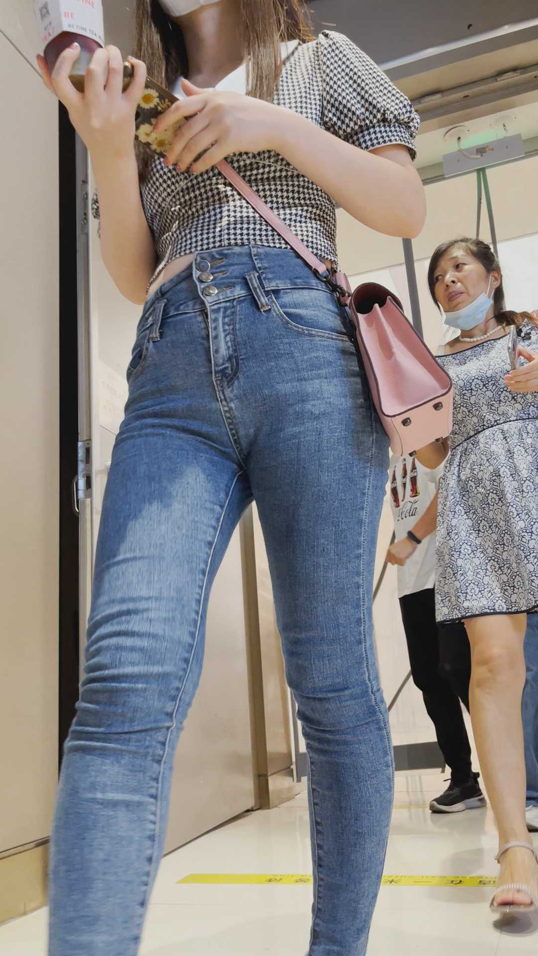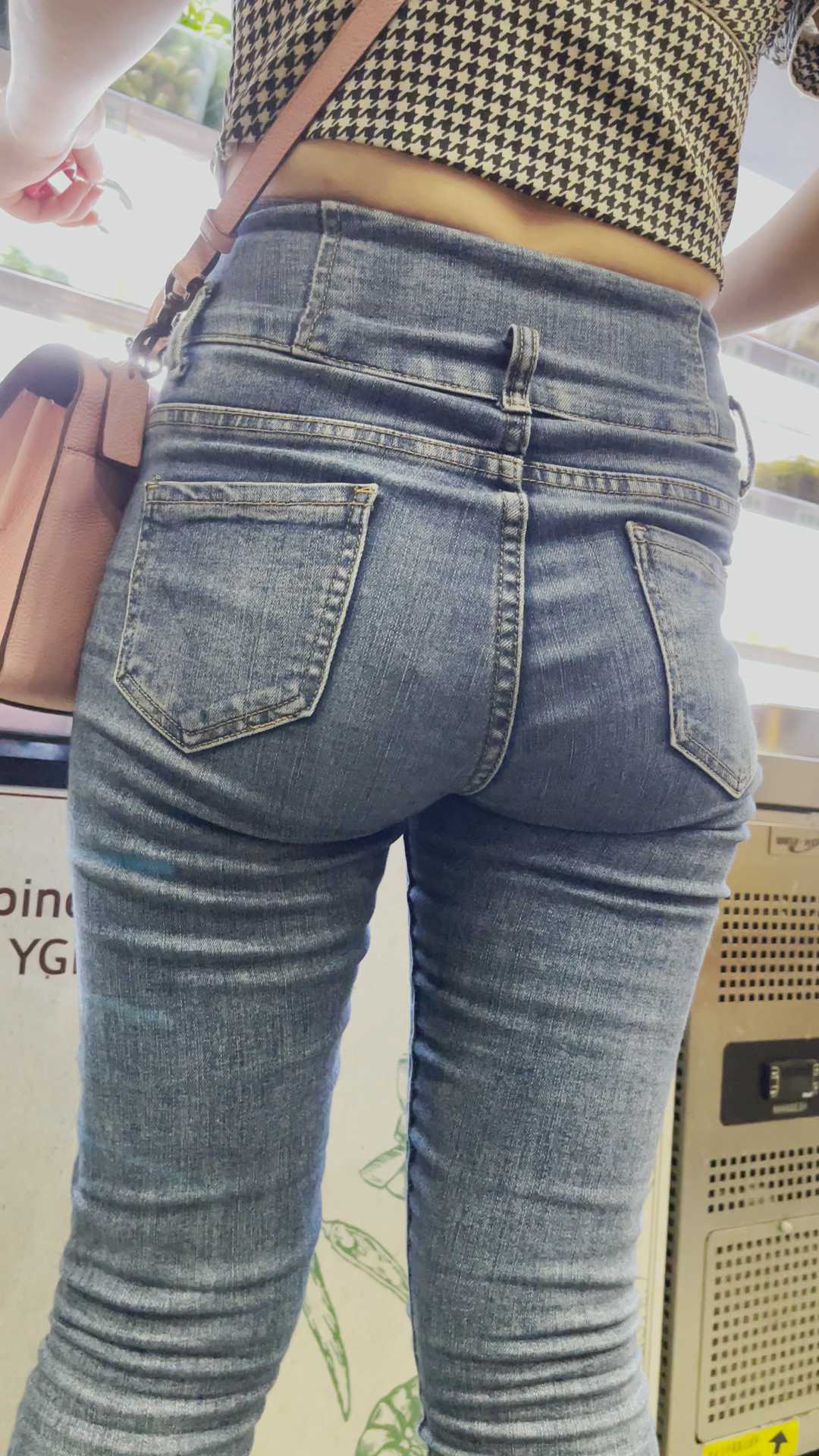 B96包臀紧身牛仔长发小姐姐