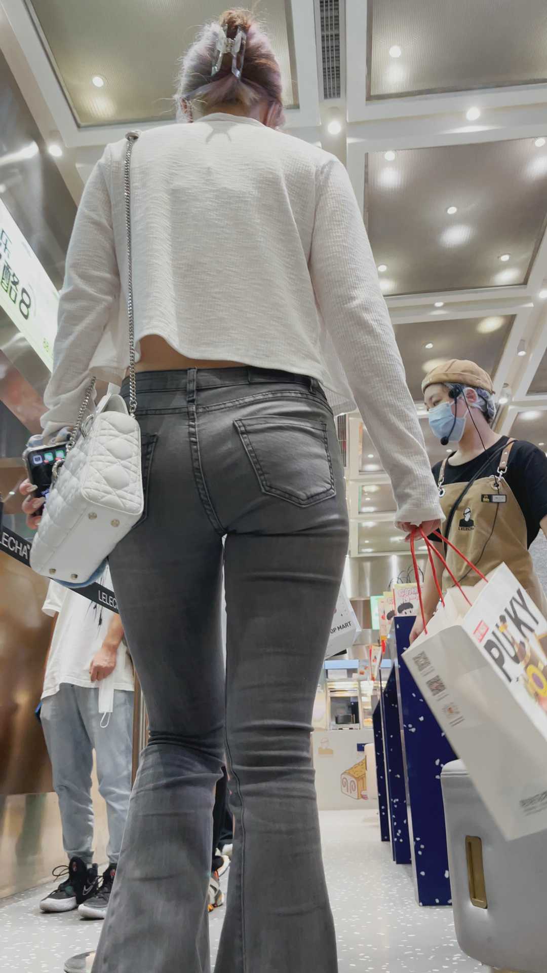 B118商场包臀灰牛仔妹子1
