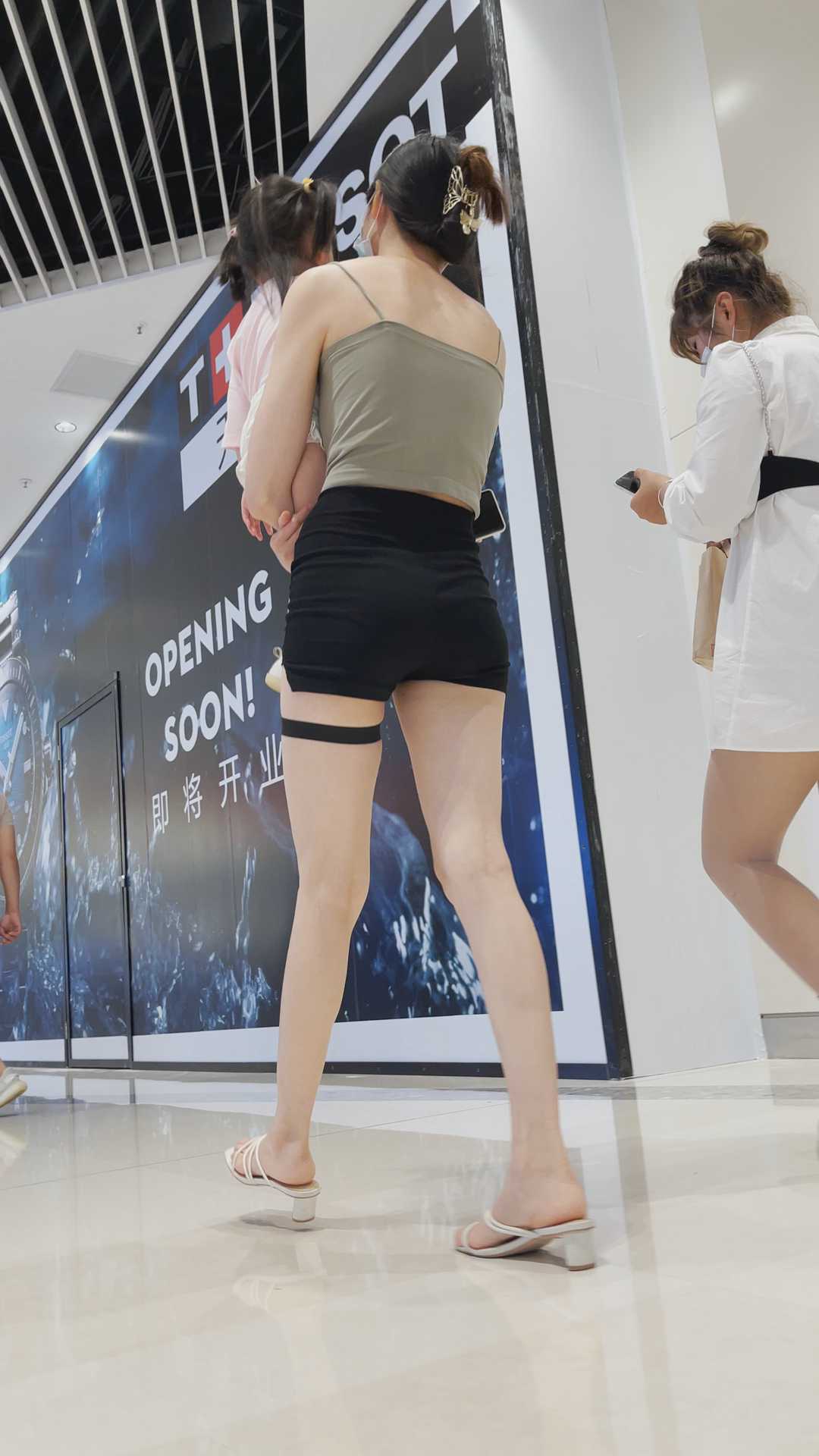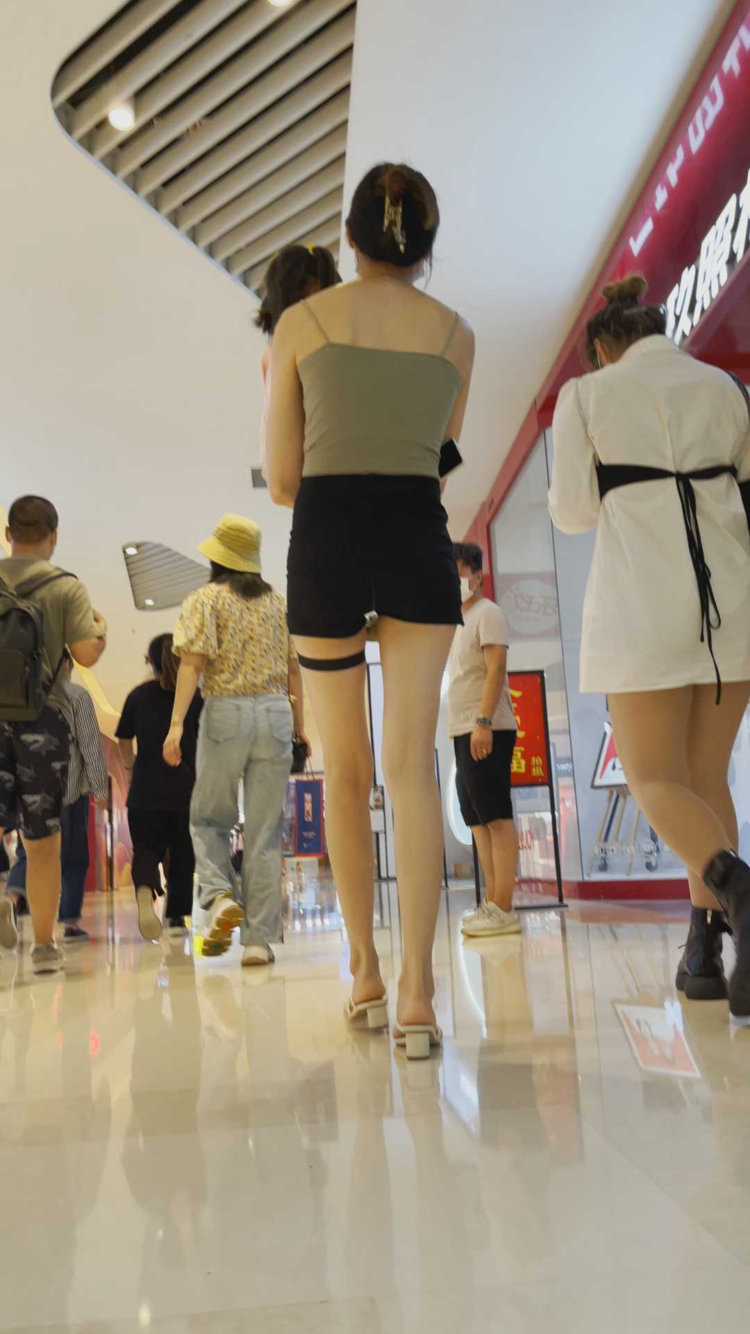 B209商场长腿黑短裤少妇