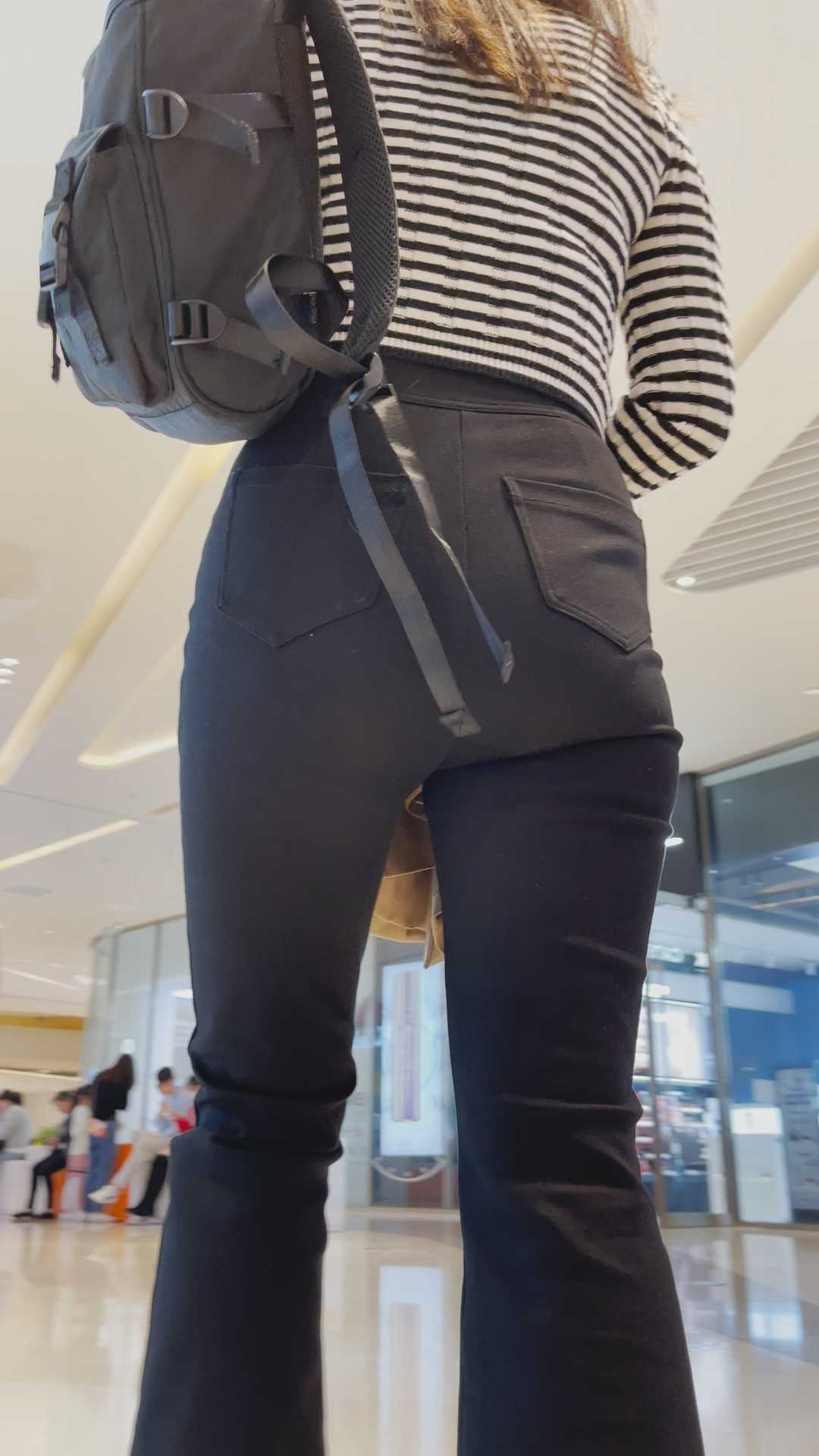 B225商场黑裤大宽臀少妇