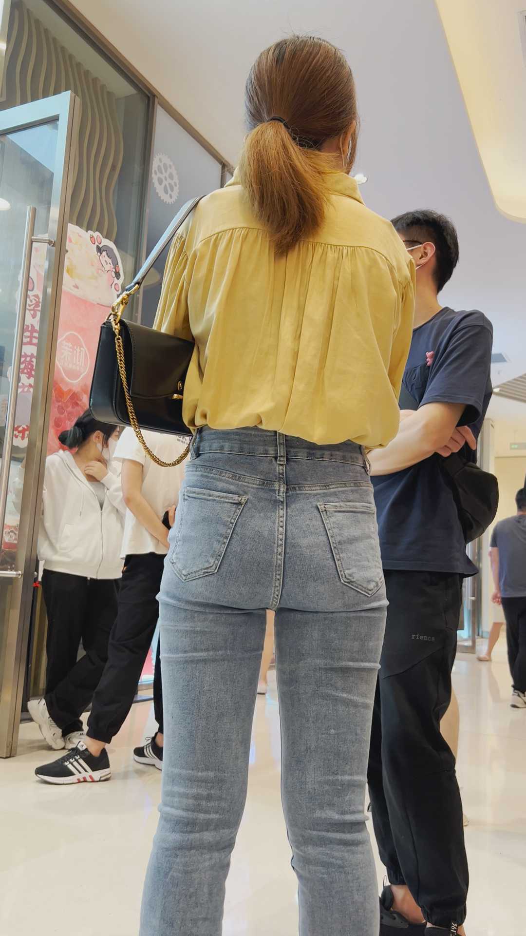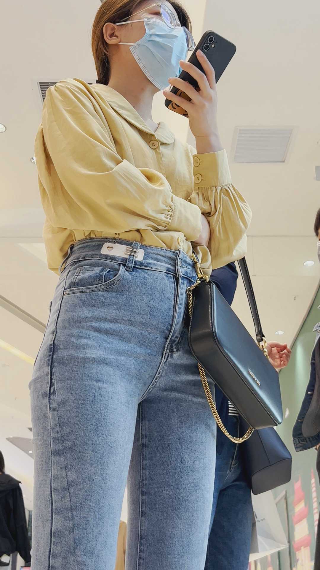 B293性感牛仔紧臀金三角眼镜妹