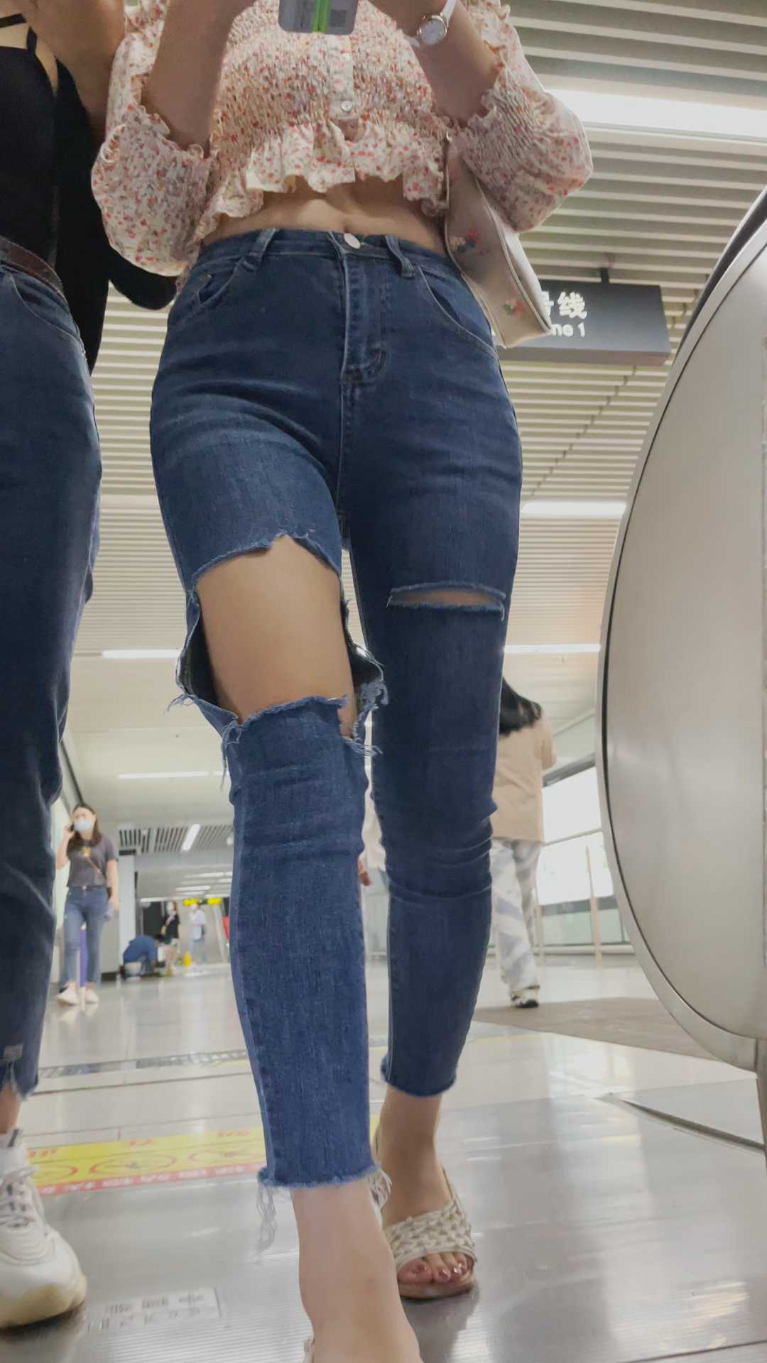 B313性感破洞牛仔裤金三角妹子