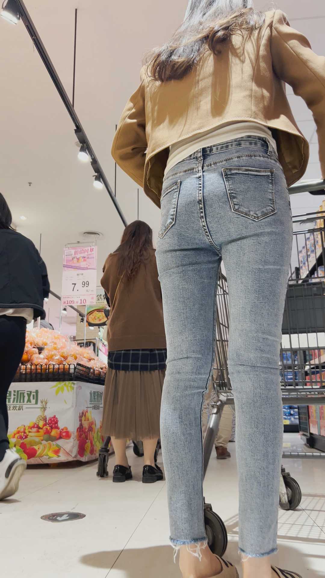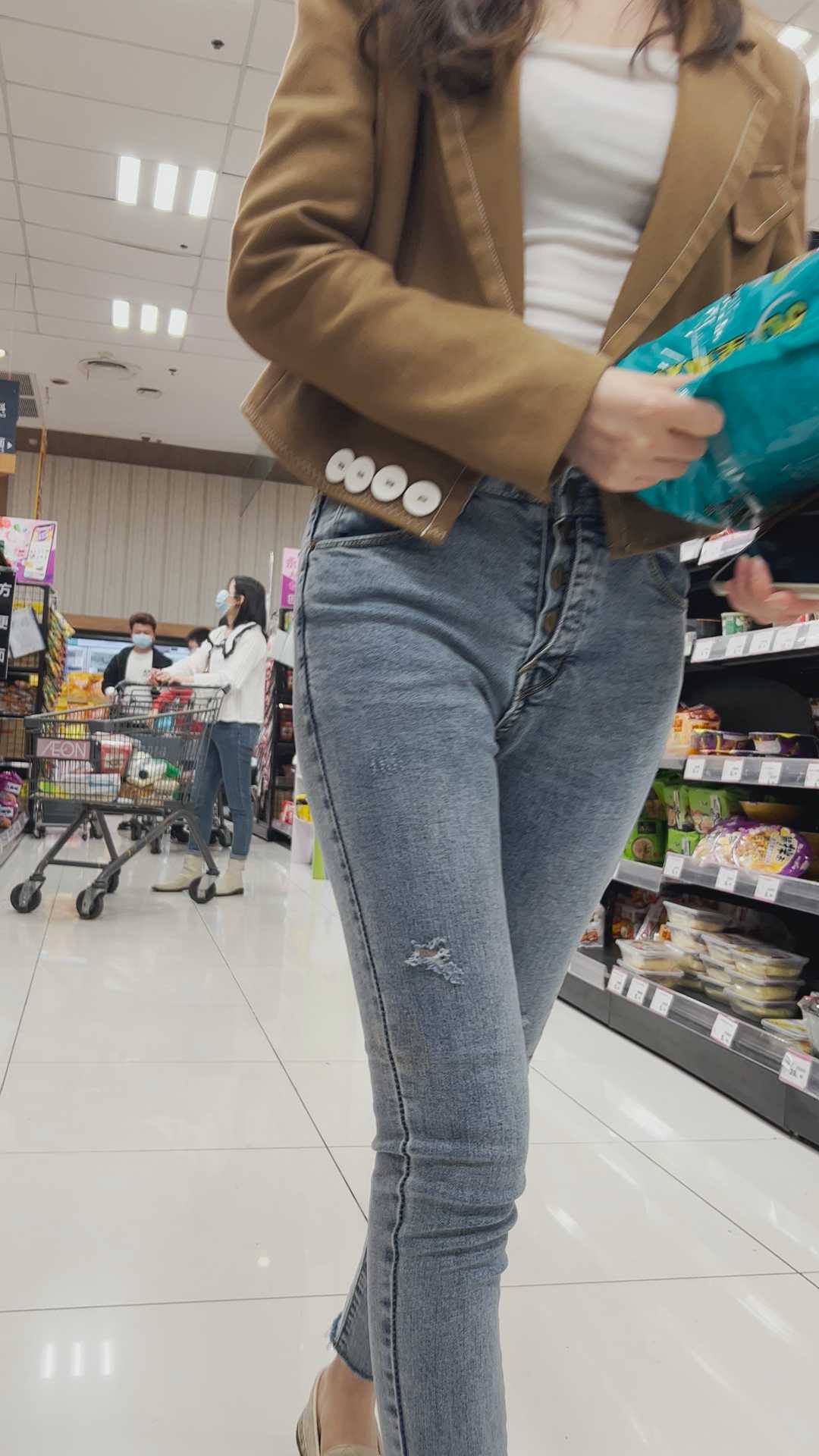 B565紧身灰牛仔小妹子