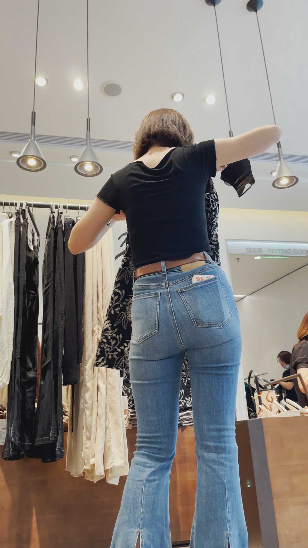 B596紧身牛仔翘臀妹子买衣服