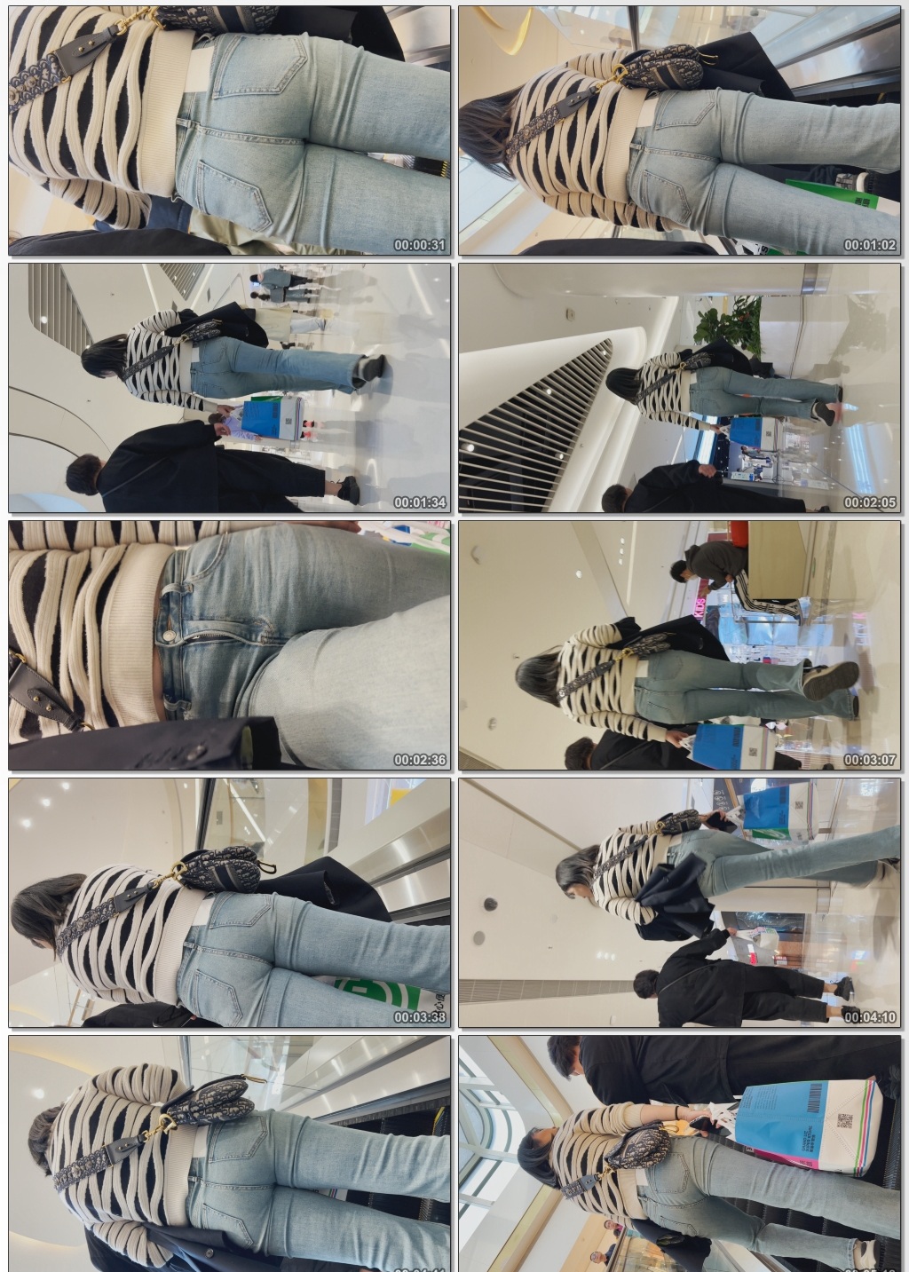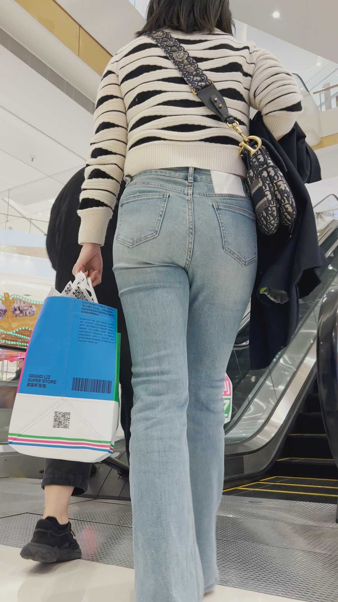 B621紧身牛仔裤露小肚子少妇