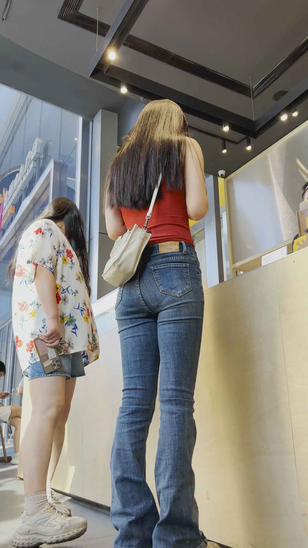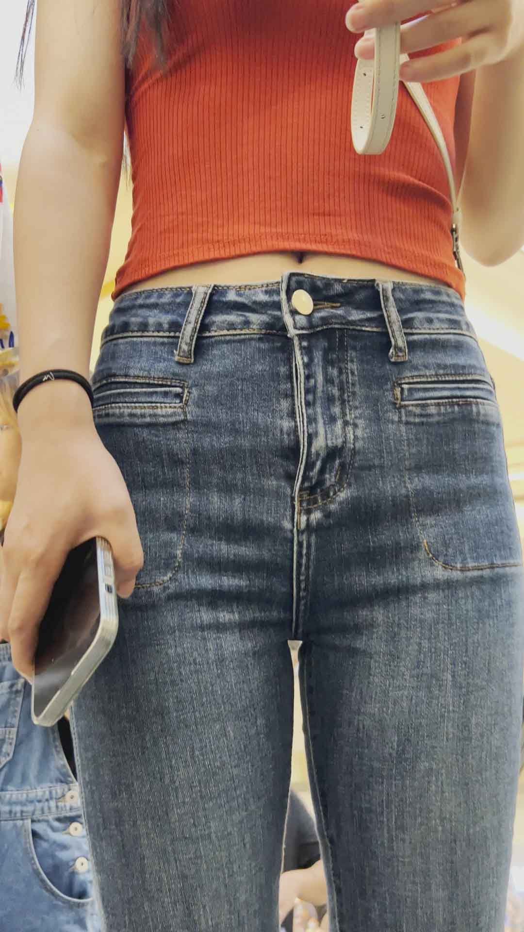 B623紧身牛仔金三角小姐姐