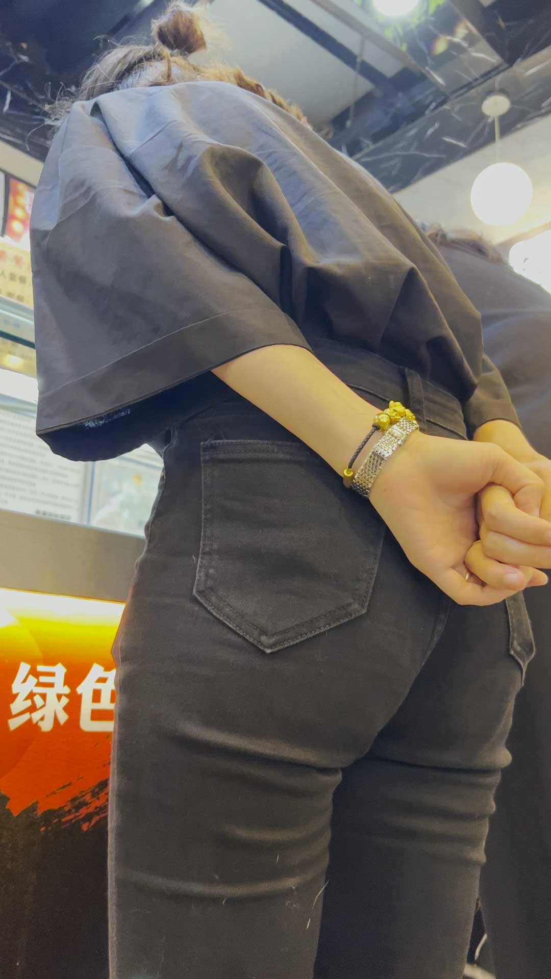 B645紧身黑牛仔小姐姐