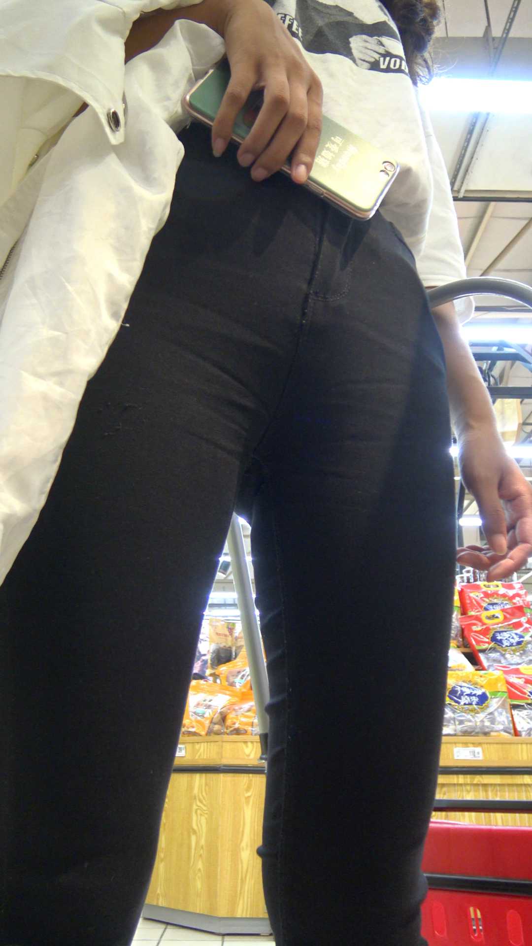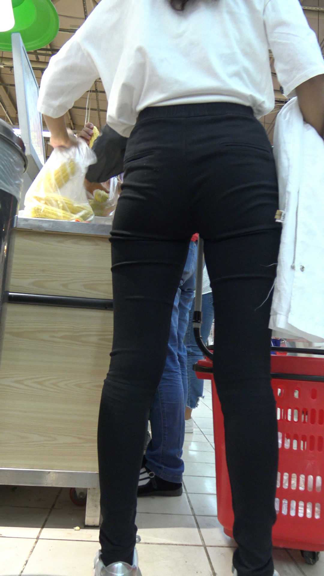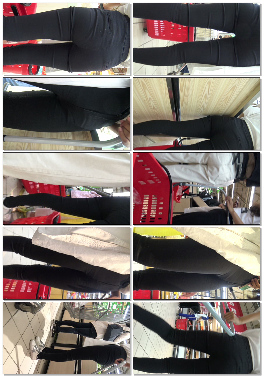 C362一个带着俩闺蜜逛超市的黑色运动紧身裤妹子