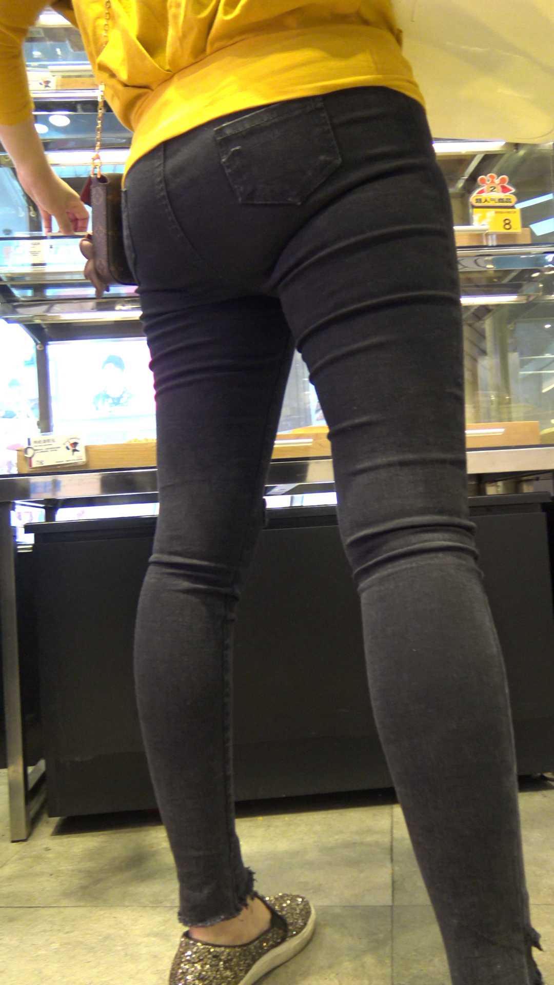 C457商场包臀黑牛仔少女