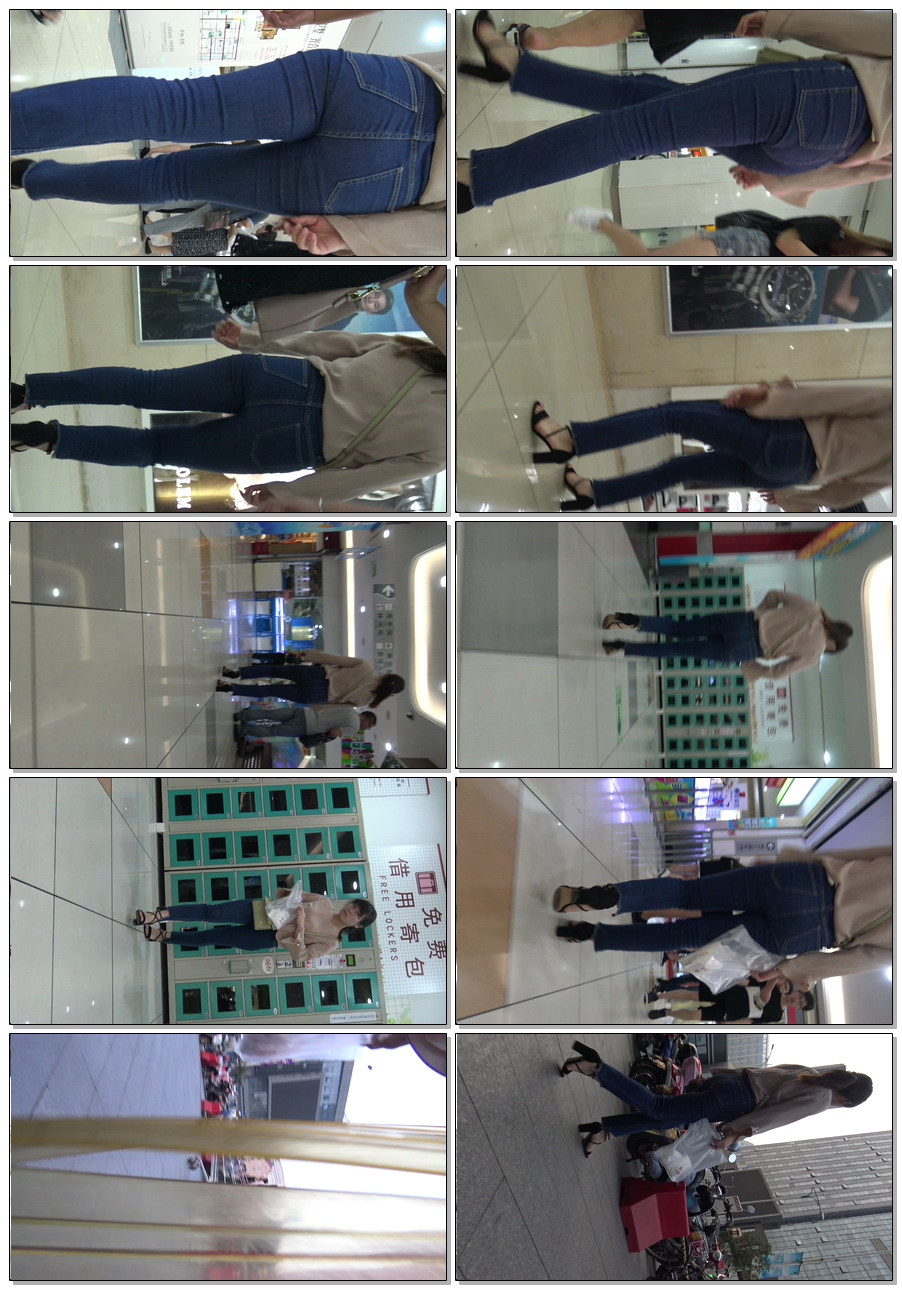 C528商场超紧牛仔宽臀少妇
