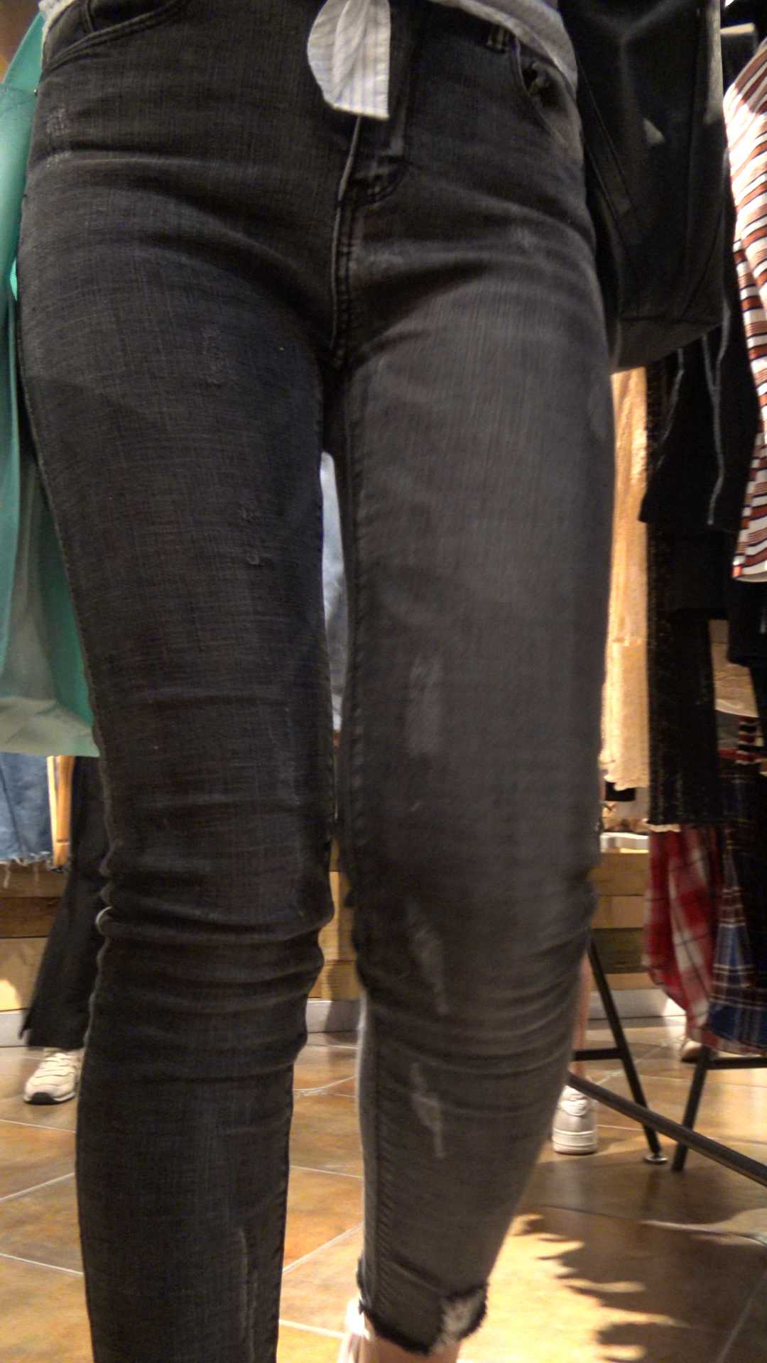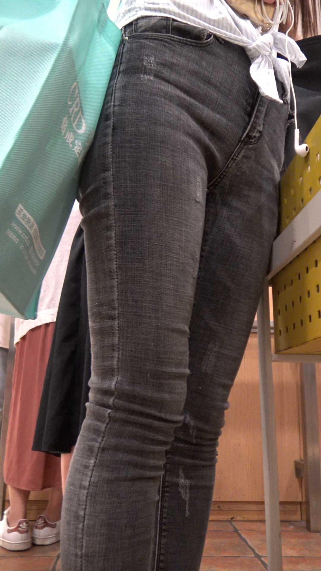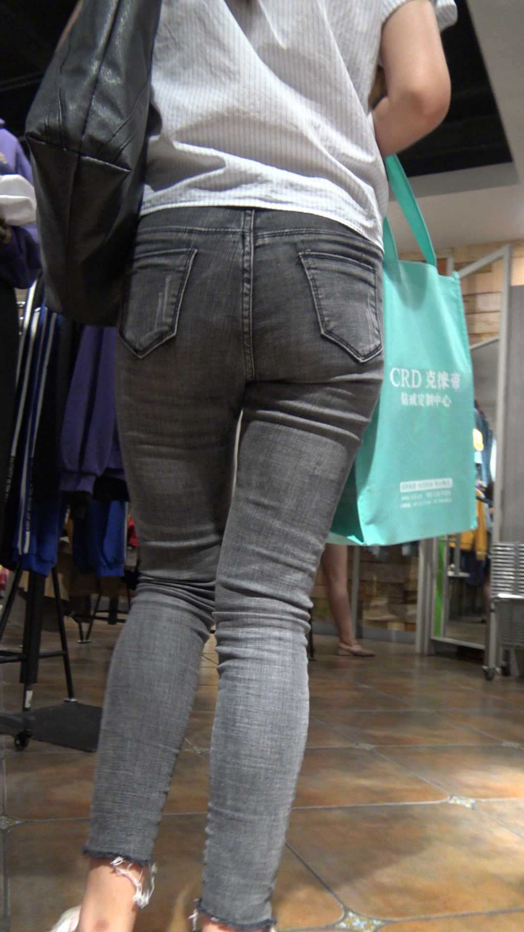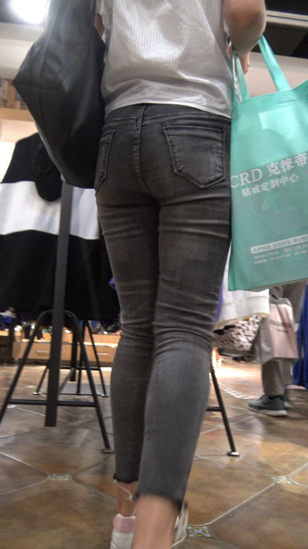 C683服装店高挑灰牛紧臀少妇
