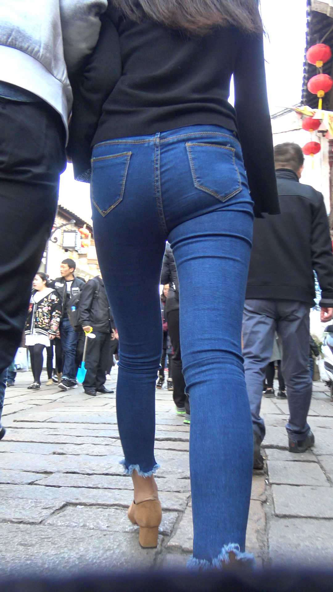 C809牛仔裤小高跟大美女