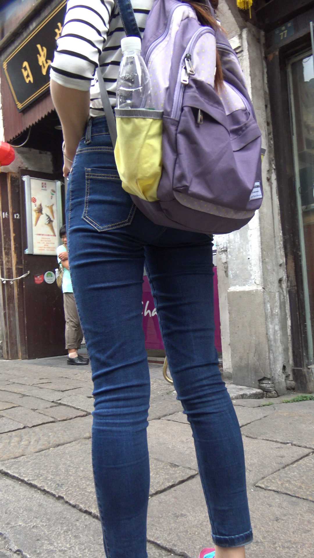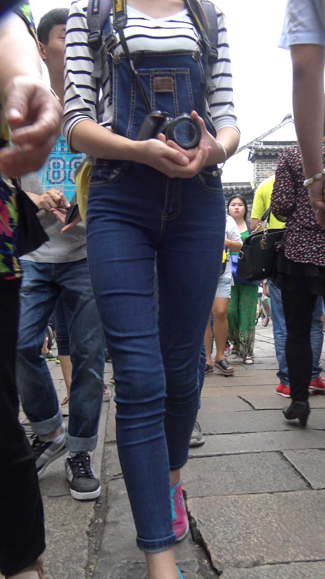 C860紧身带背带牛仔三角特写