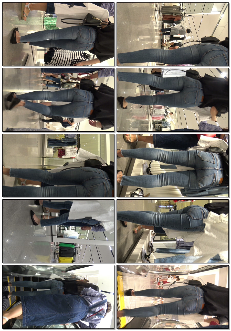 C881紧身牛仔大宽臀紧内痕眼镜少女