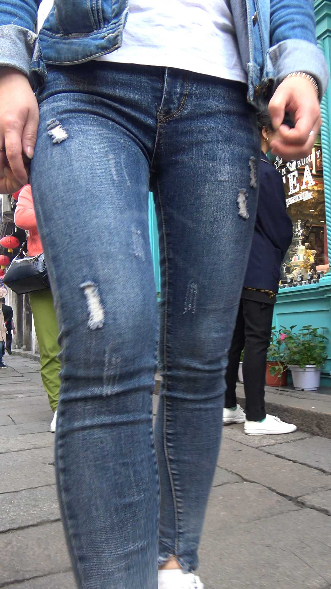 C885紧身牛仔眼镜少妇前后摄