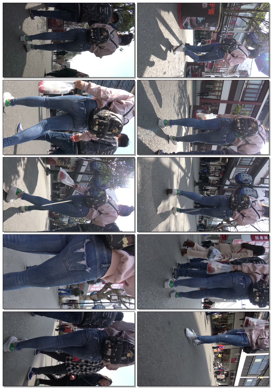 C897紧身牛仔裤背包少妇