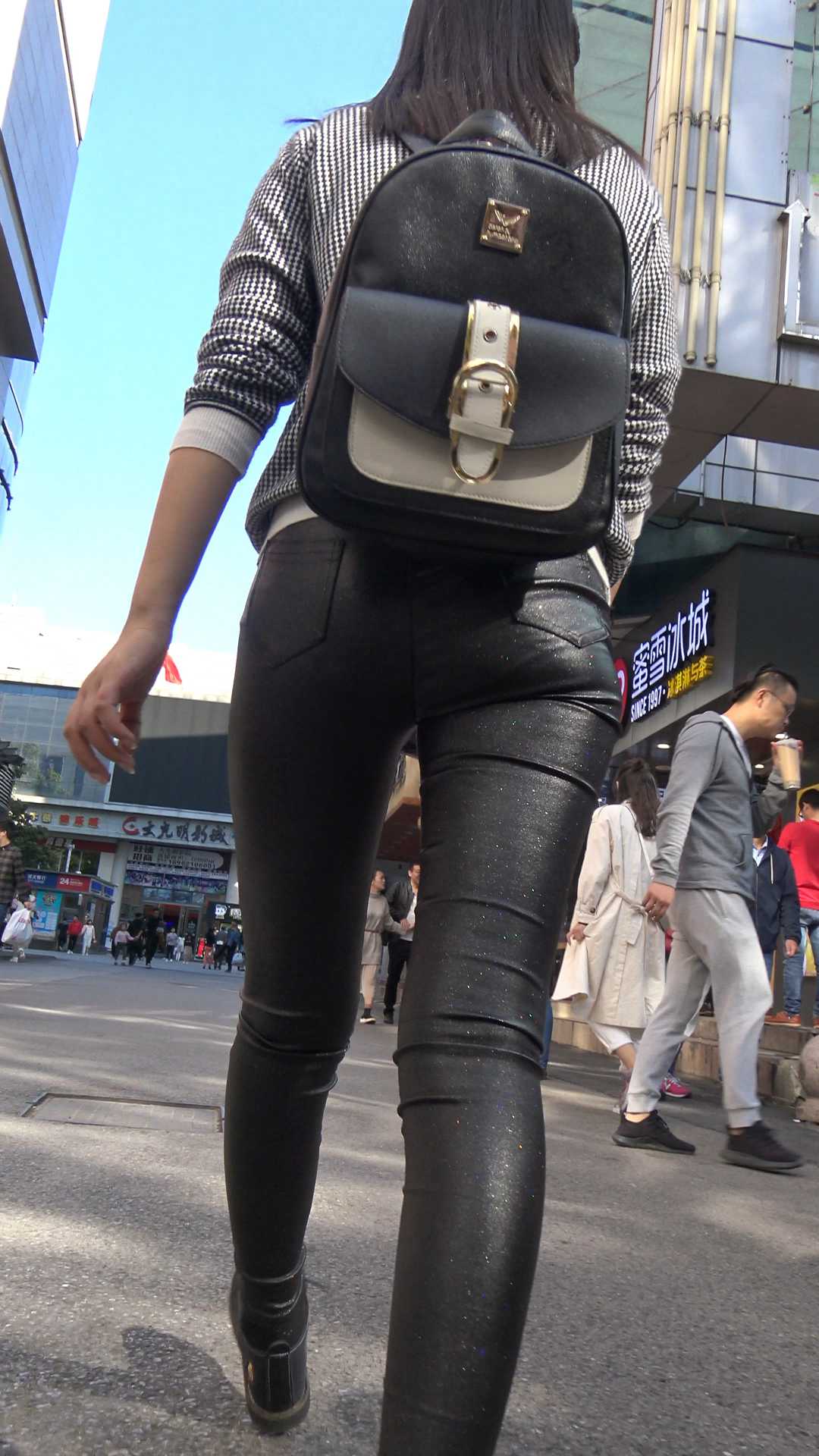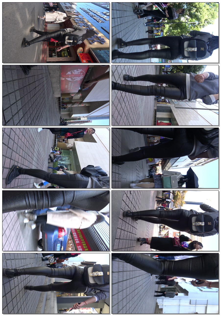 C902紧身皮裤圆臀背包少女