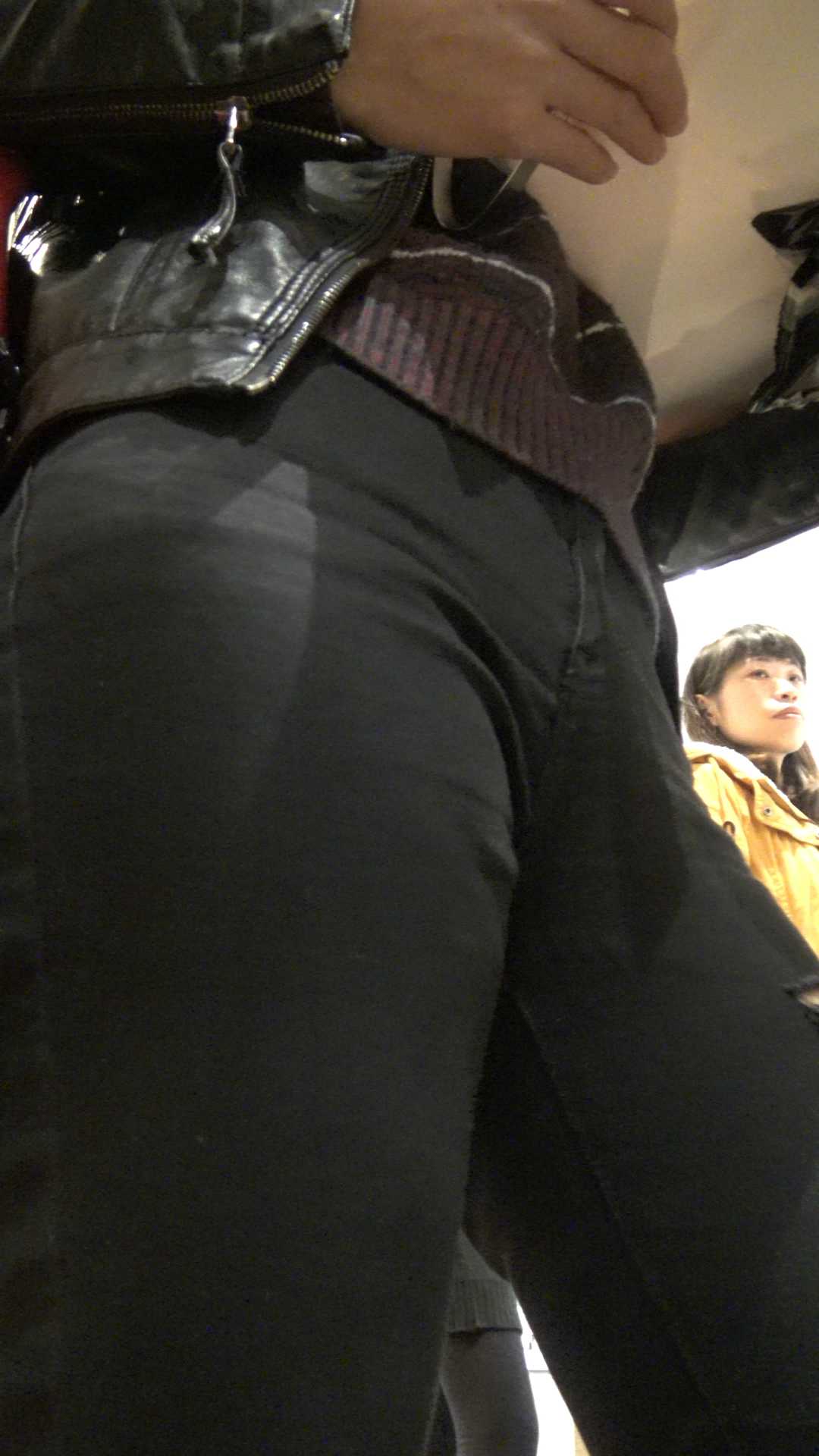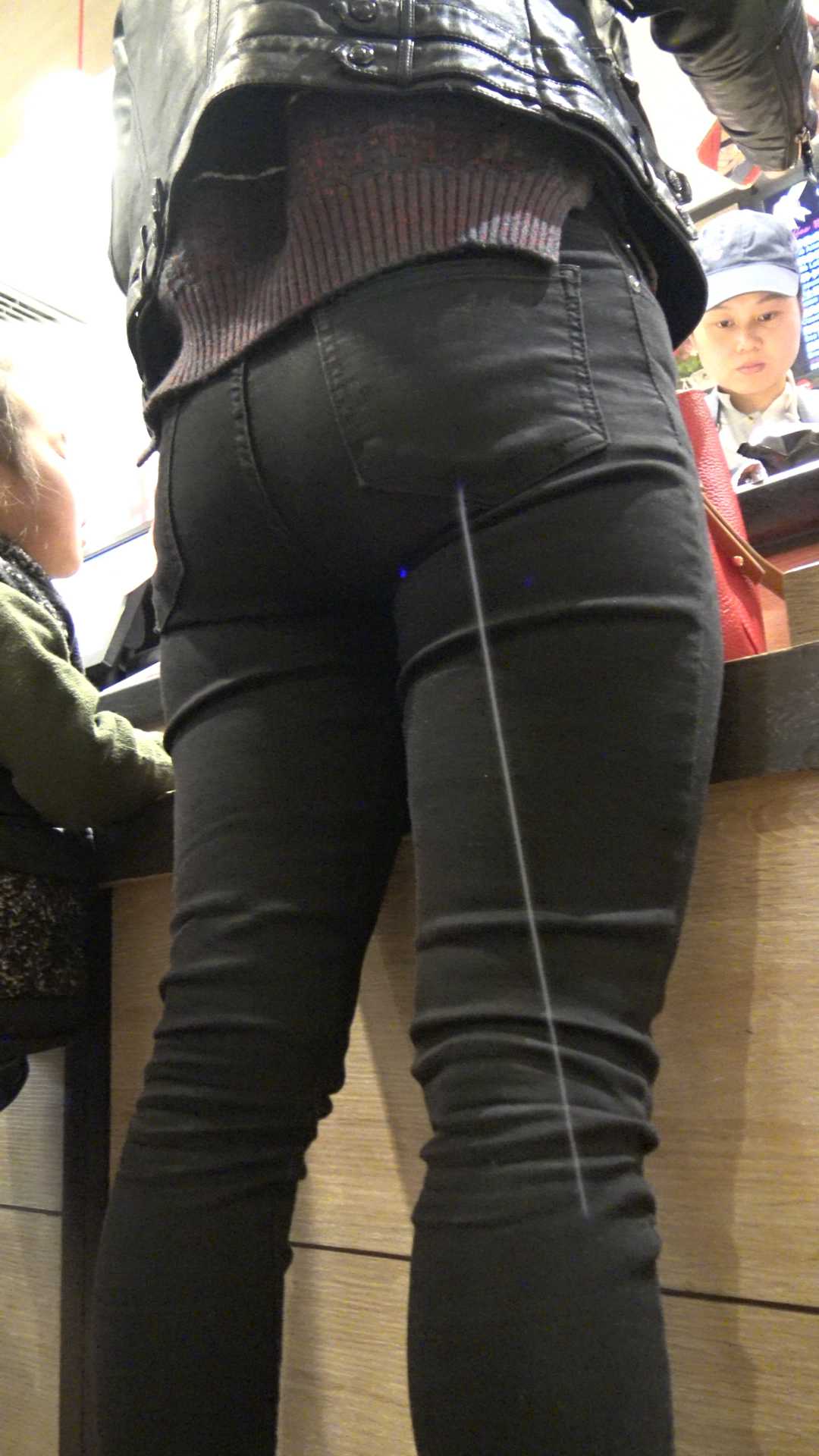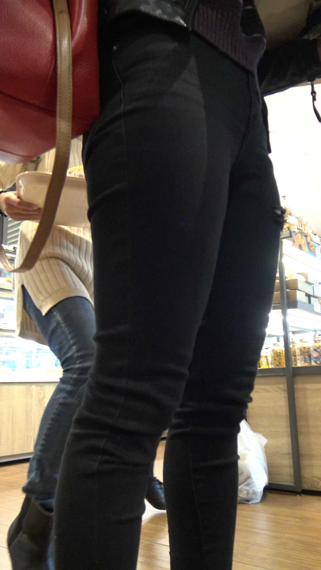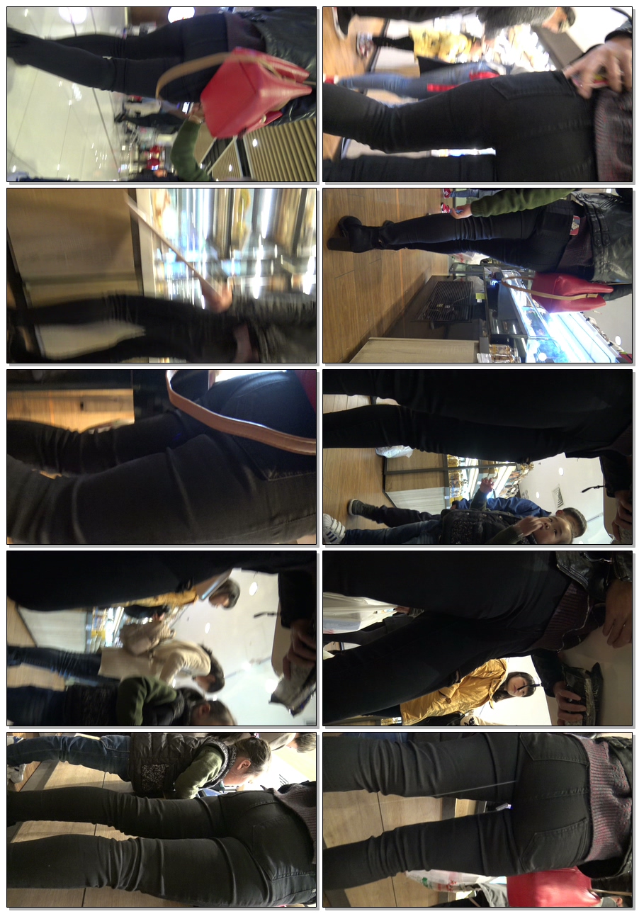 C914紧身翘臀黑裤年青妈咪