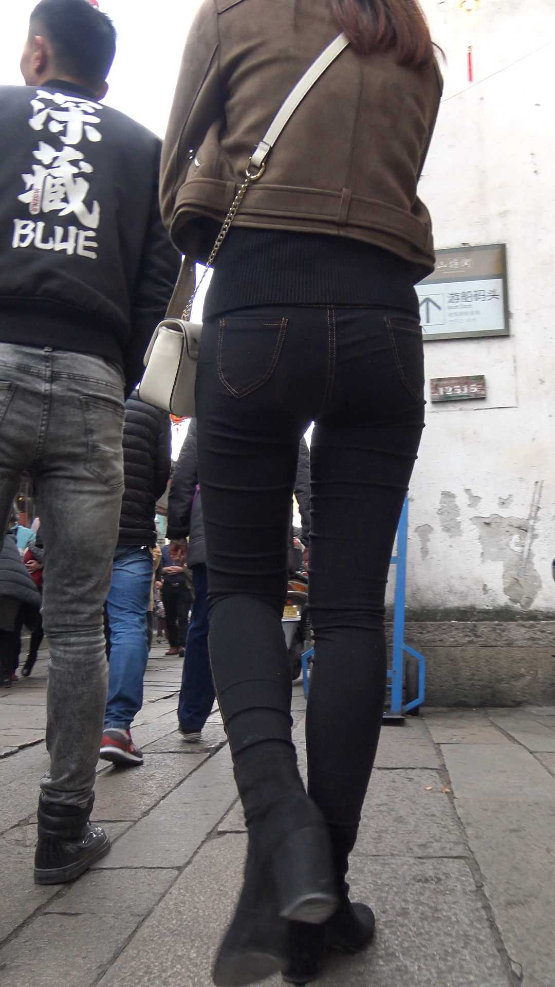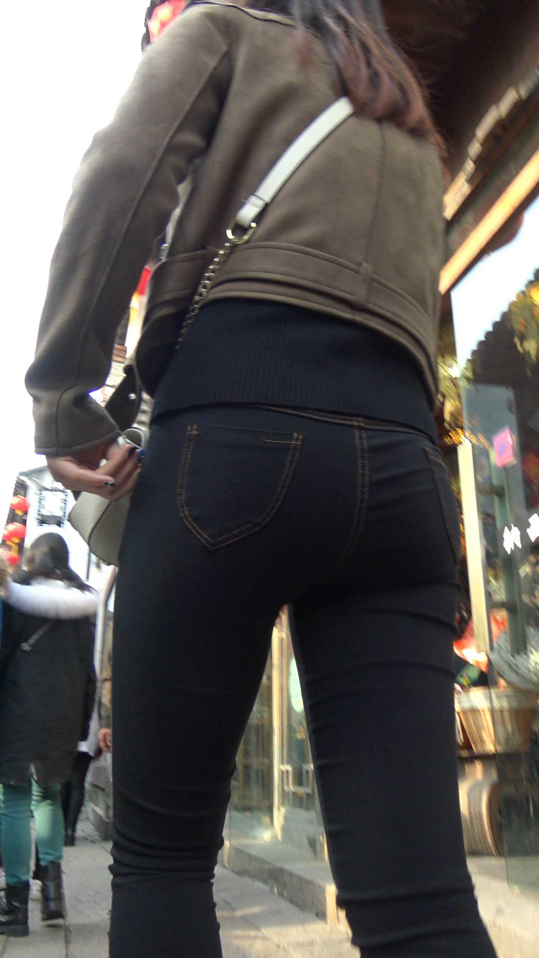 C954紧身黑色牛仔裤翘臀美女第一季