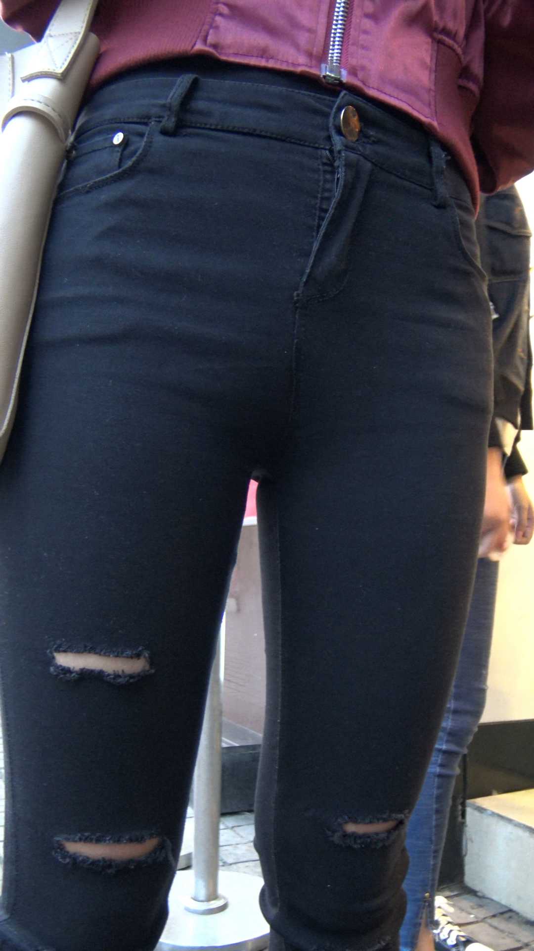 C964紧身黑裤金三角肥臀特写