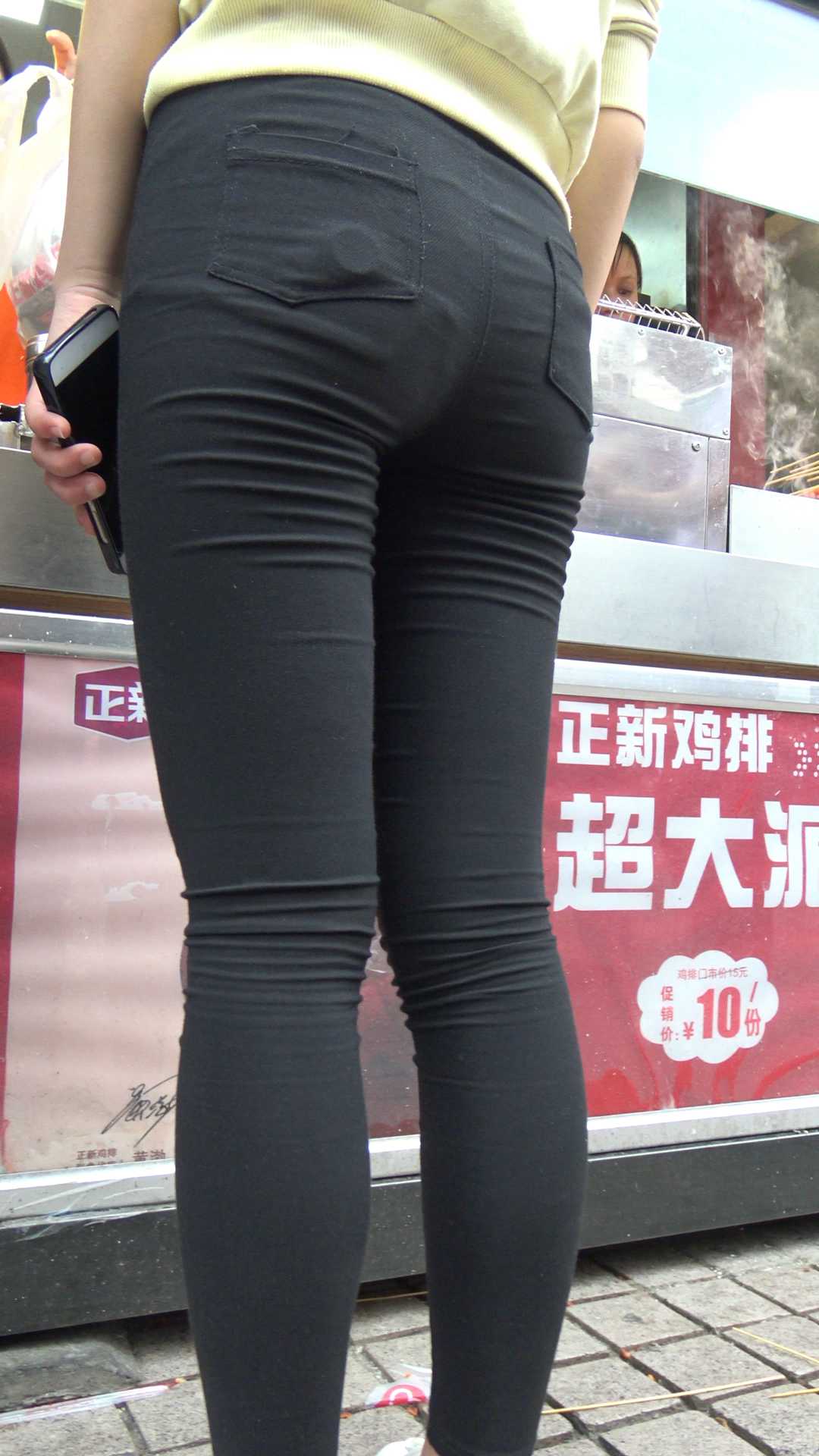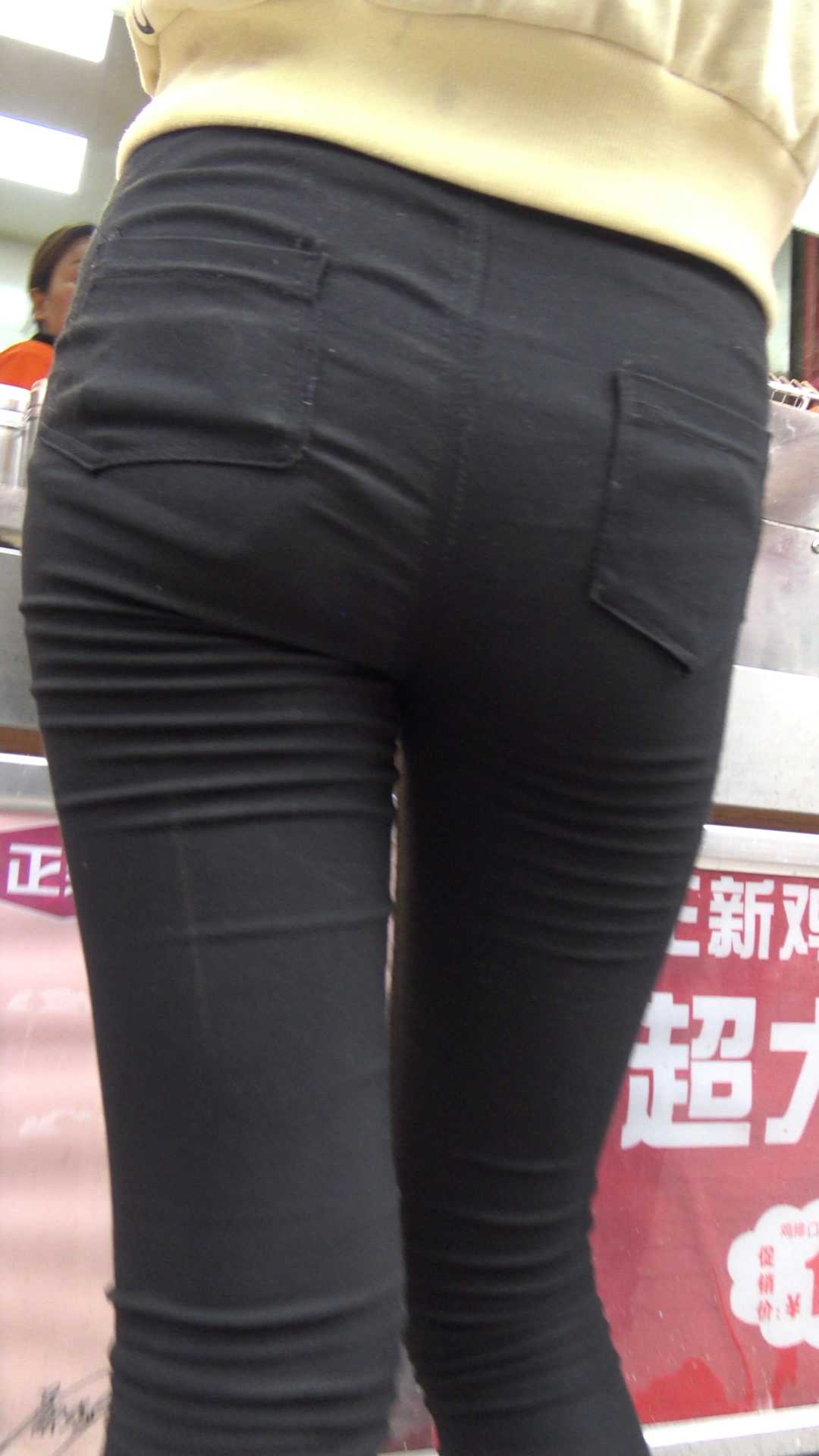 C989翘臀打底裤紧内痕少女排队