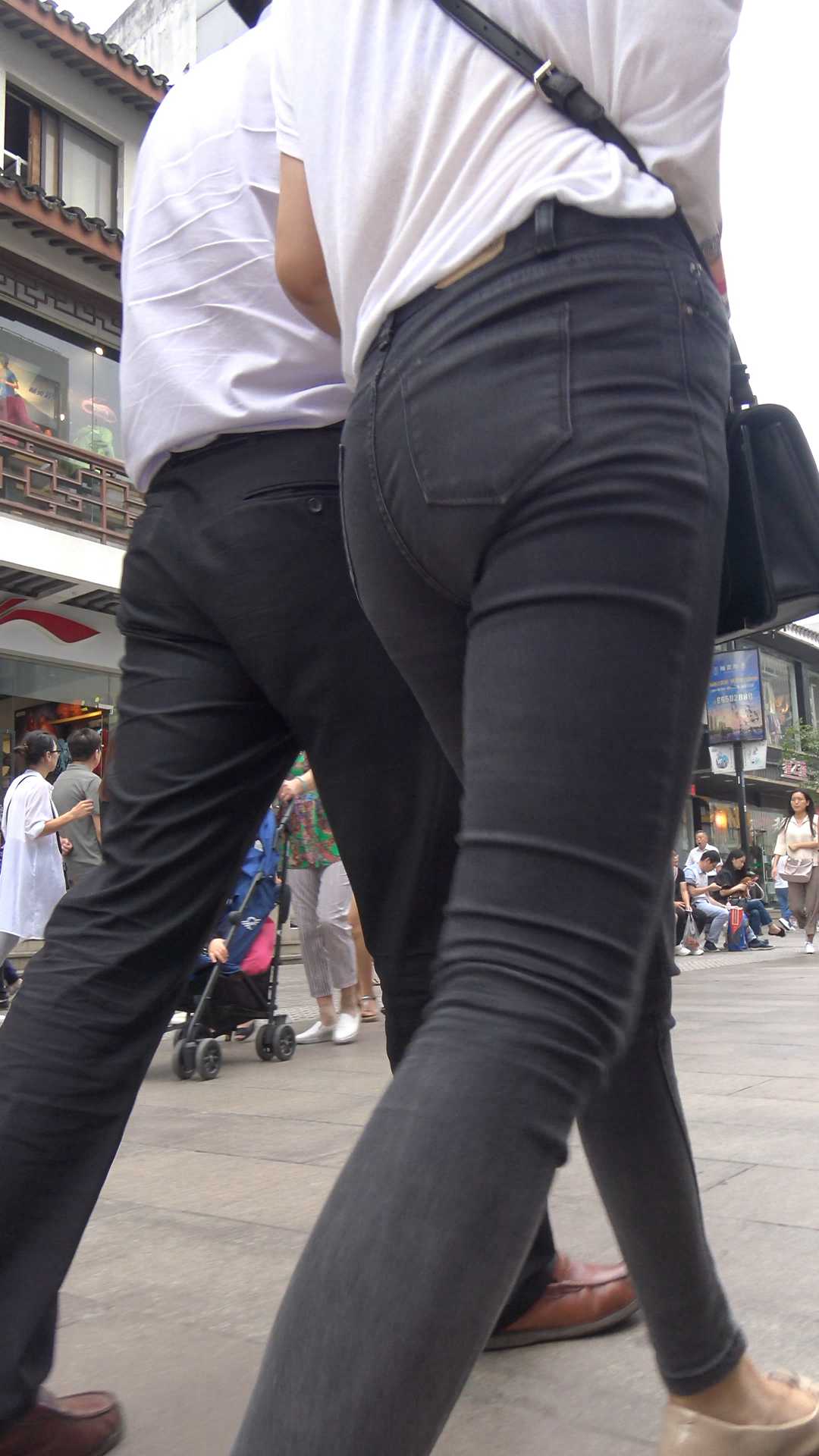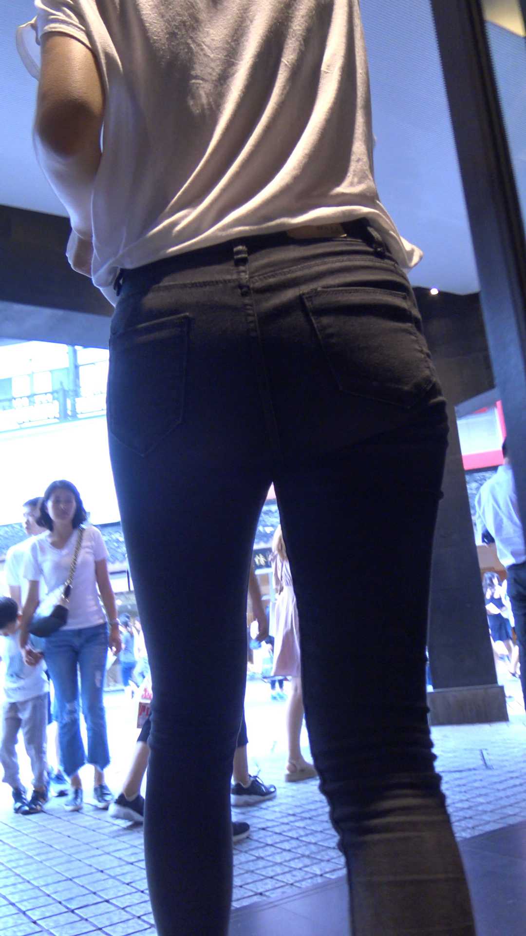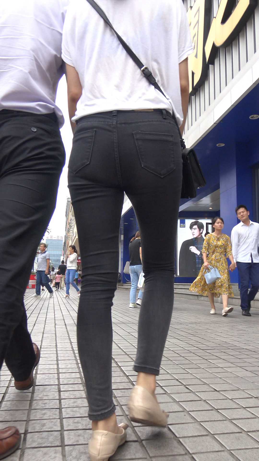 C1066街拍细腰大宽臀牛仔裤少妇