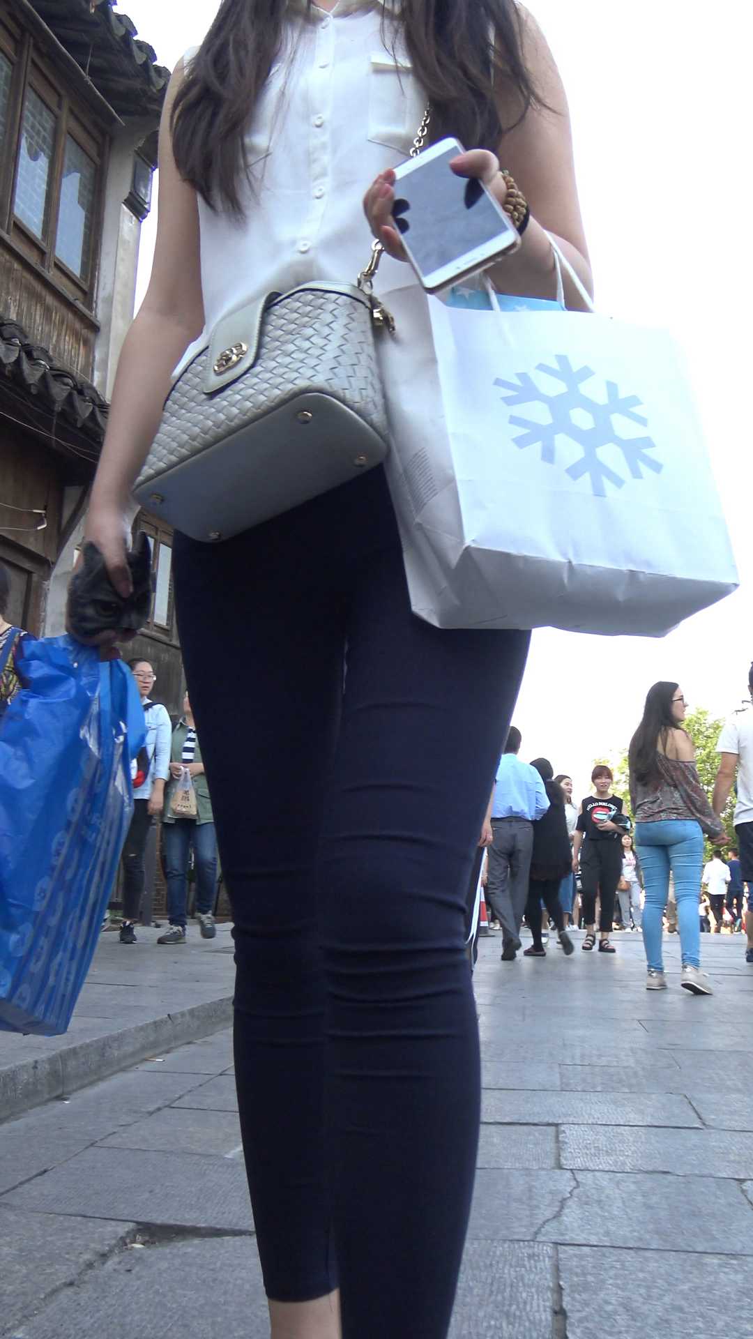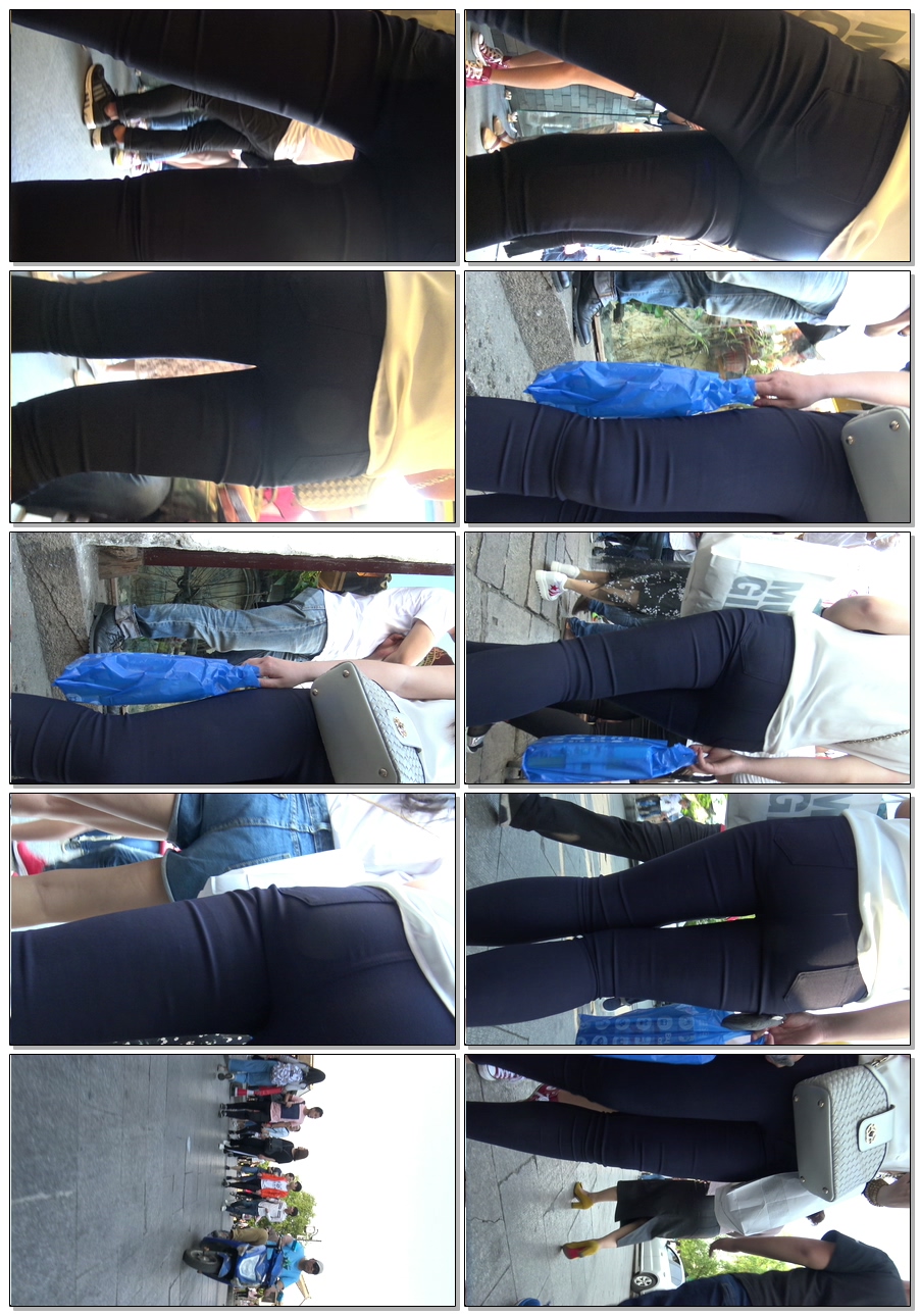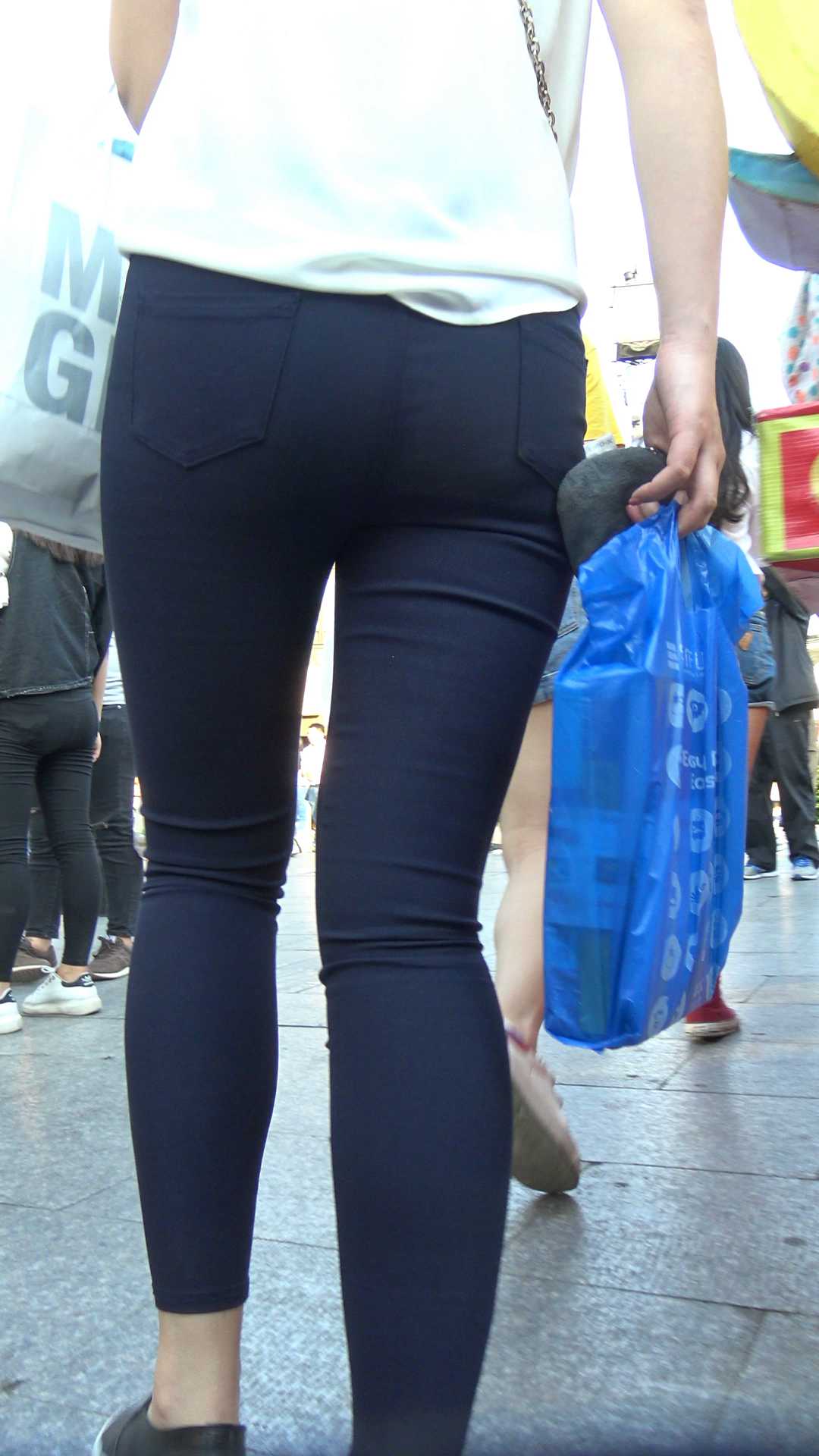 C1084街拍超紧蓝色打底裤翘臀少女