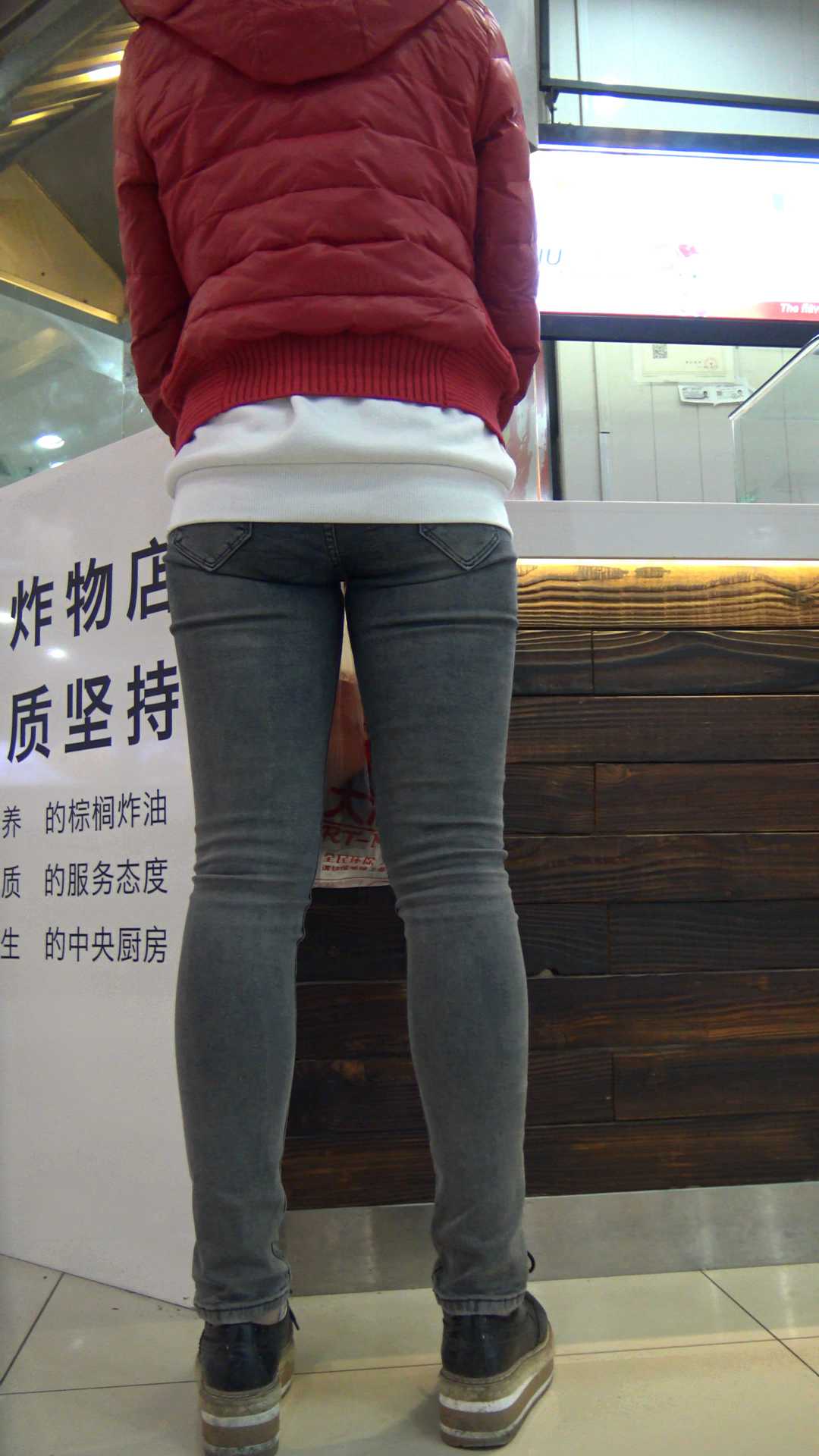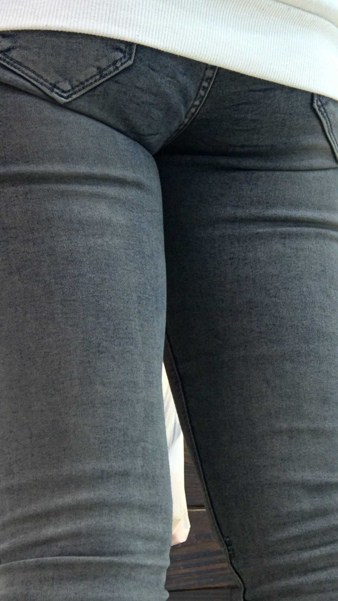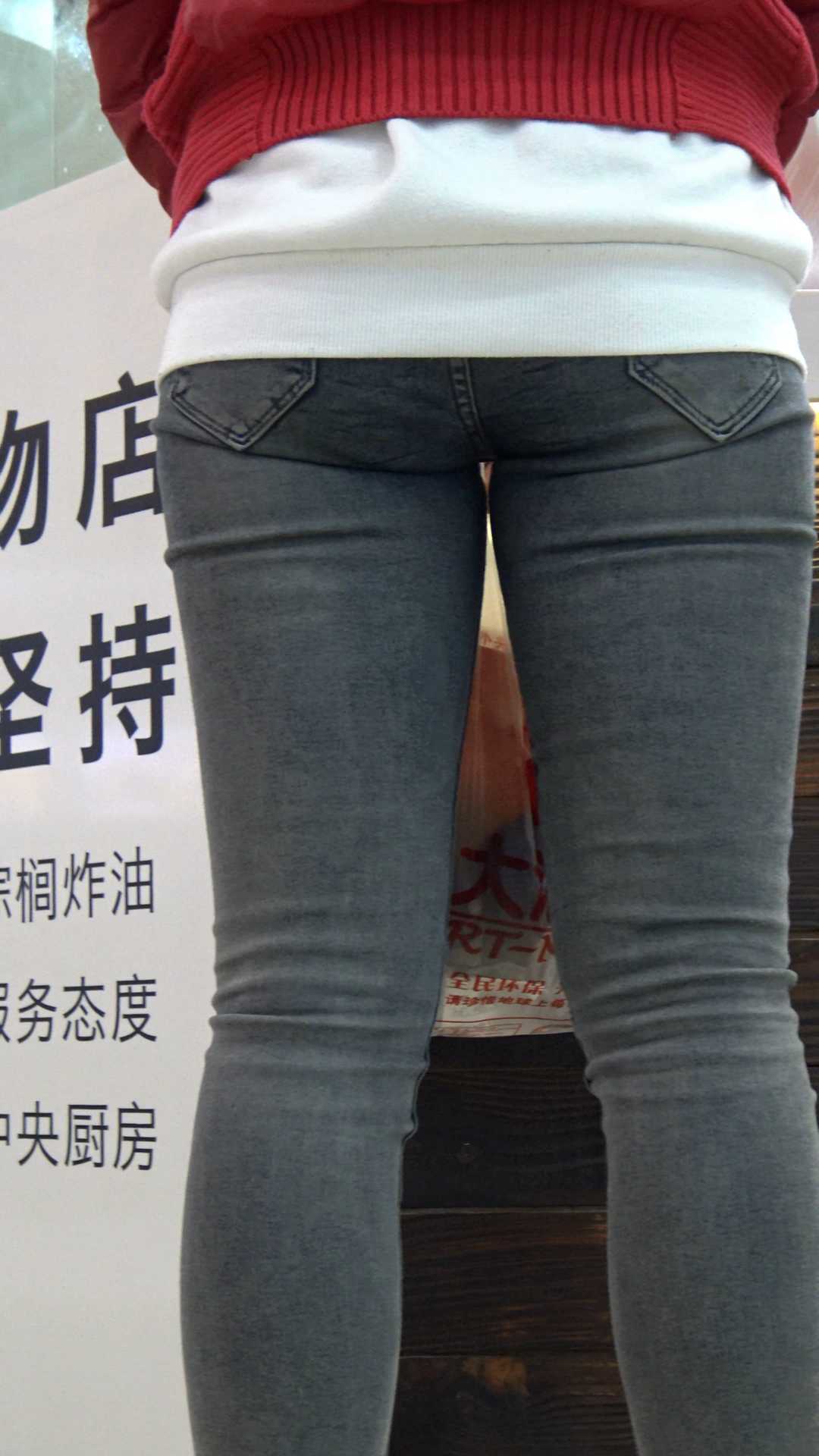 C1297跟拍商场紧身灰牛少妇