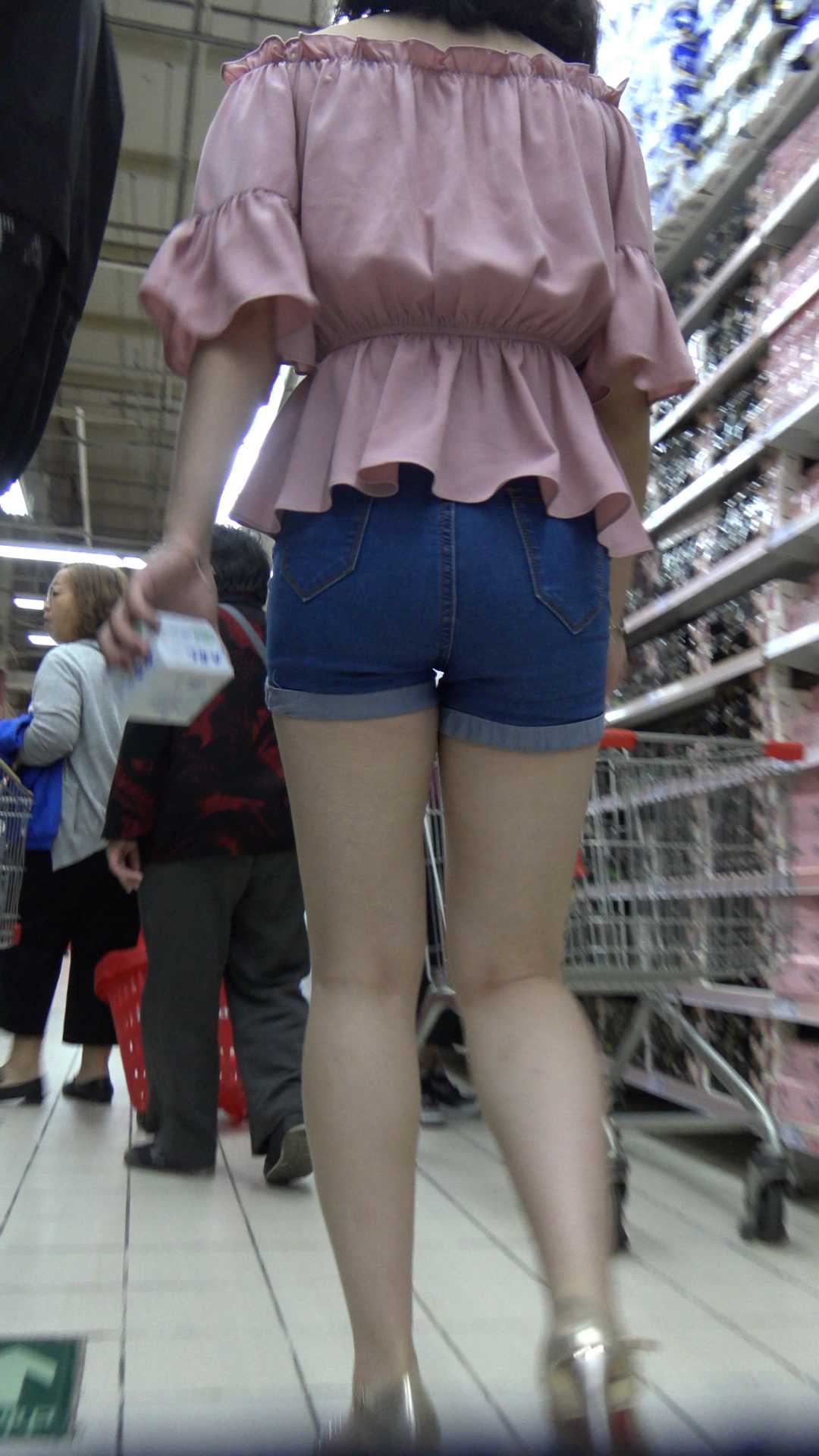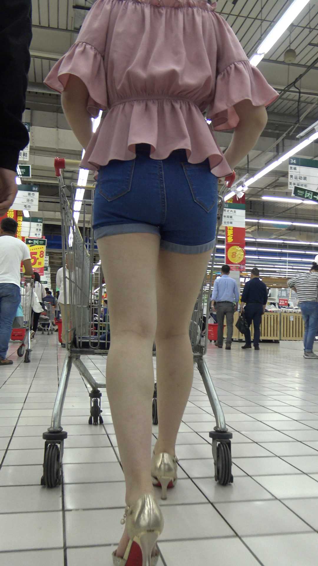 C1381高跟牛仔短裤长发美腿成熟少妇
