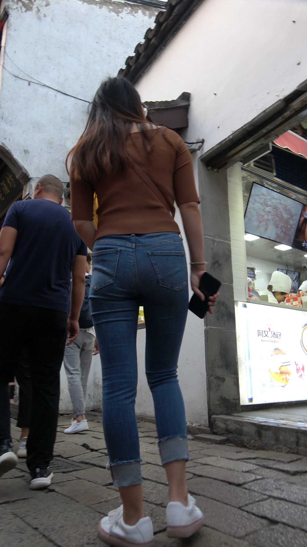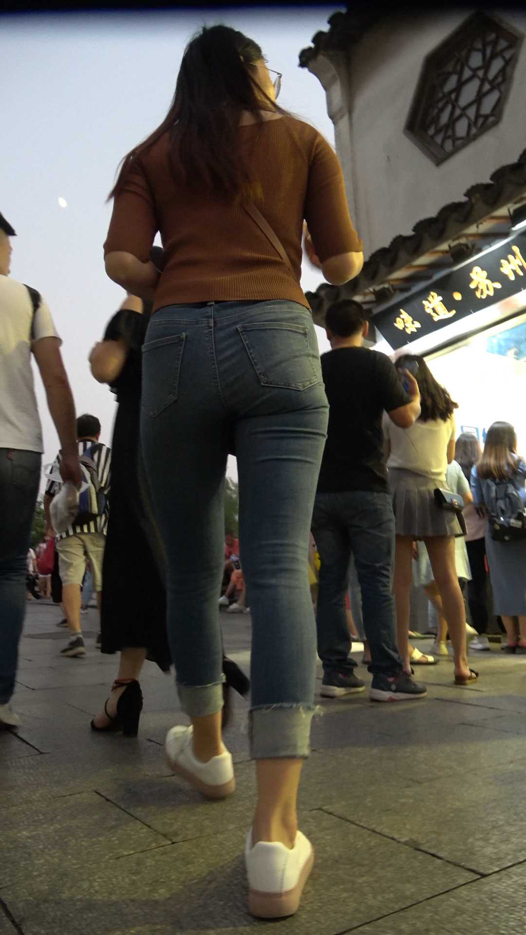 C25古街紧身包臀牛仔裤少妇