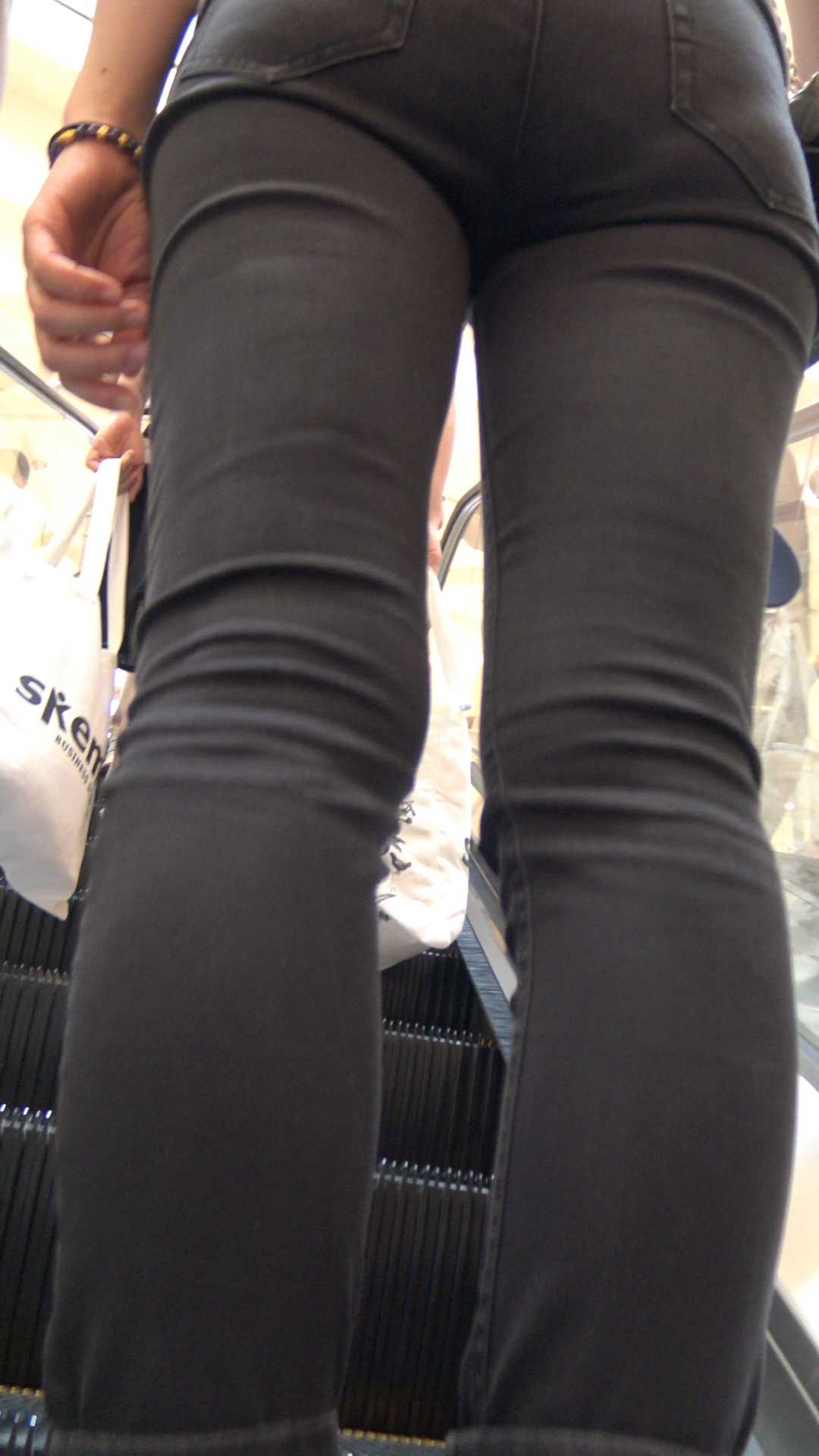 C304超紧黑牛仔裤翘臀少妇