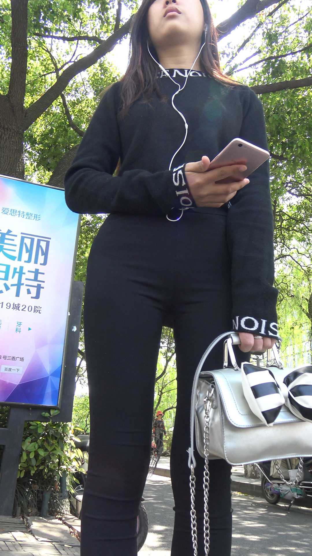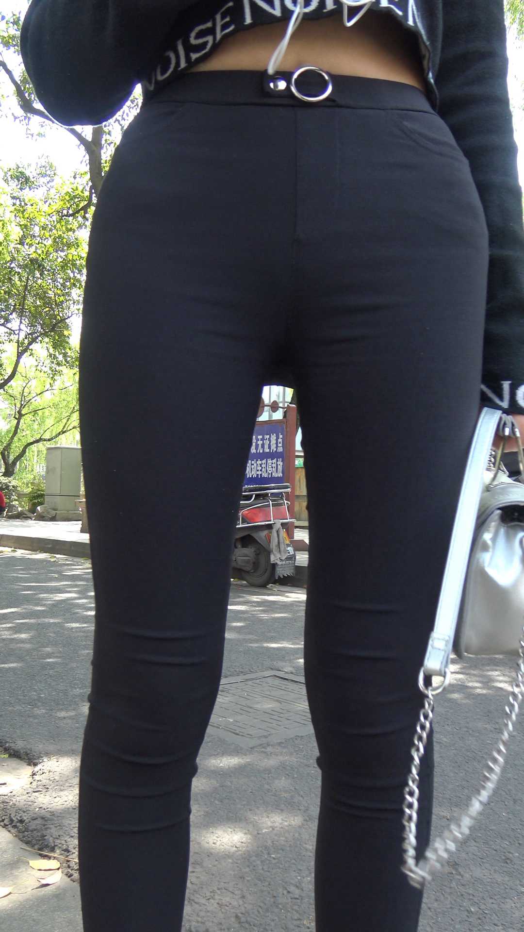 C309路旁焦急等待打车的黑色紧身裤