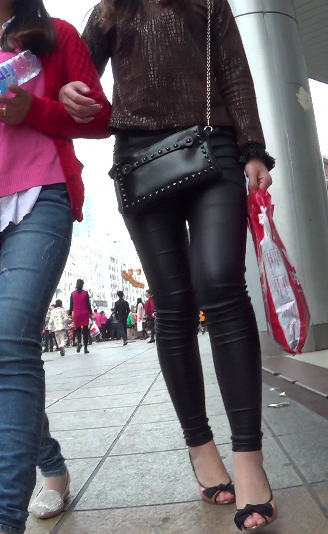 街头新潮流:水灵秀气的短裙低腰裤黑丝mm 编号1117