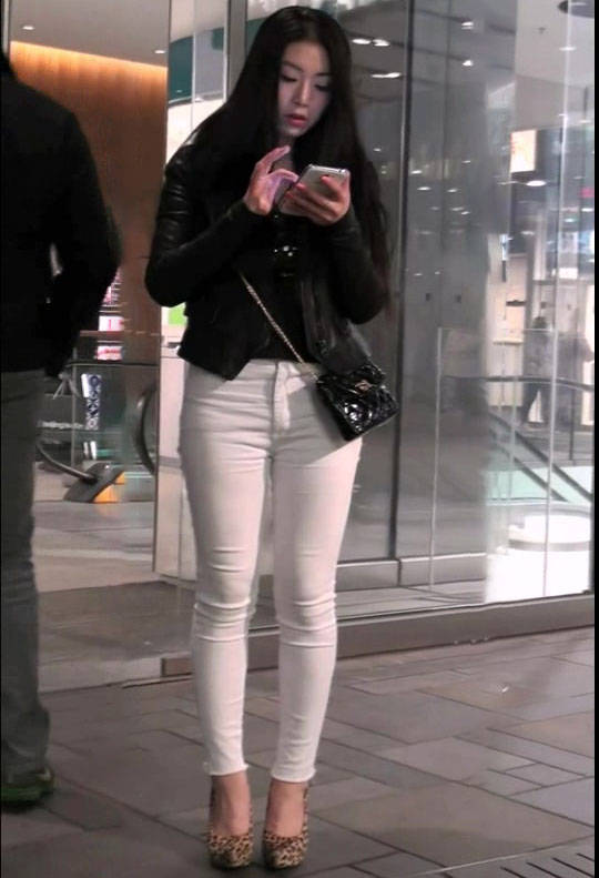 时尚达人:仙姿玉色的包臀裙紧身牛仔裤长腿女生 编号1125