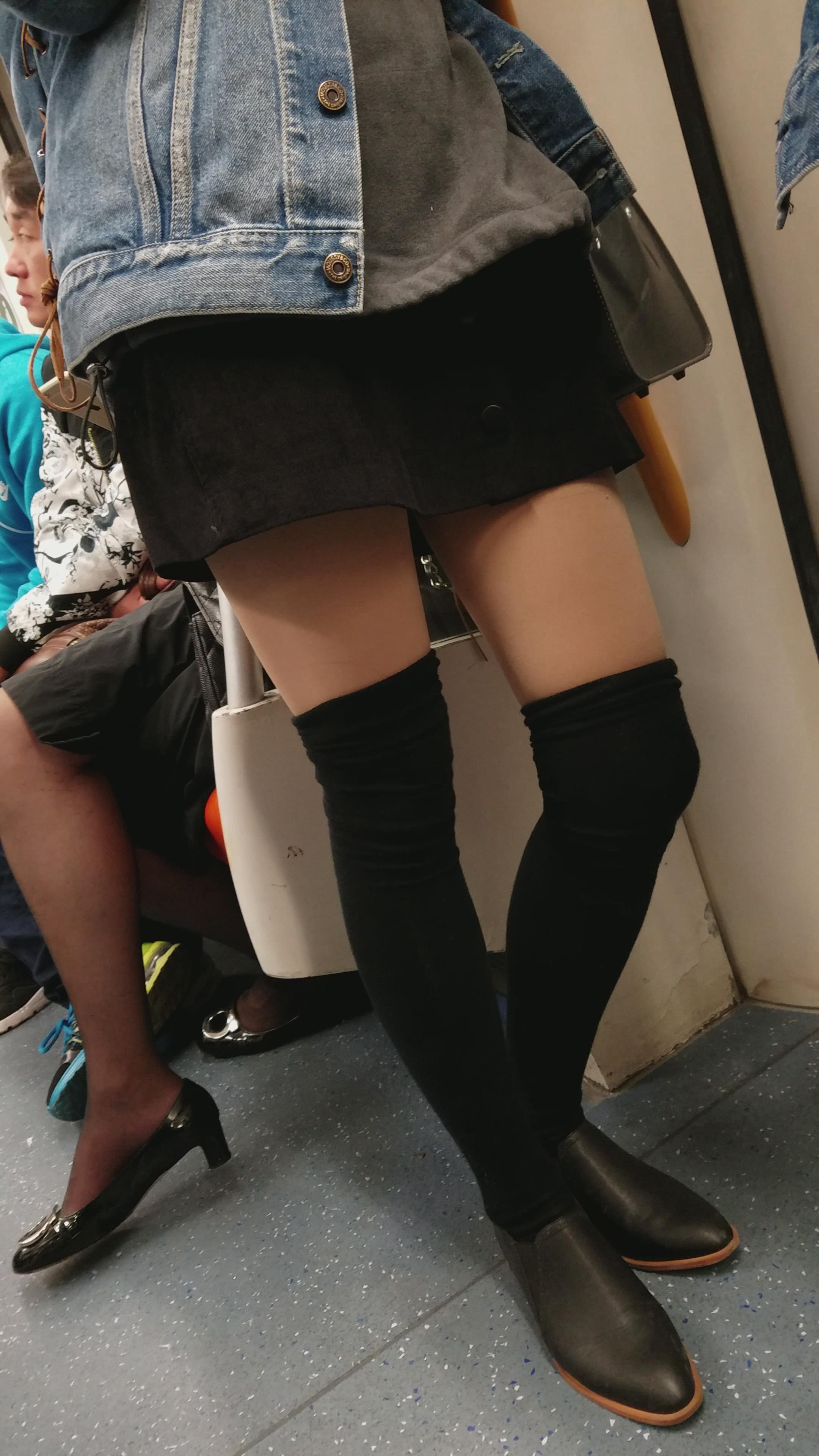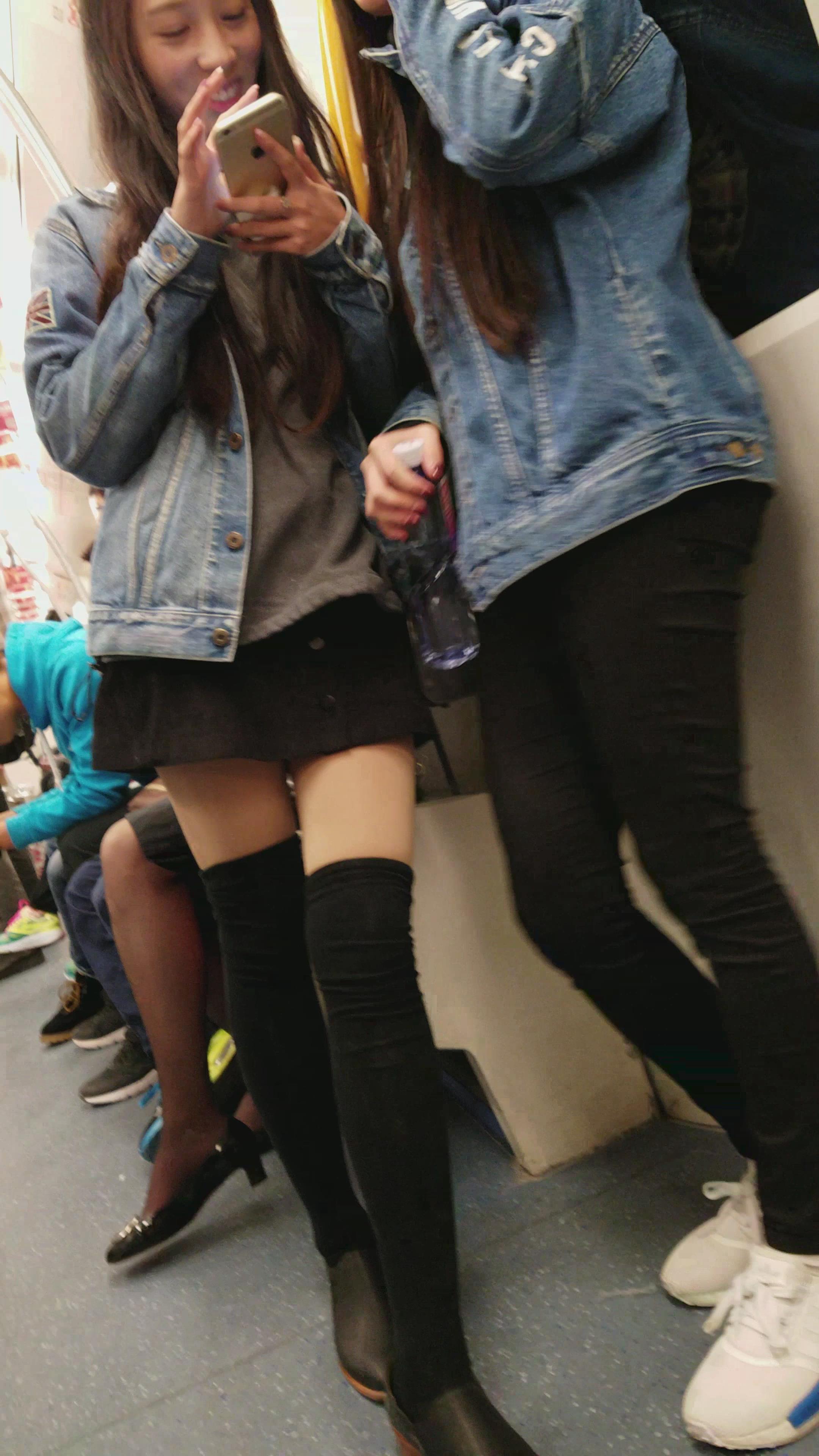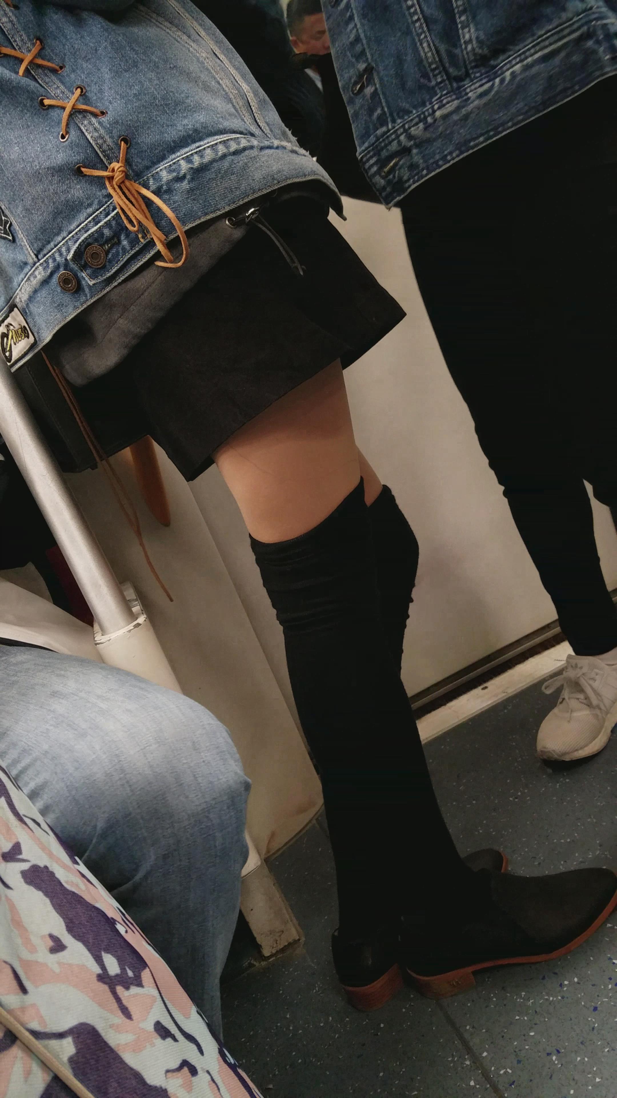 4k-地铁上偶遇超级甜美小清新牛仔外套美女 编号3318