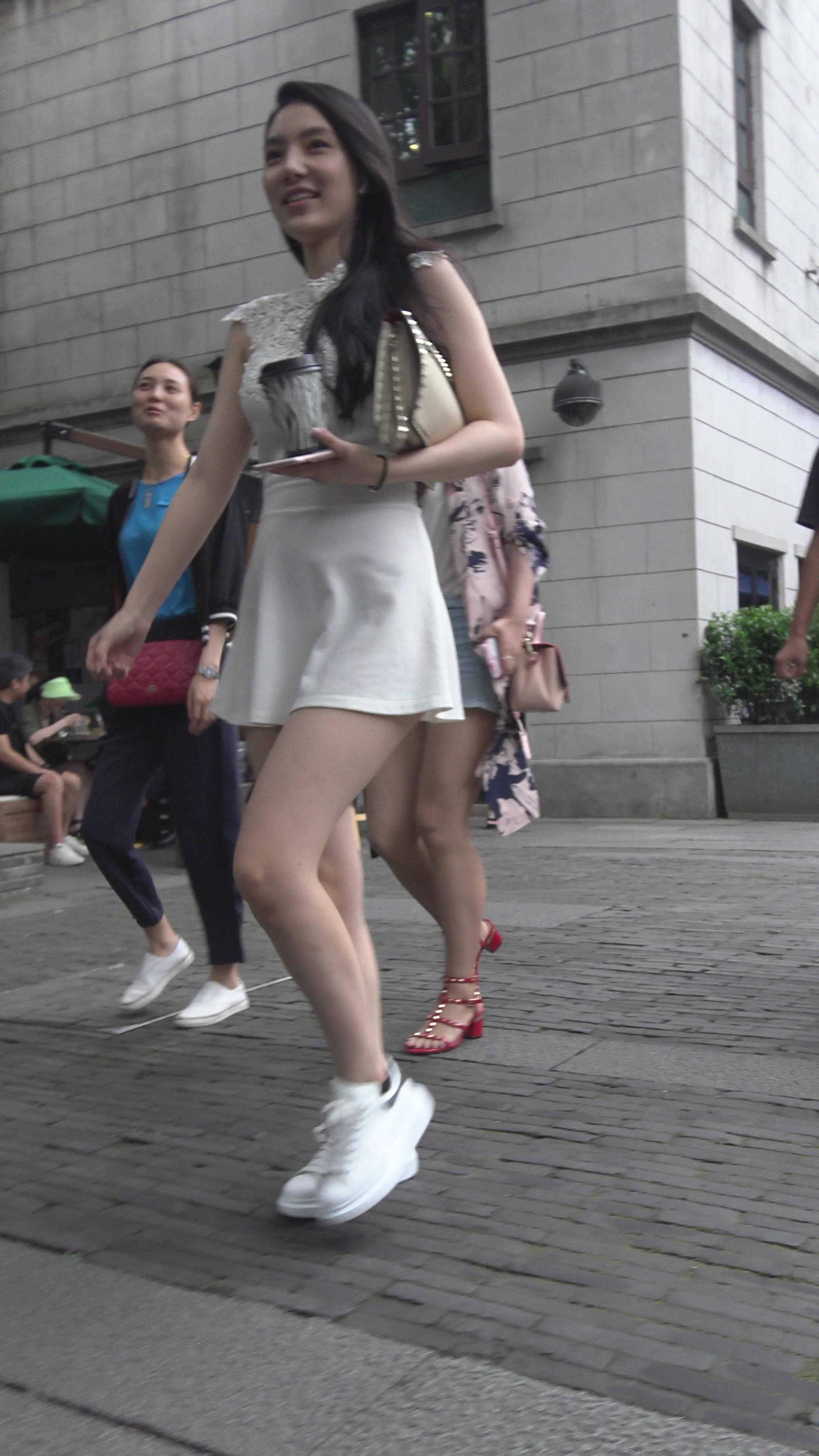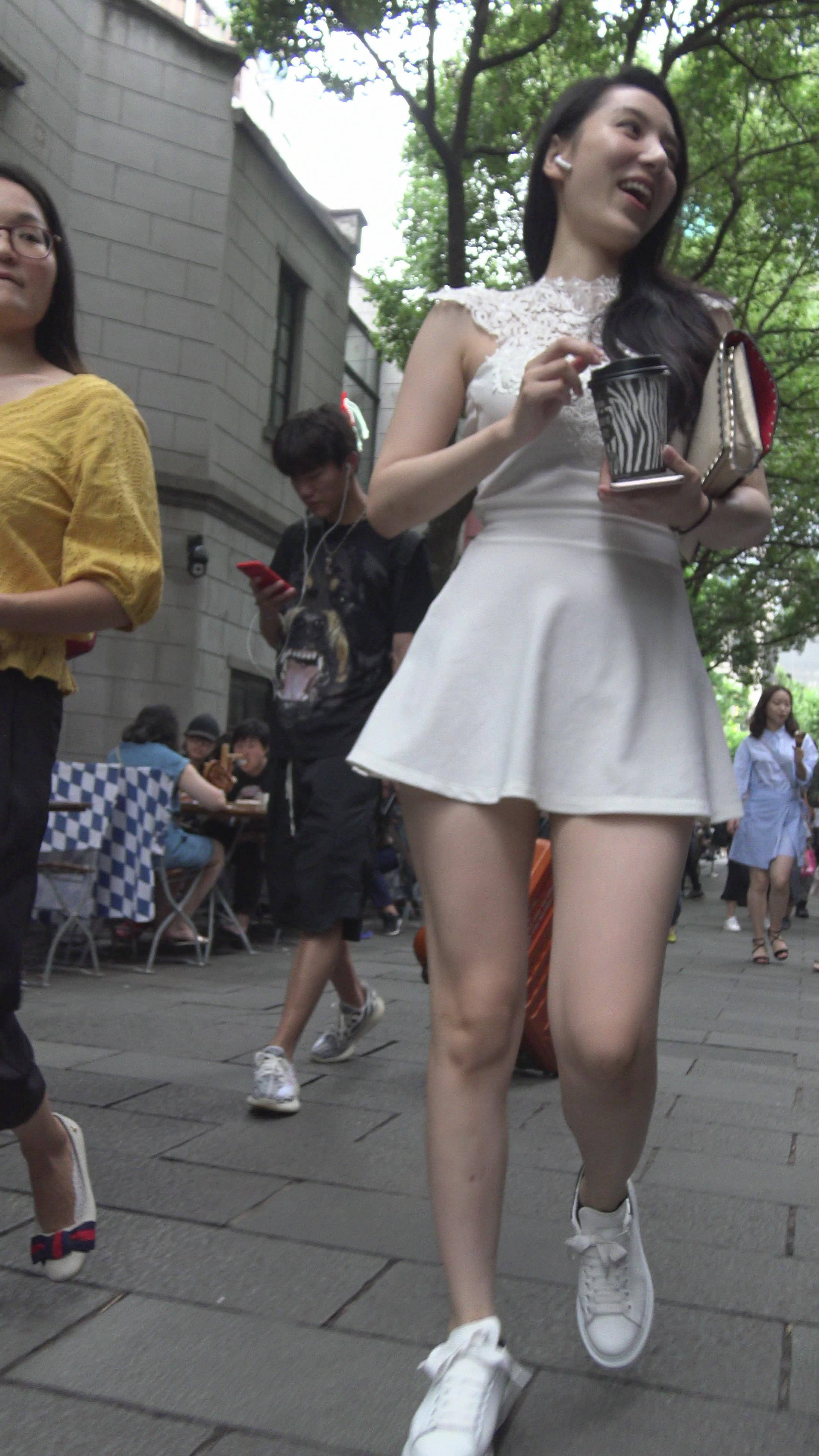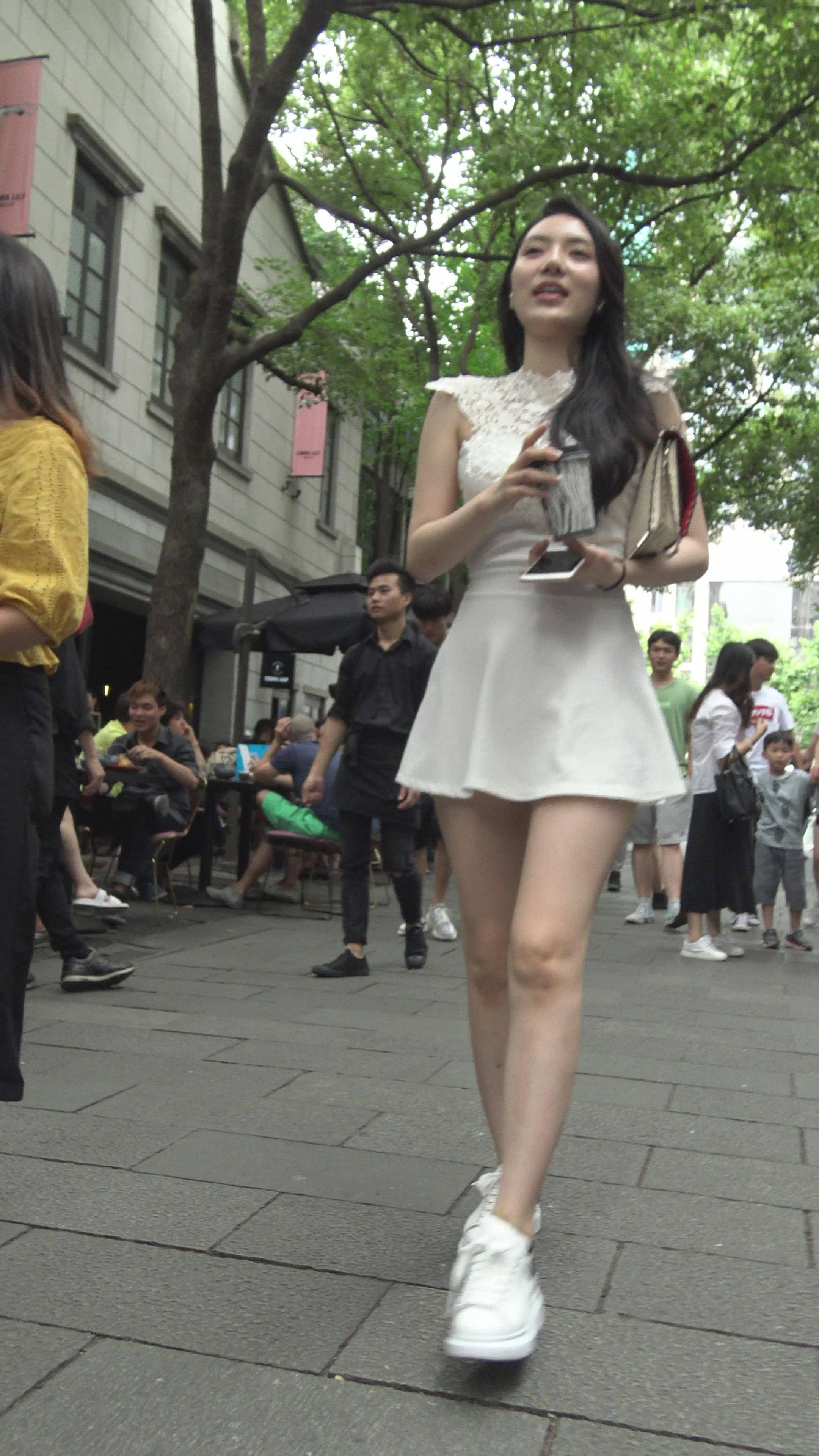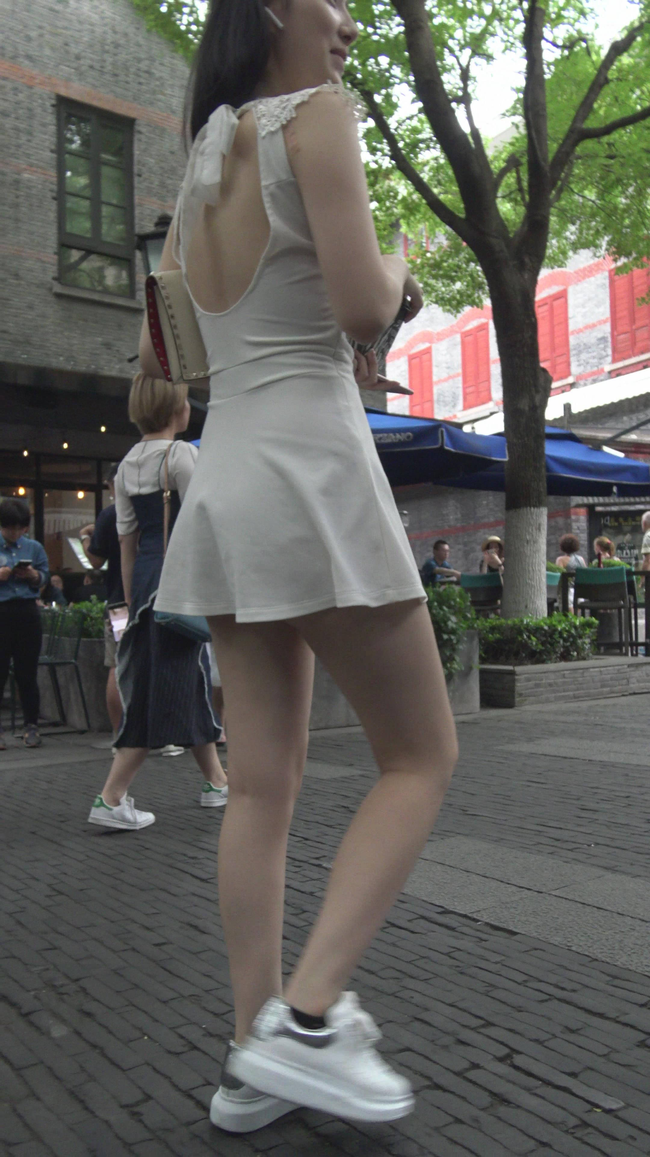4K - 街拍白色连衣裙性感御姐美女 编号7931