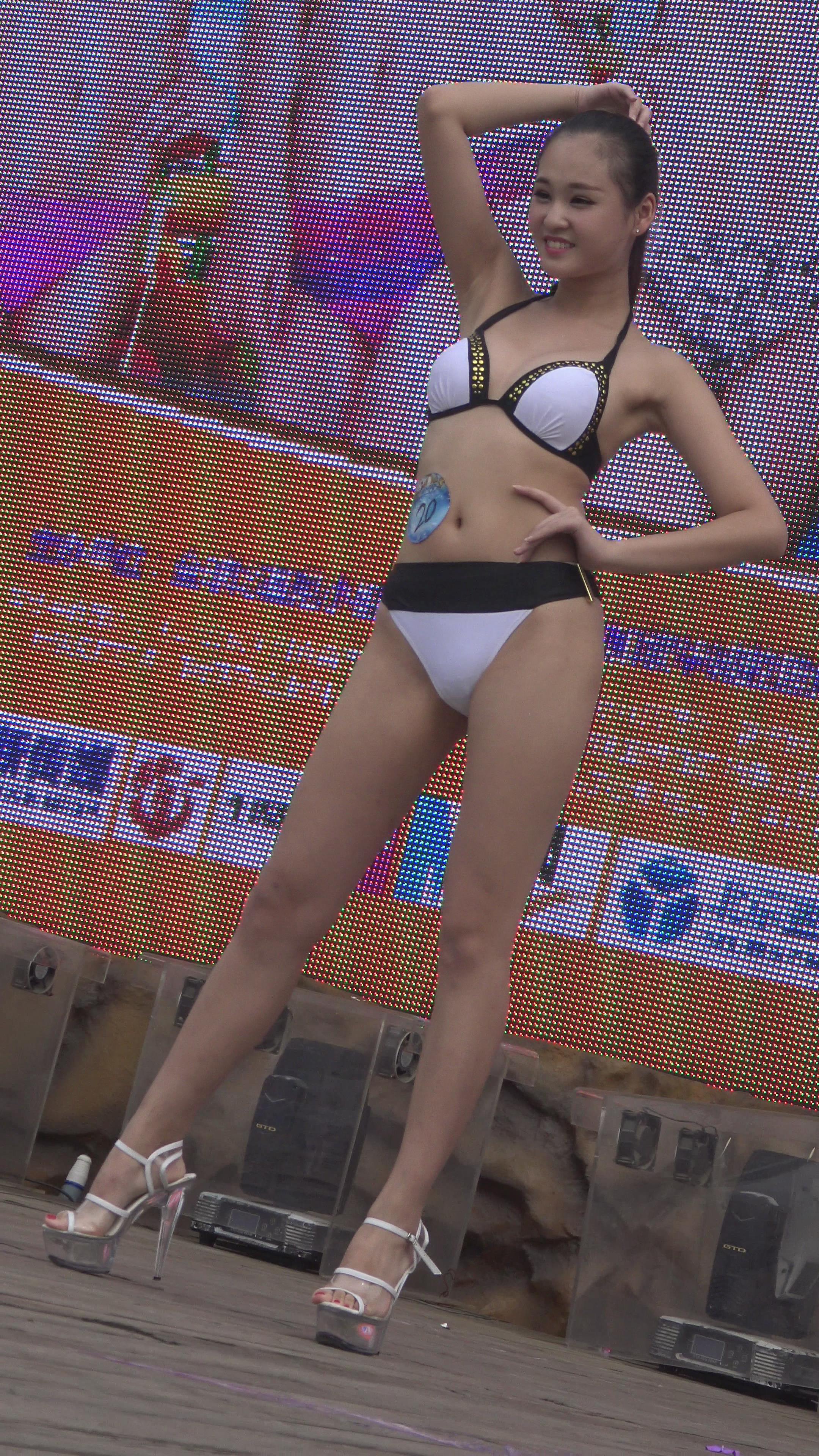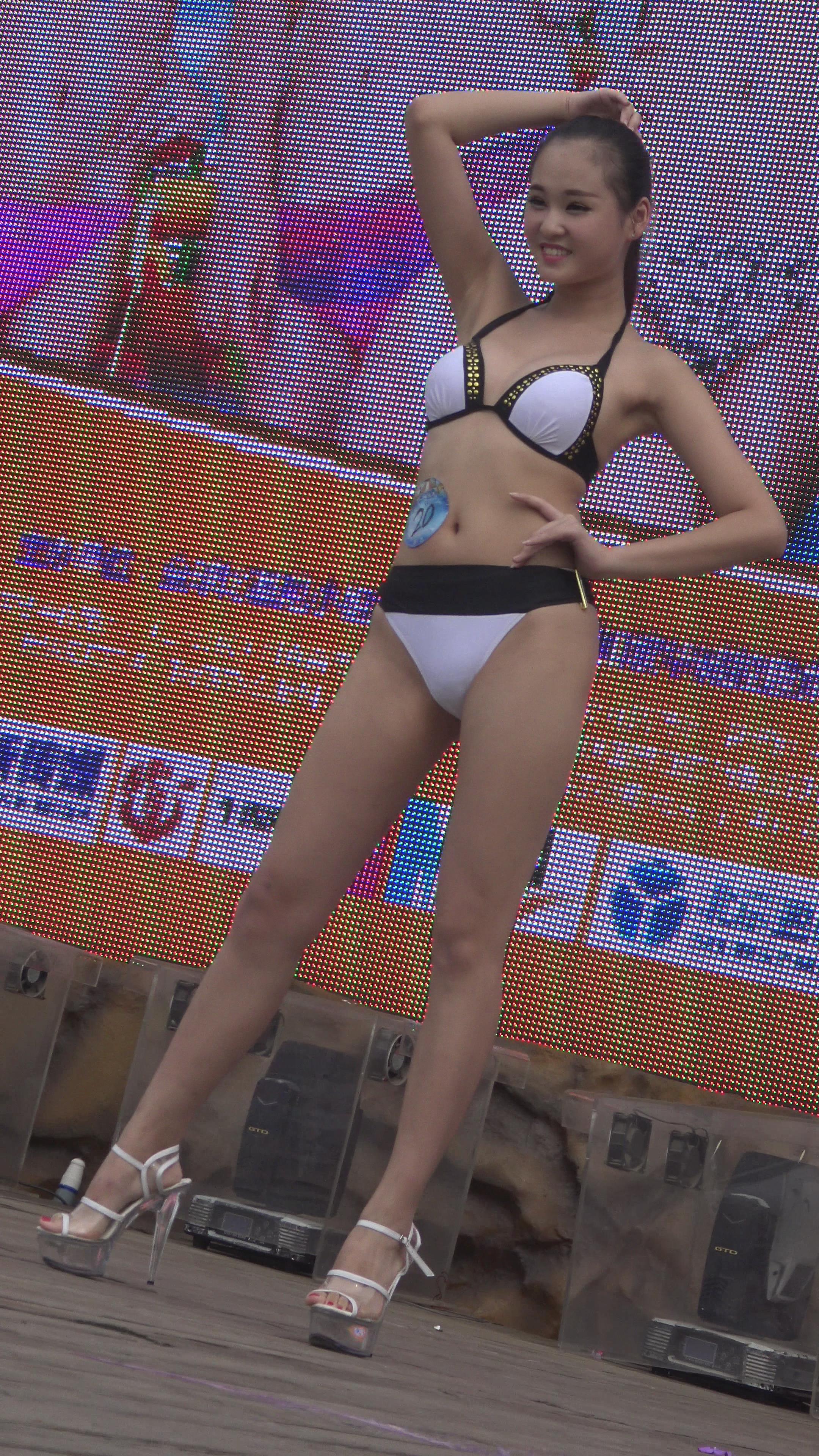 长相清纯可人的黑白比基尼泳装模特,拥有一双修长的白腿 编号1639