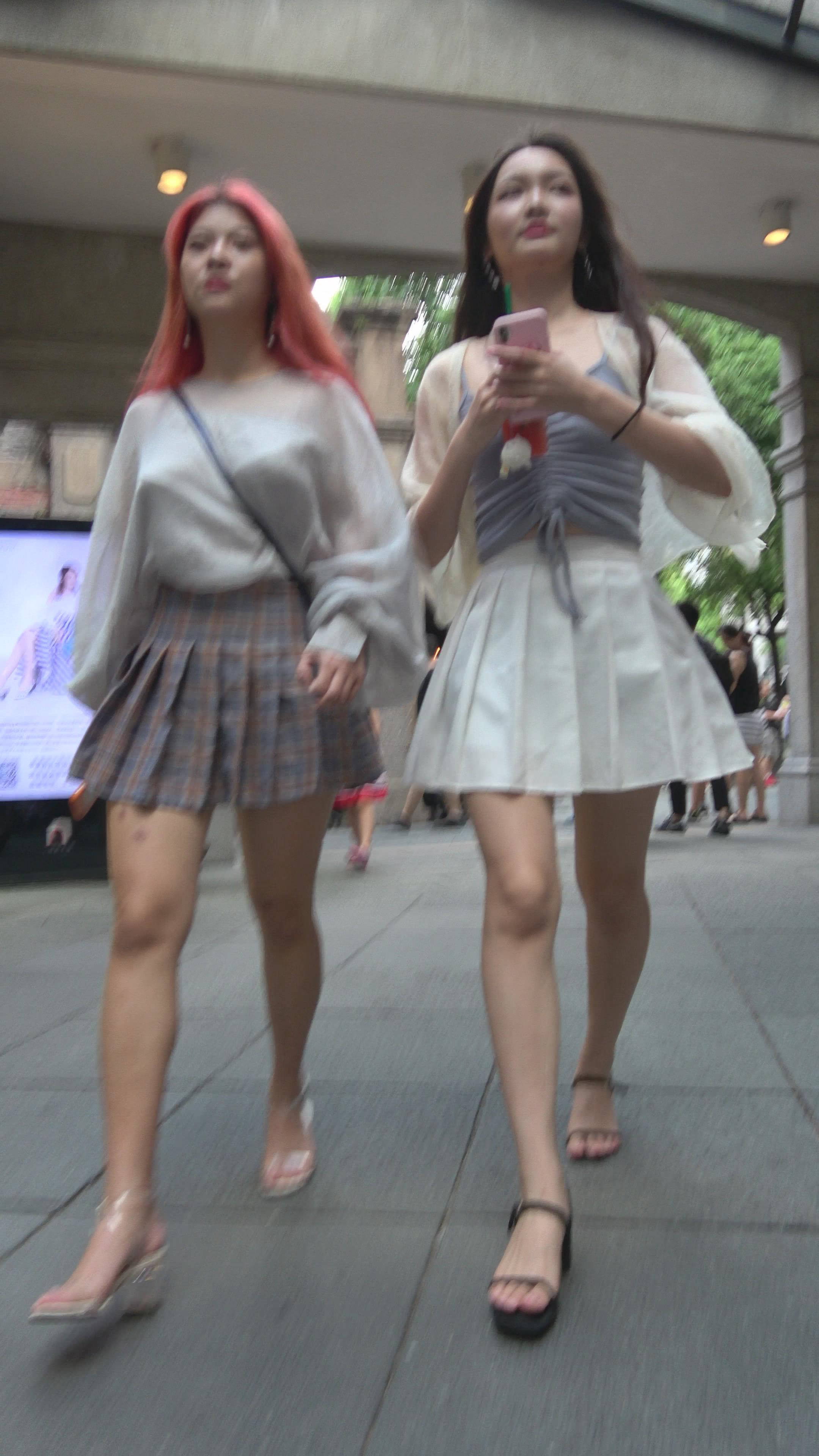 4K 性感吊带背心小白裙性感街拍美女 编号7315