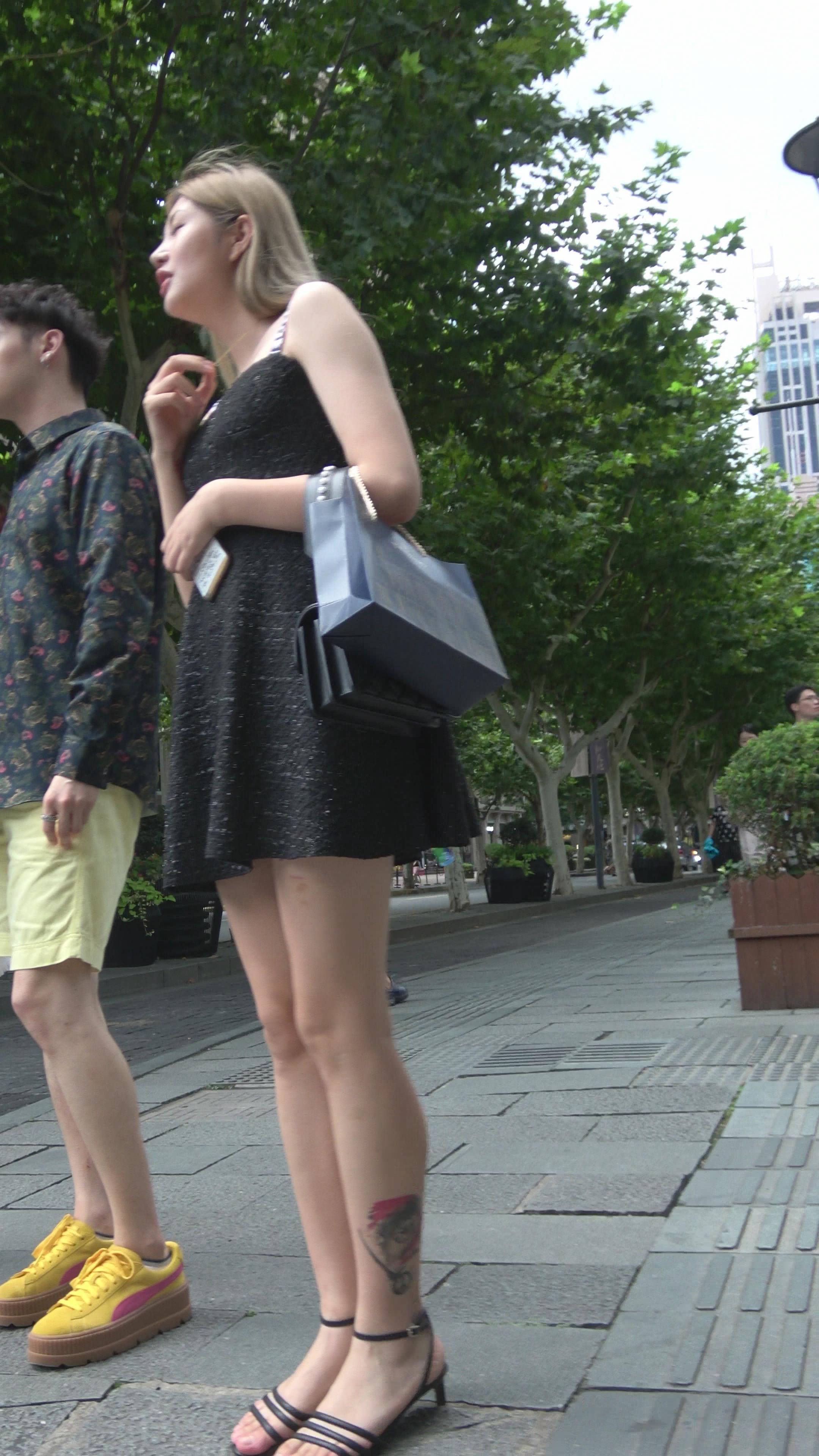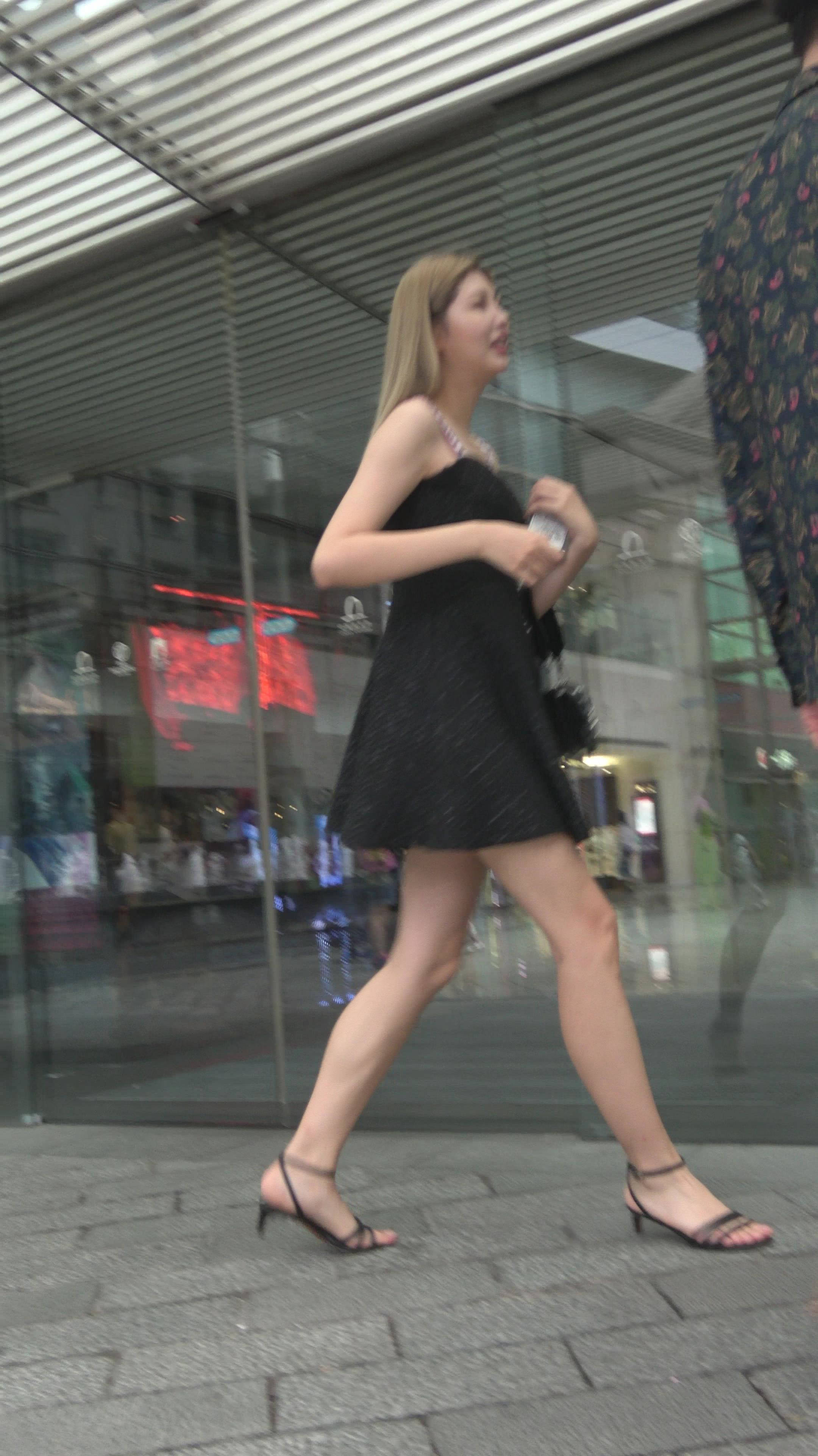 4K 街拍黑色连衣裙美眉 编号7320