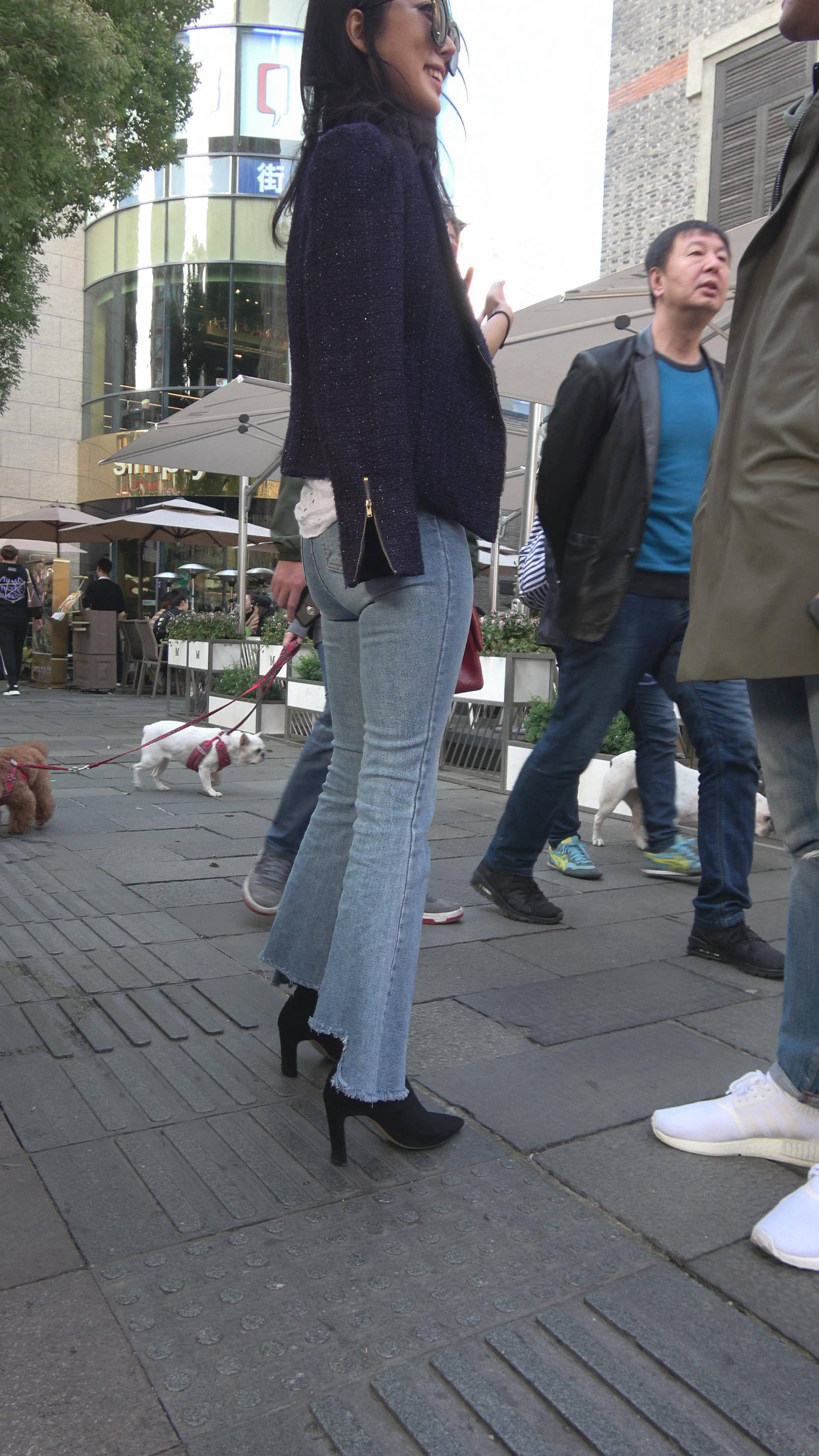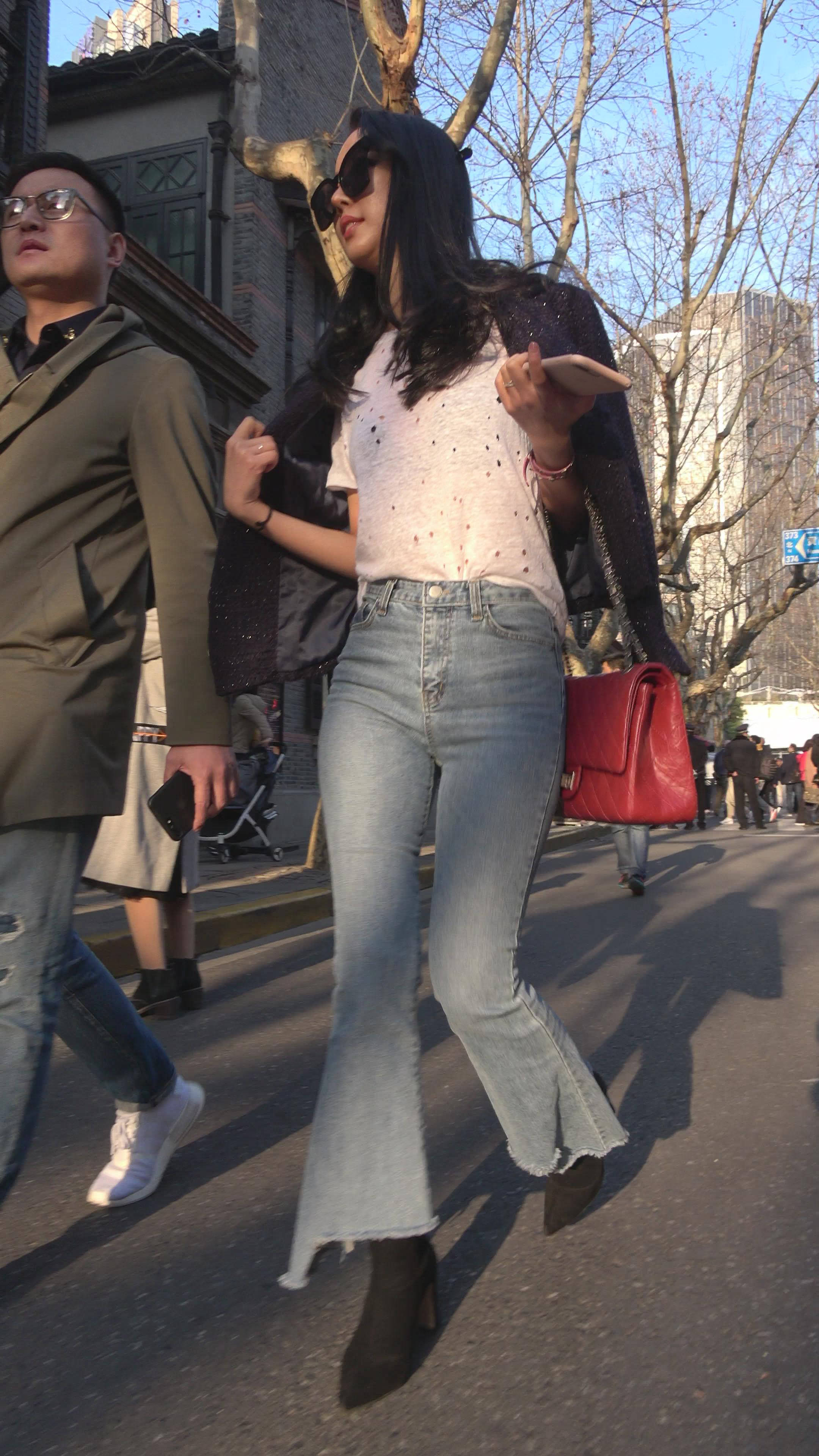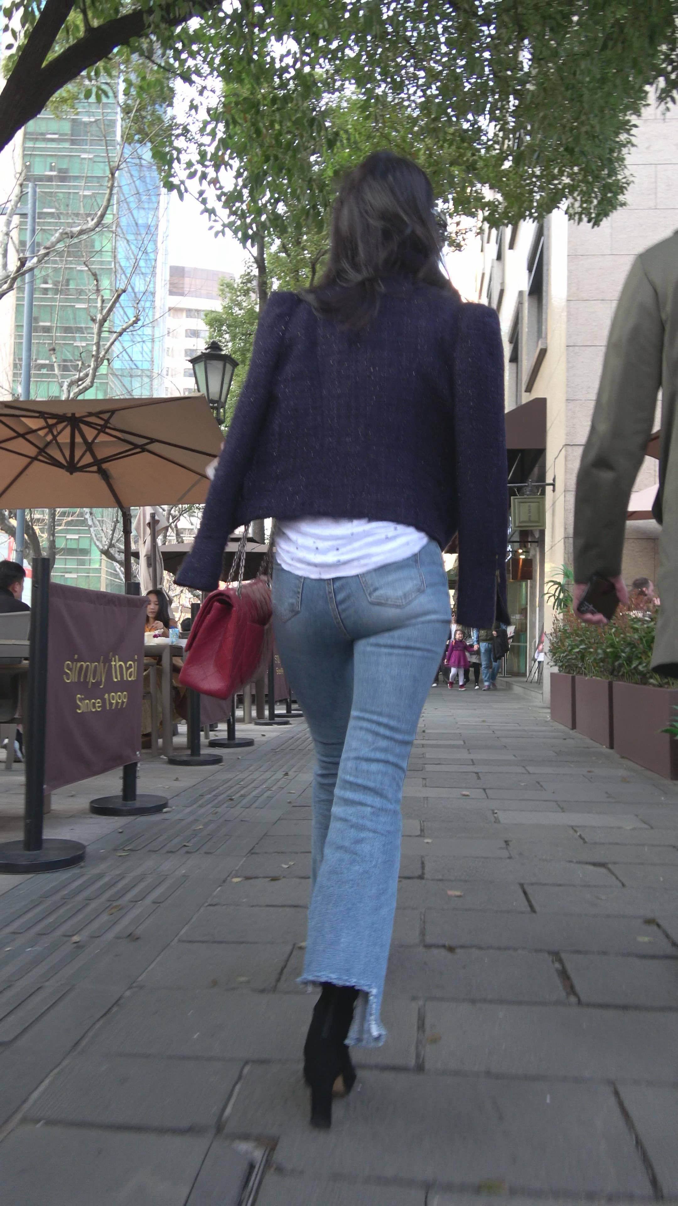 4K 性感身材街拍牛仔喇叭裤美女 2 编号7344
