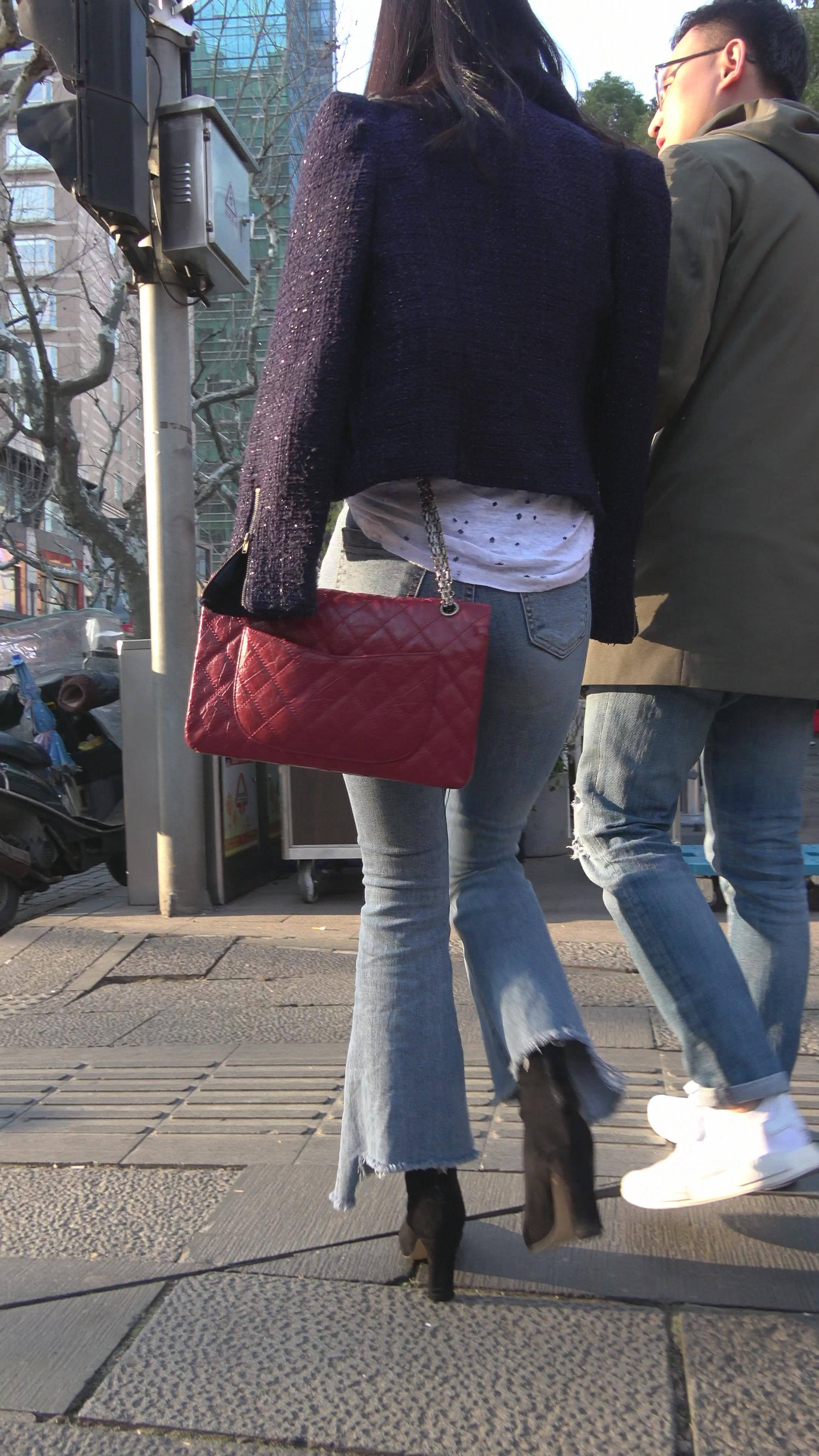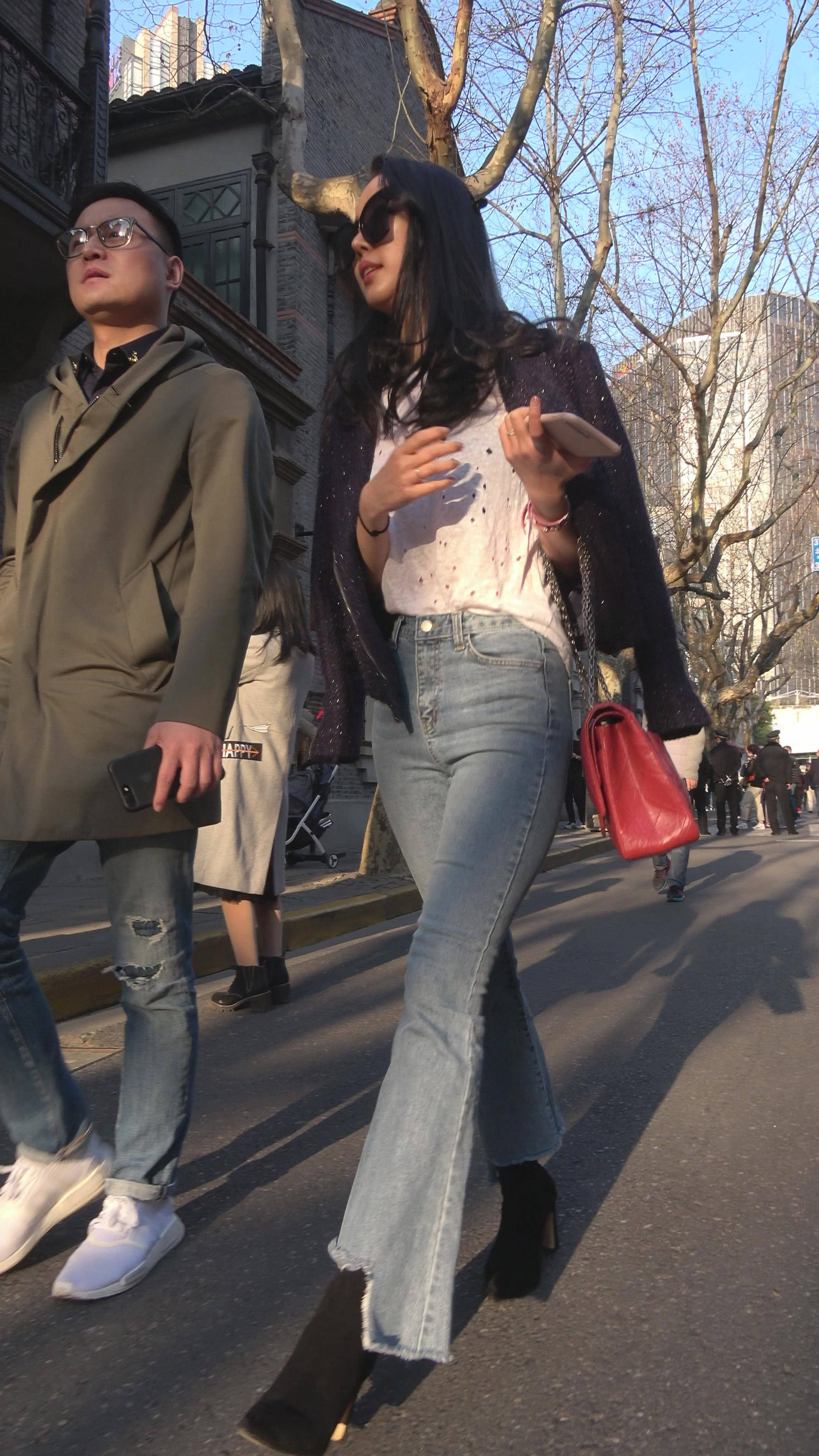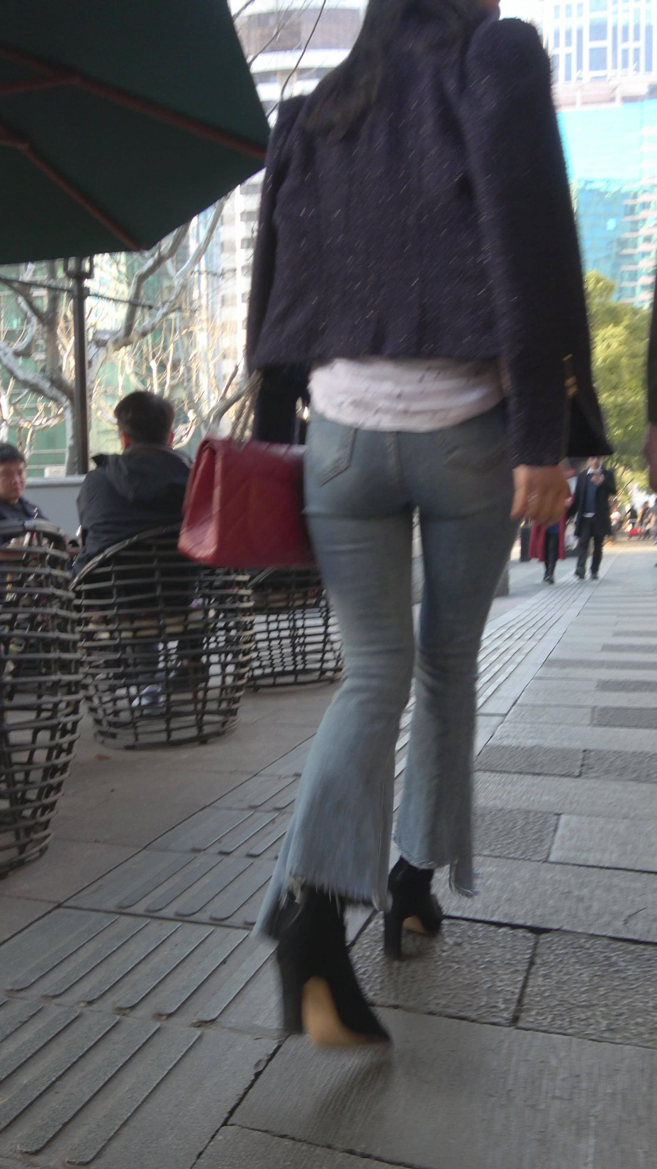 4K 性感身材街拍牛仔喇叭裤美女 2 编号7344