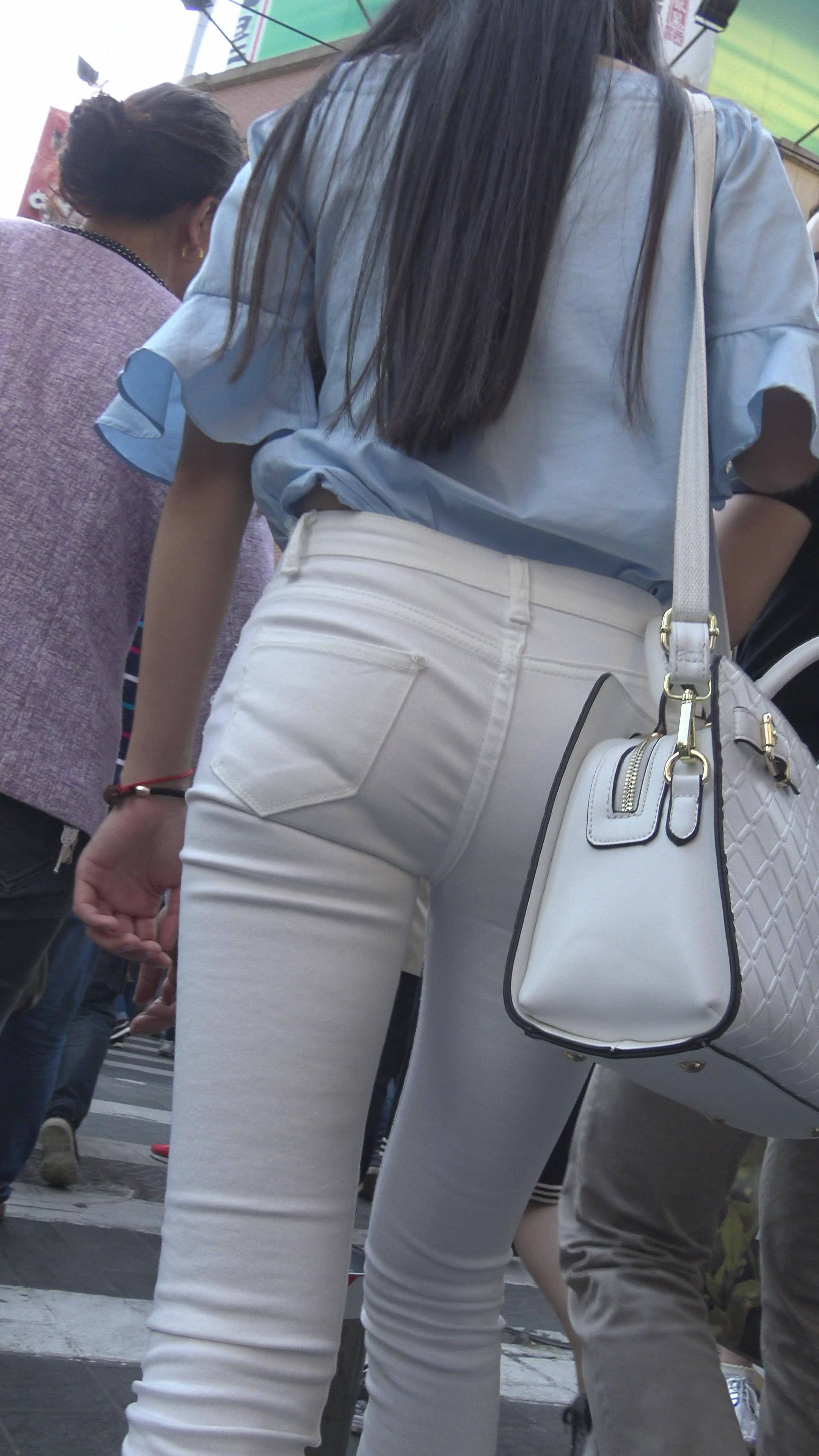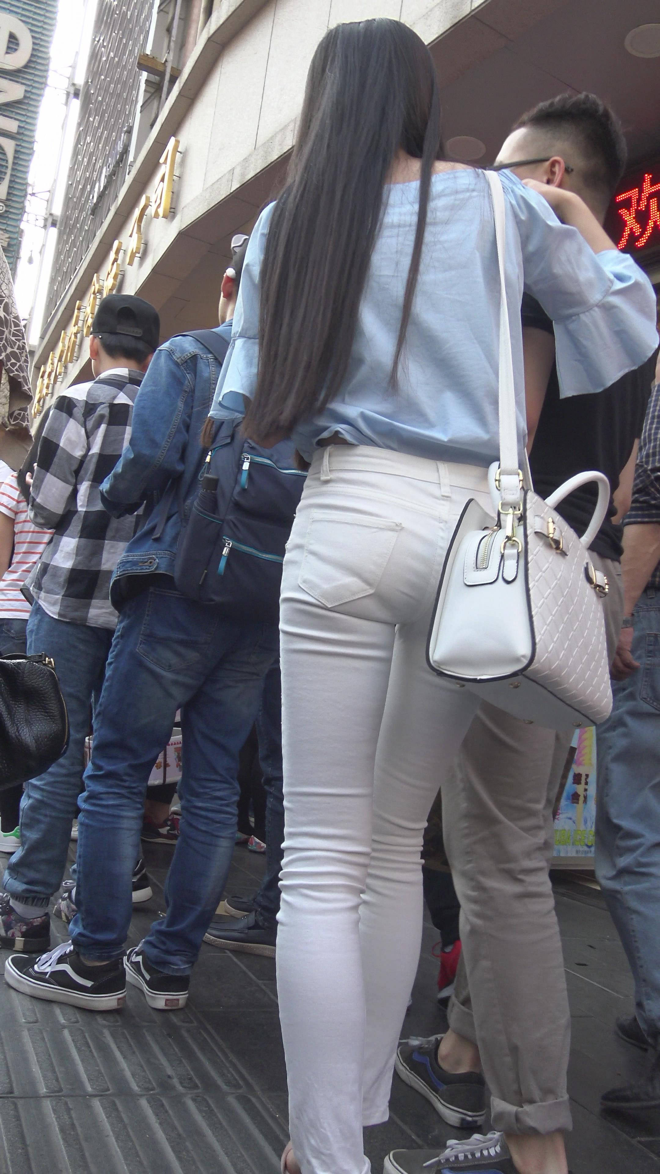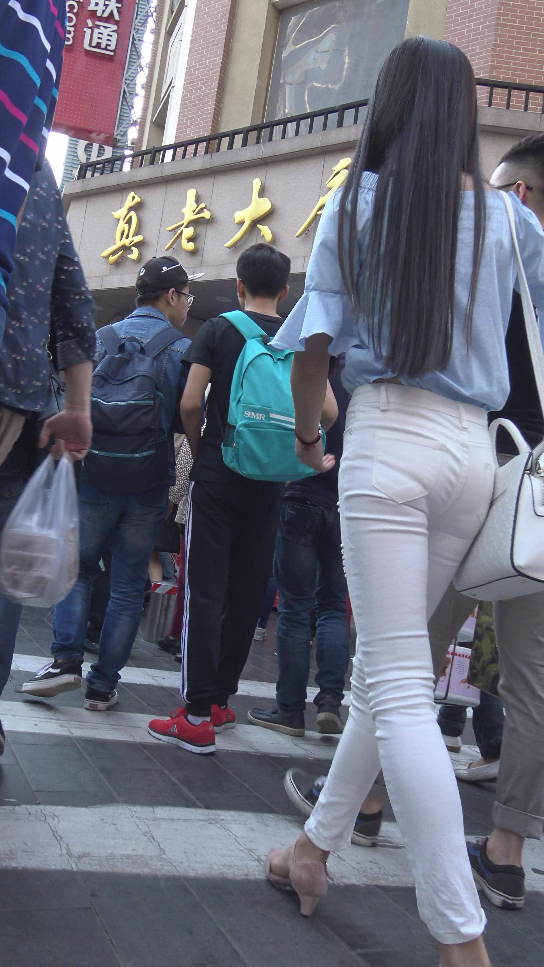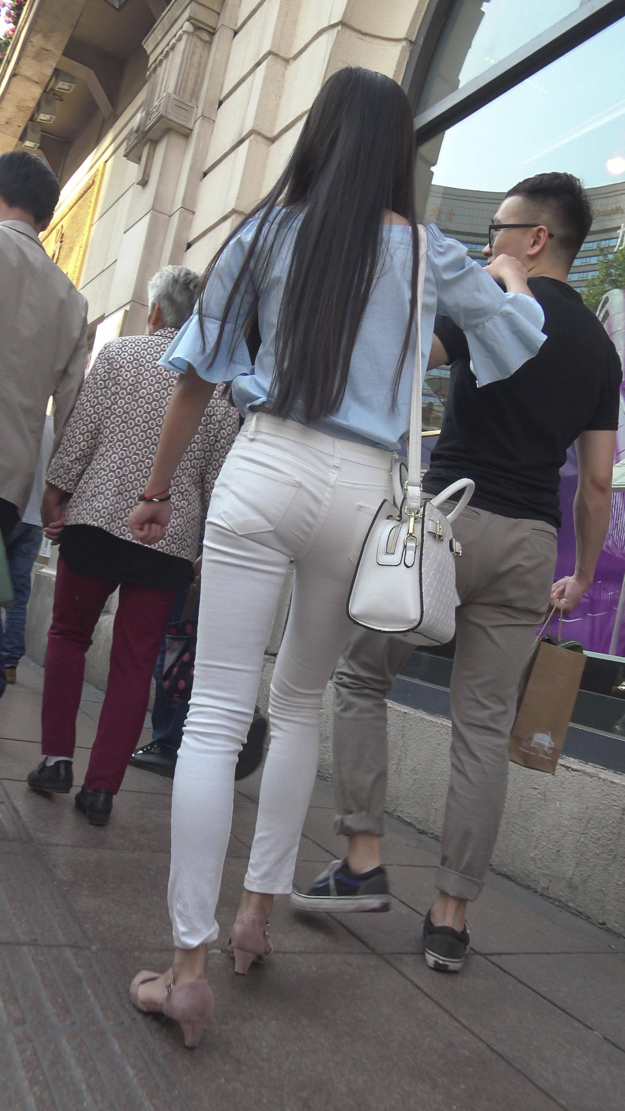 4k-街拍紧身白牛粉高跟苗条美女 编号7353