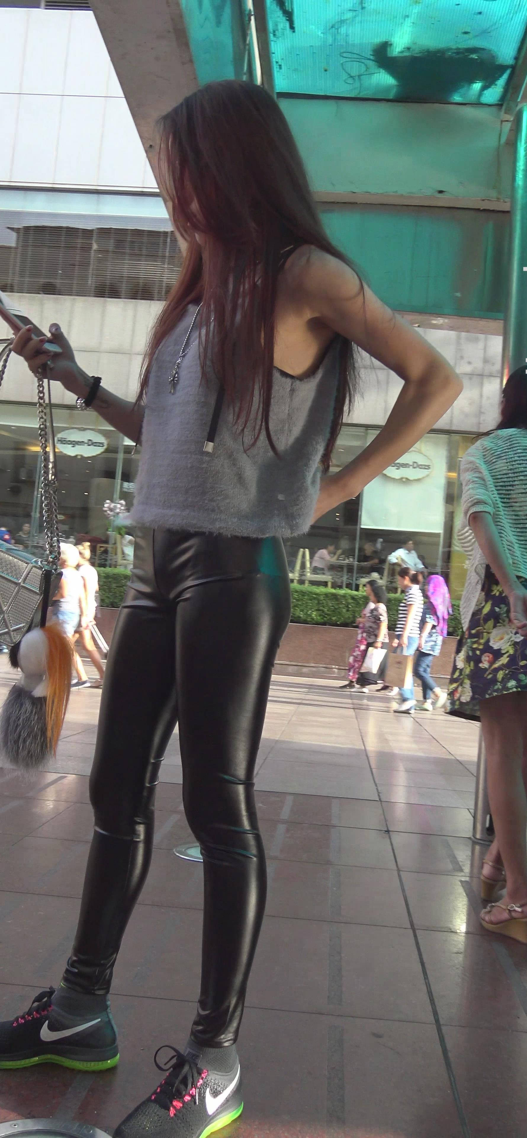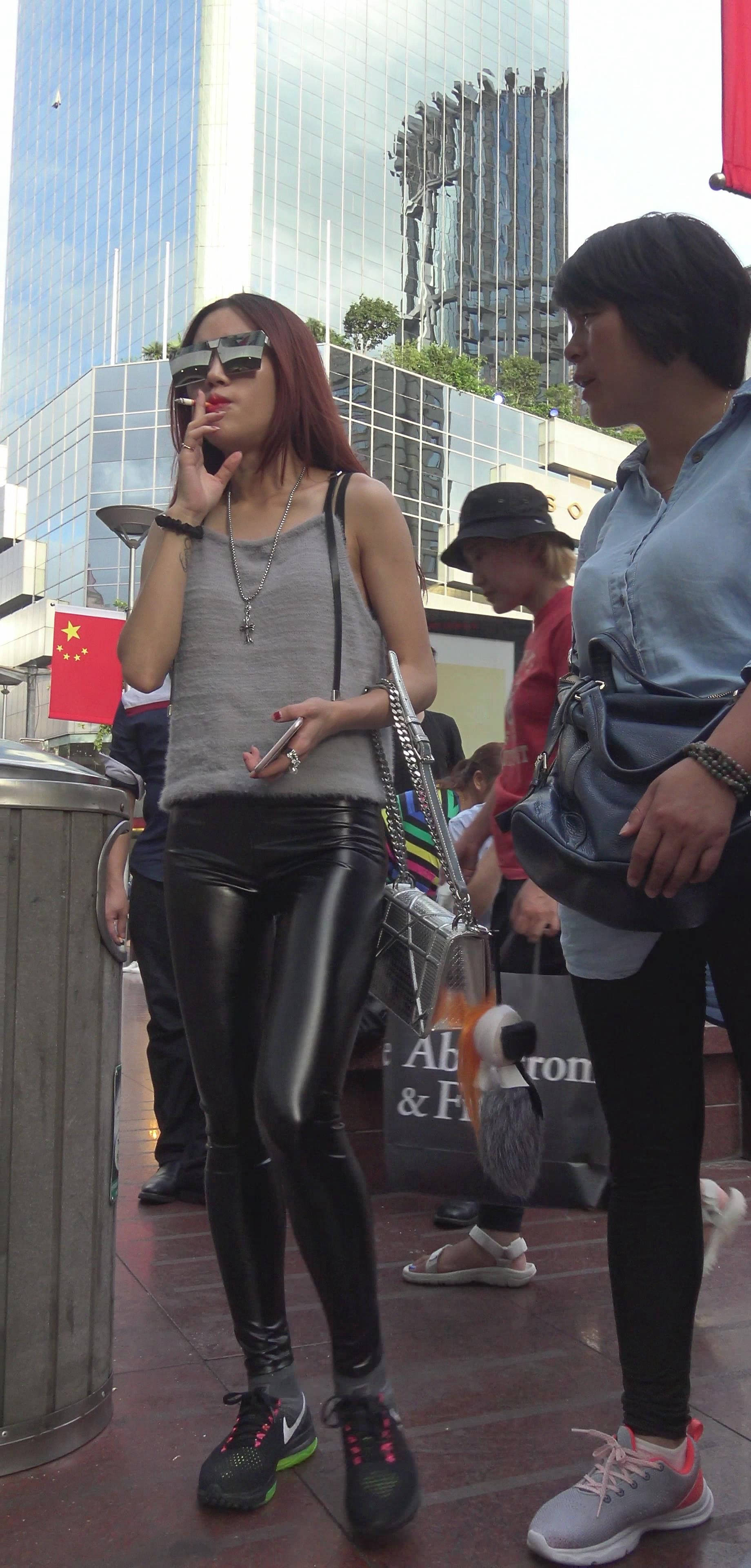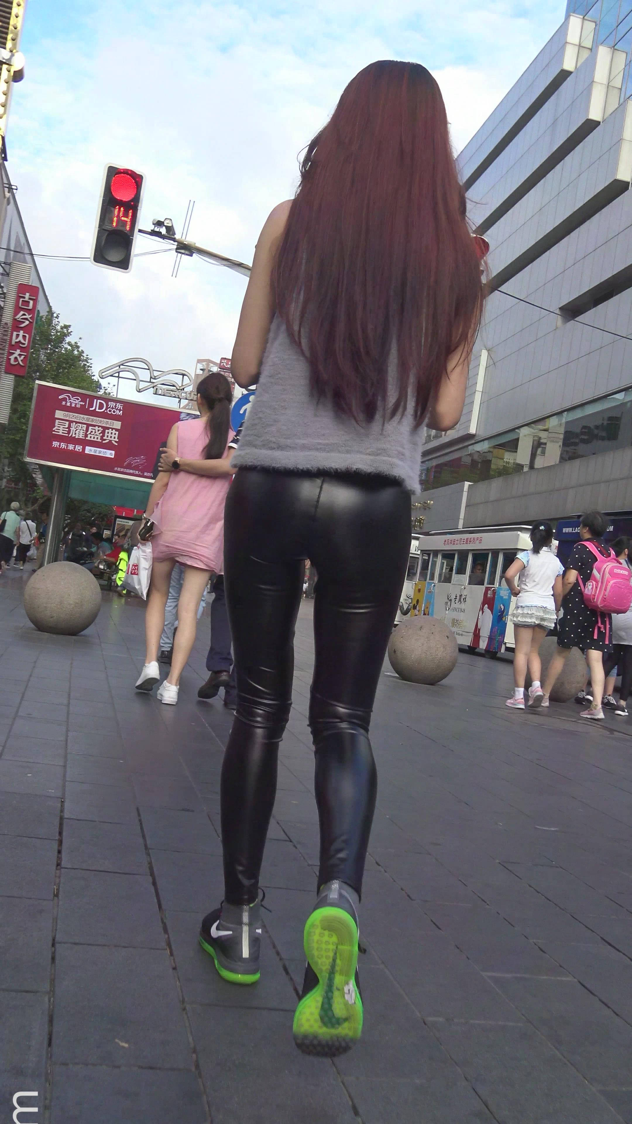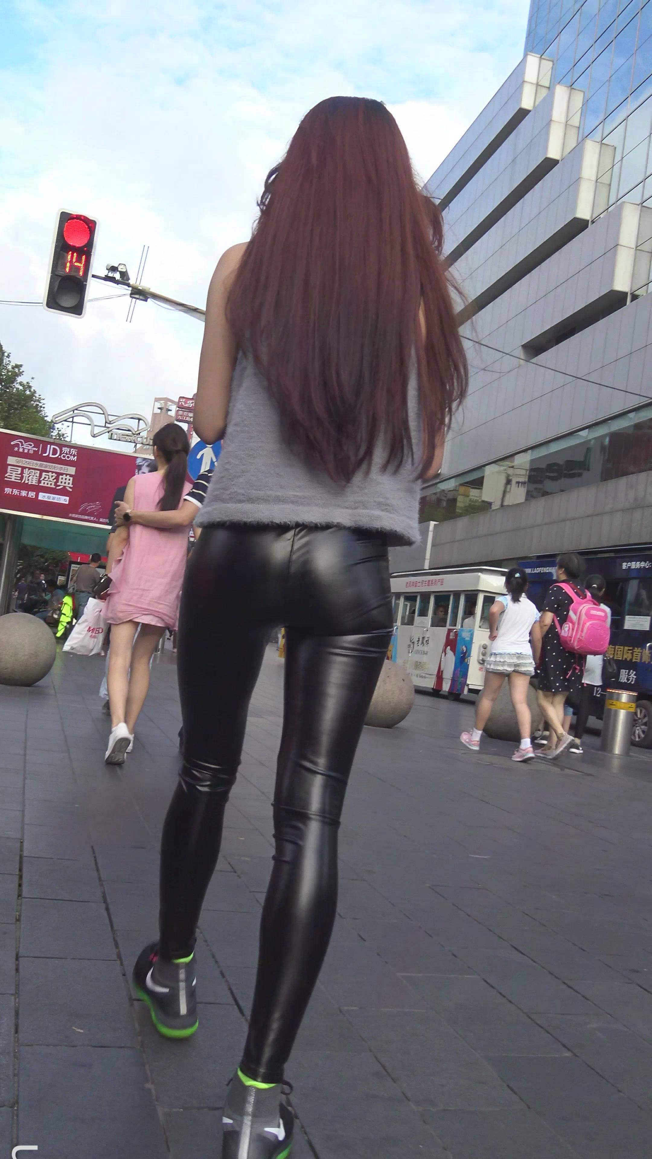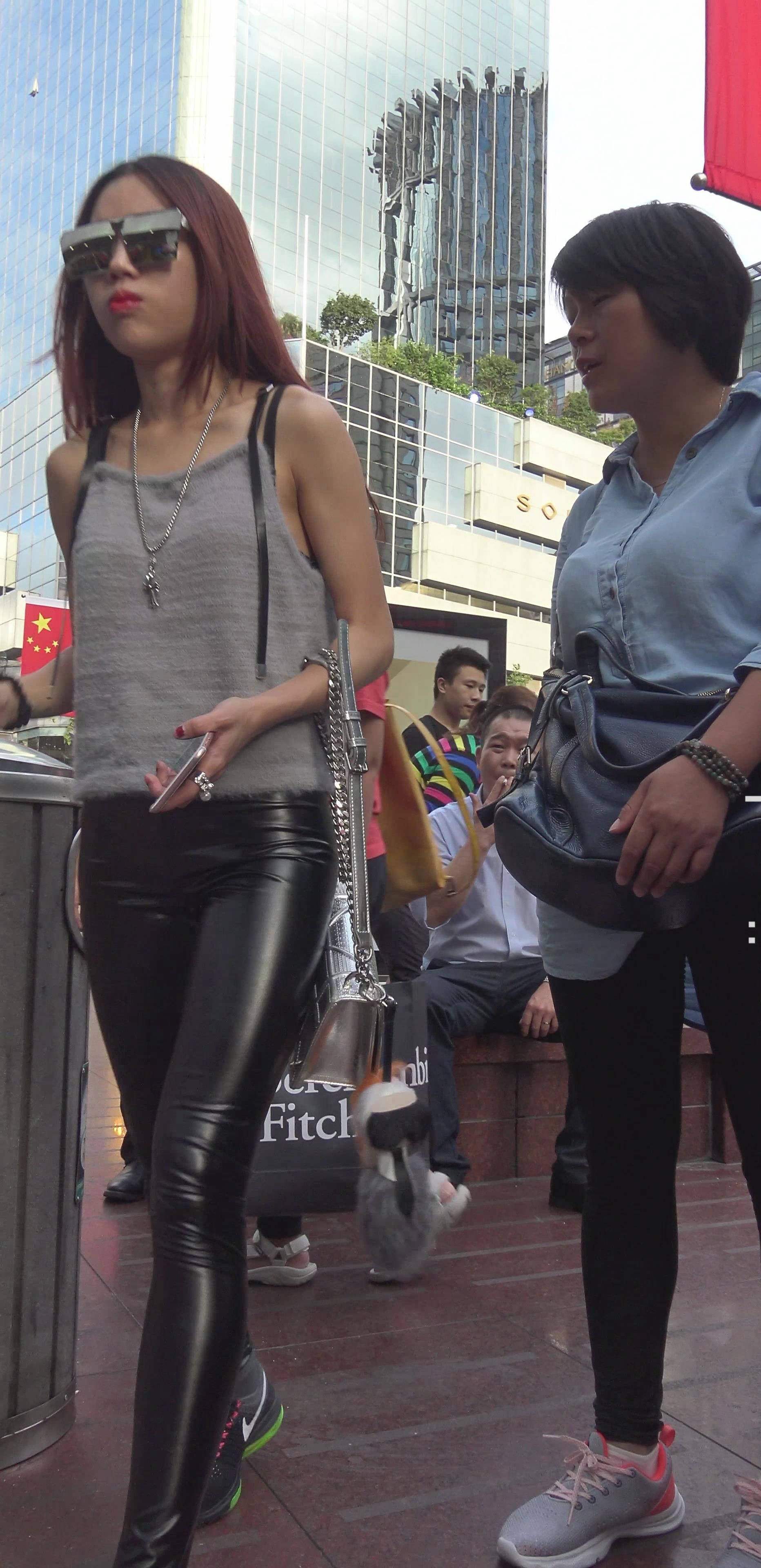 4k-街拍黑色皮裤美女等人无聊抽支烟 编号7419